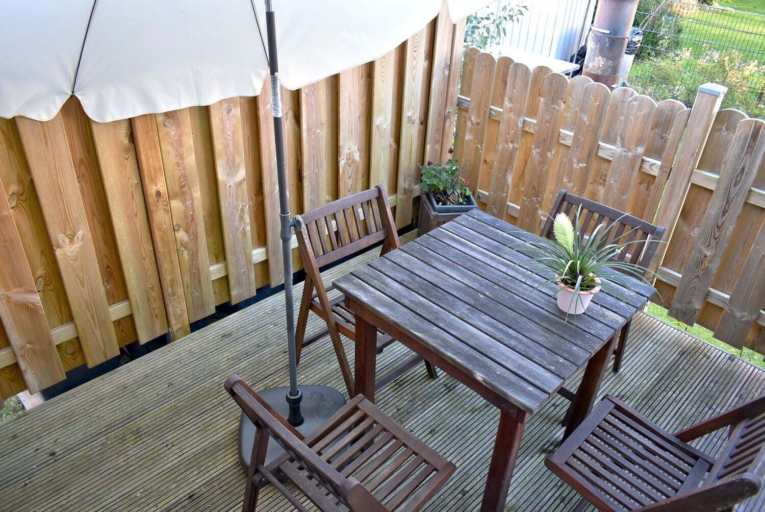 Terrasse: 4 Stühle, Sonnenschirm, Südlage, Tisch