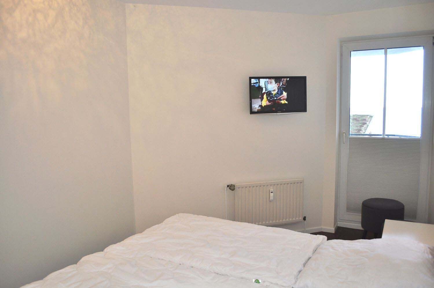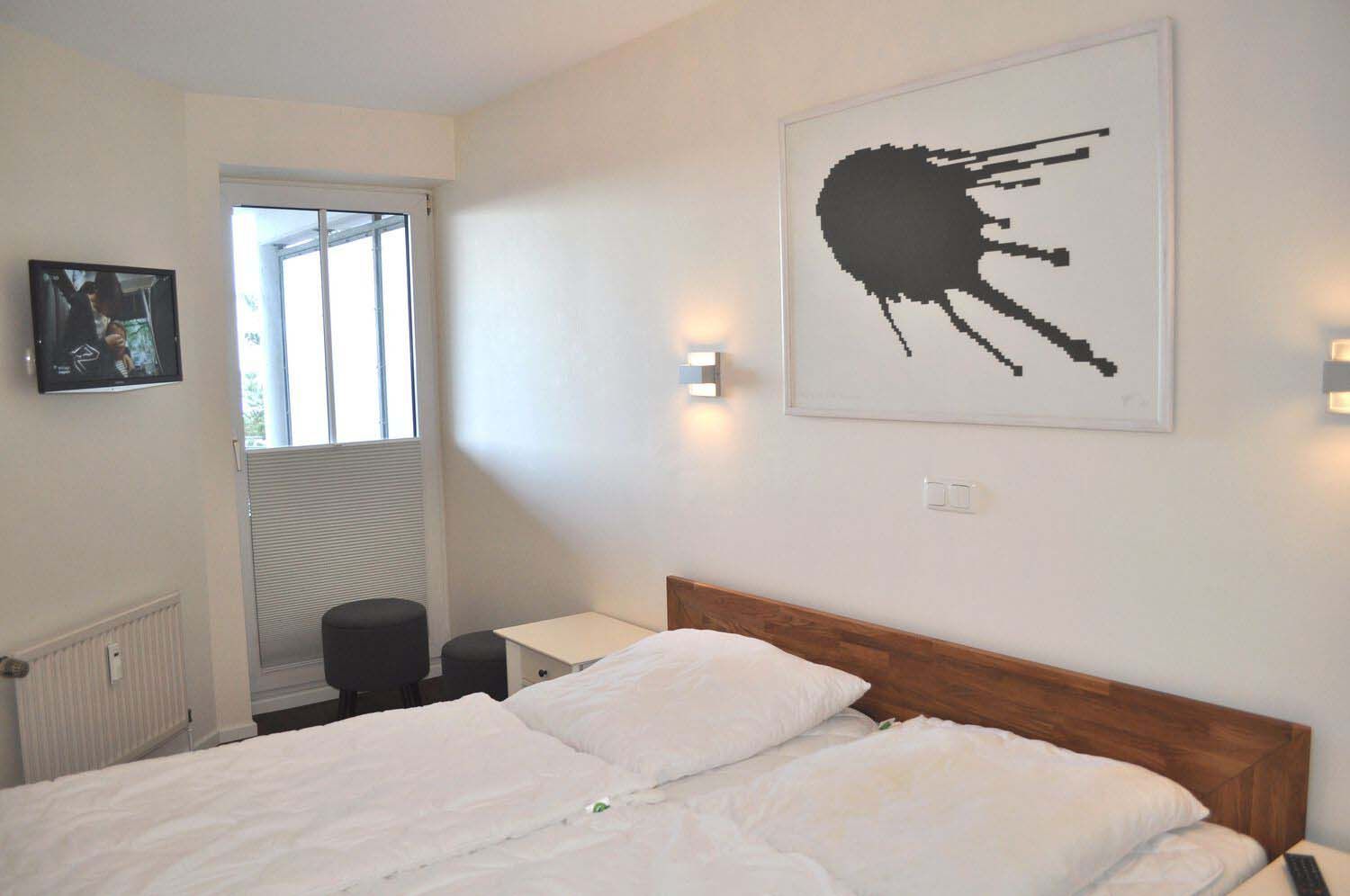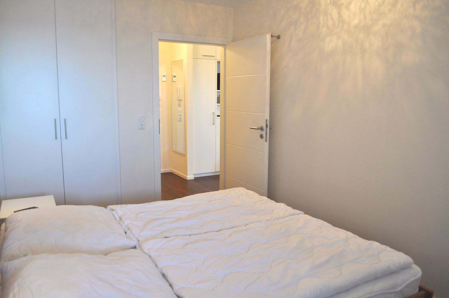 Schlafzimmer 1: 2 Matratzen, 2 Nachttische, aus dem Bett haben Sie direkten Meerblick, Doppelbett 2,00 x 1,80 m, Einbaukleiderschrank, Flachbildschirm, Kabel-TV