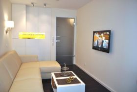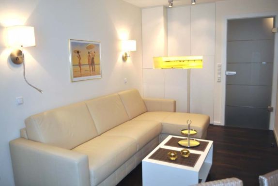 Hinweis von myOSTSEE: direkter Meerblick vom Balkon, Wohnzimmercouch, Esstisch und wenn Sie im Schlafzimmer im Bett liegen. Bodenbelage im Wohn- und Schlafzimmer ist Holzparkett und im Flur- und Badezimmer Bodenfliesen