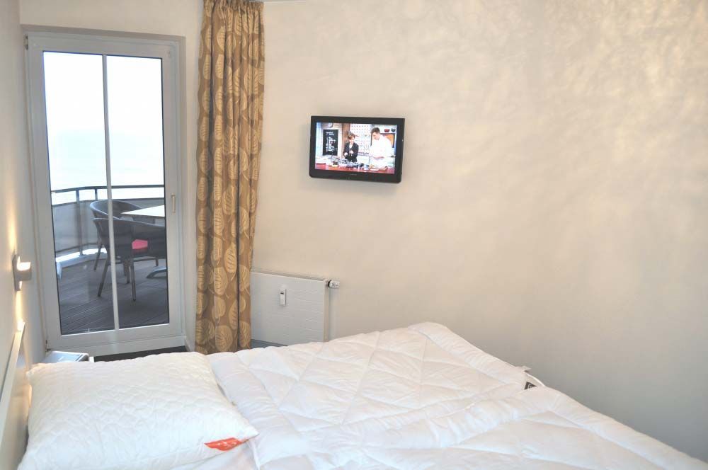 Schlafzimmer 1: 2 Matratzen, 2 Nachttische, 2 Wandleuchten, aus dem Bett haben Sie direkten Meerblick, Doppelbett 2,00 x 1,80 m Lattenrost Kopf- und Fussteil verstellbar, Einbaukleiderschrank, Flachbildschirm, Kabel-TV, Radiowecker