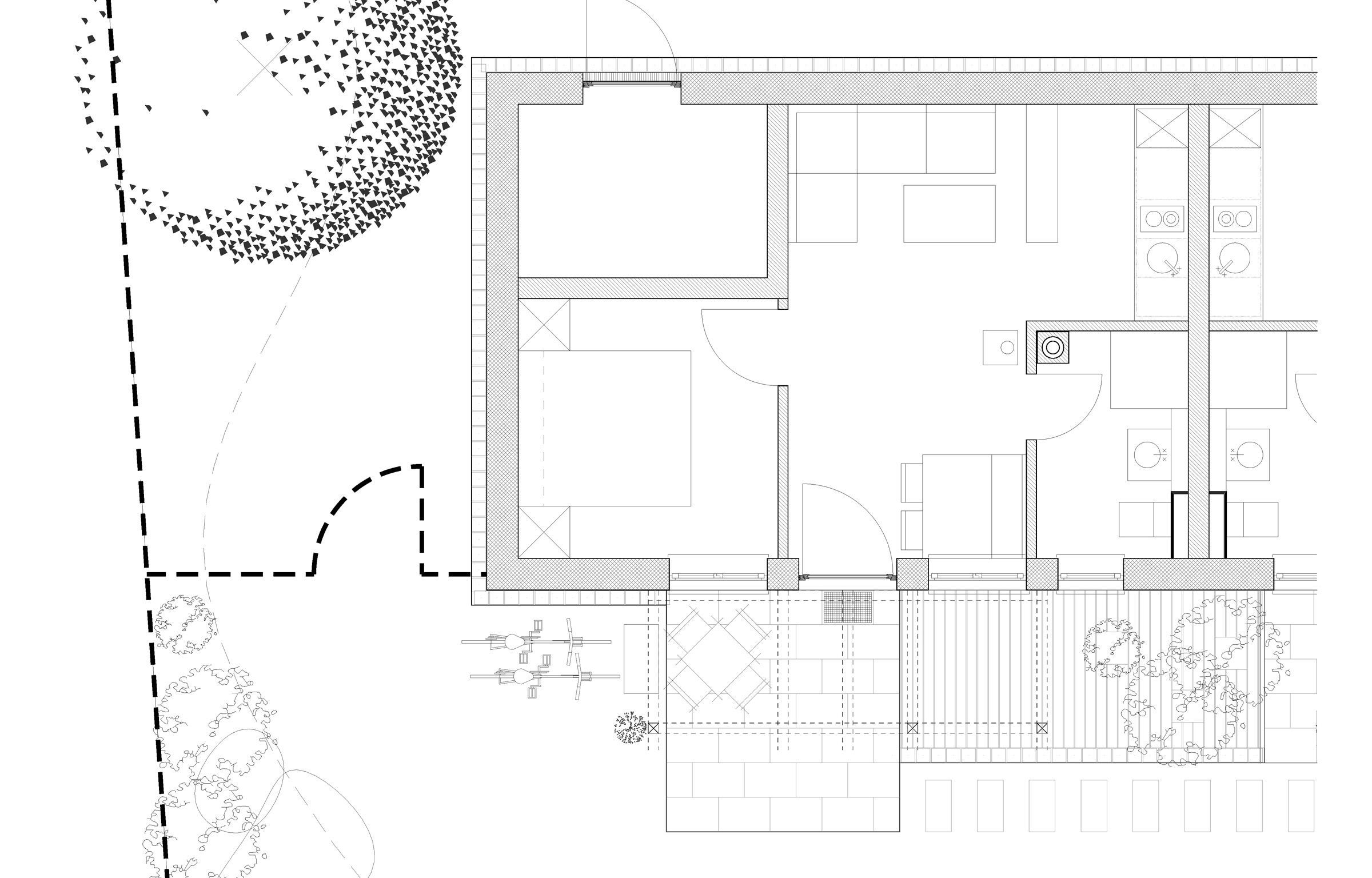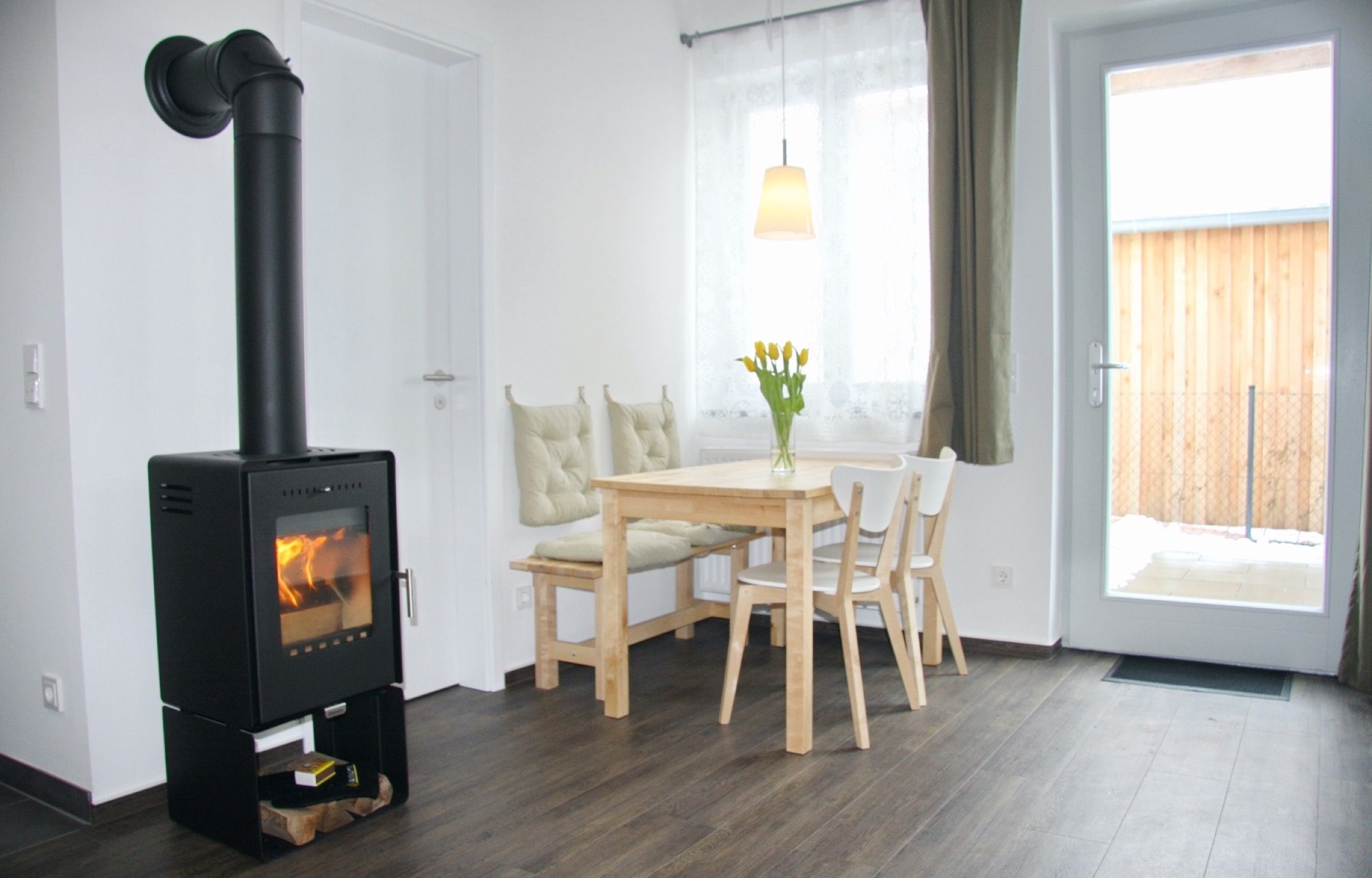 Ferienwohnung 2 kann mit 35 m² 2 Personen unterbringen. Sie ist ausgestattet mit Wohnzimmer, einem Schlafzimmer, Küche und Bad. Über den Wohn- und Essbereich wird die Ferienwohnung betreten. Das Wohnzimmer verfügt über Couch, Tisch, Regal und Kamin. An den Wohnbereich grenzt der Küchenbereich. Das Schlafzimmer ist ausgestattet mit einem Doppelbett. Entspannung finden sie auf der vorgelagerten Terrasse.