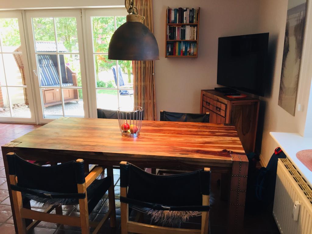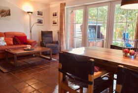 Das Haus ACHTERN DIEK mit 6 Wohneinheiten liegt direkt hinter dem Ordinger Seedeich in unmittelbarer Strandnähe. Großzügiges Grundstück mit Rasenflächen, PKW-Stellplätzen und Fahrradgarage. Gemeinschaftswaschmaschine und -trockner. Kabel-TV, Flat-TV, DVD-Player. Gut ausgest. Einbauküche m. Ceranfeld, Geschirrspüler + Mikrowelle. Komfortabler Wohnraum mit möbl. Terrasse. 1 Schlafraum mit Doppelbett. 1 Schlafraum mit 2 Einzelbetten. Bad neu in 2017: Dusche ebenerdig, Fußbodenheizung, WC, Fön, Kosmetikspiegel, Gäste-WC. Internetanschluss vorhanden. Insektenschutz vor allen Fenstern.