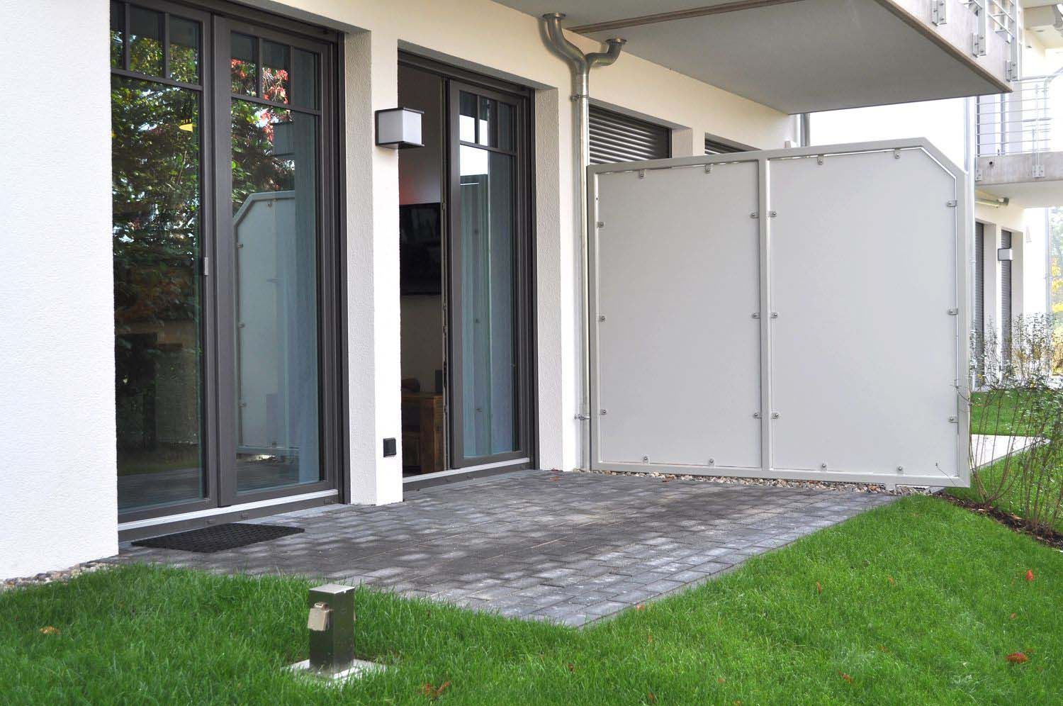 Terrasse: 4 Stühle, halb überdacht, Nord- Westlage, Tisch
