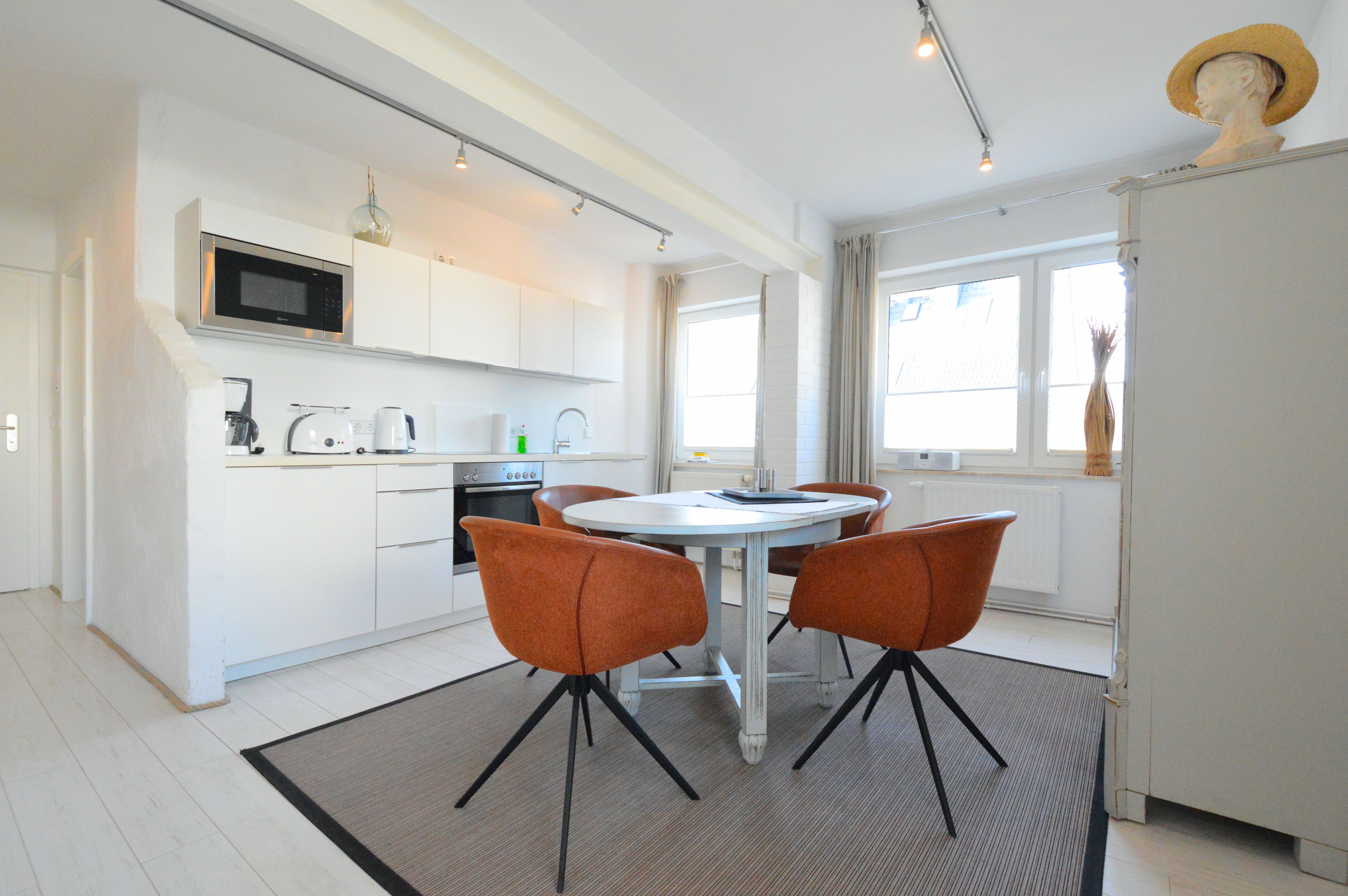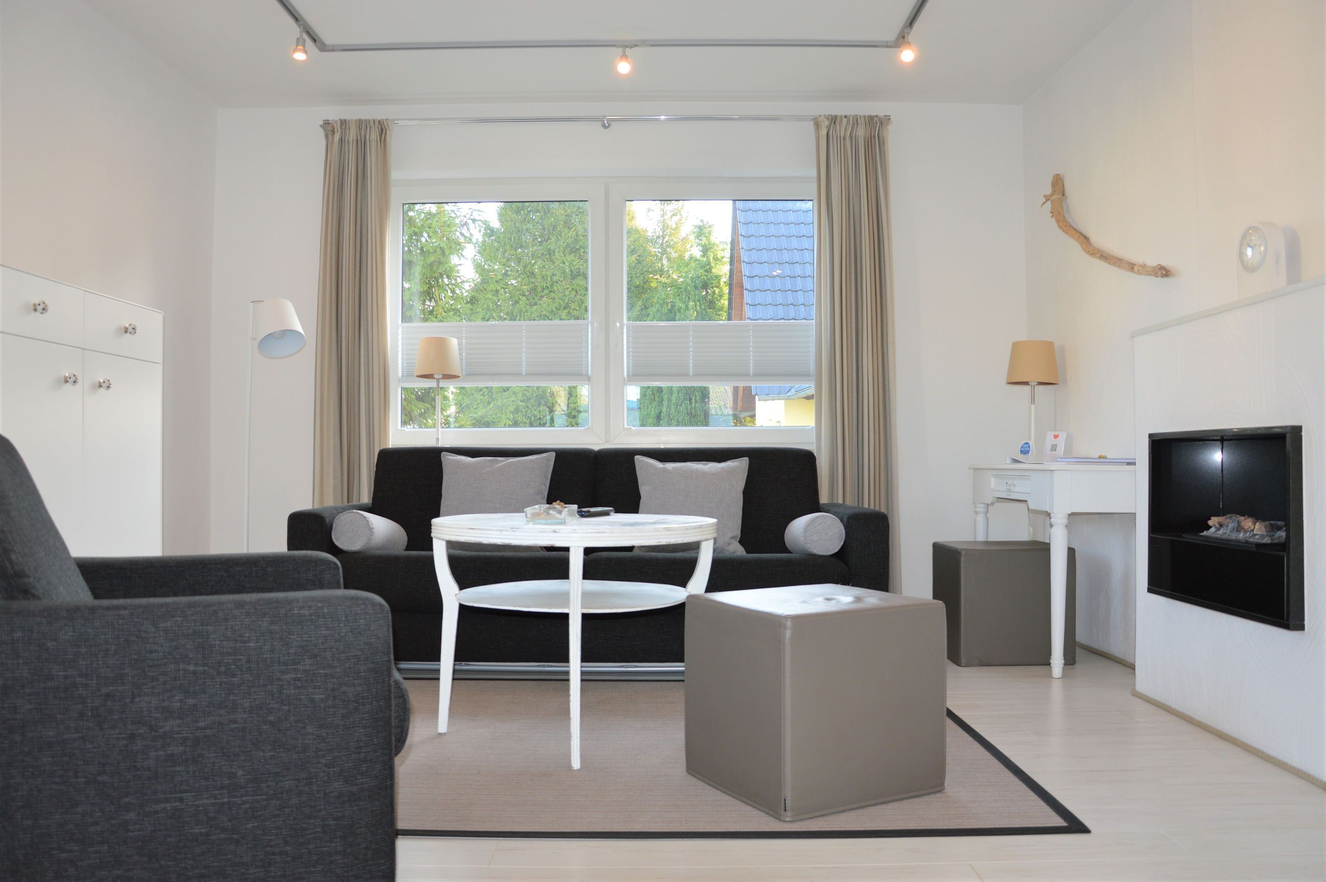 Diese Ferienwohnung (Hochparterre) mit 60m² befindet sich in der Villa Herbstwind nahe des Schmachter Sees in Binz. Unsere Nummer 1 ist ein helles, freundliches Appartement, lässig elegant eingerichtet, dezente Dekorationen machen neugierig auf den nächsten Strandbesuch oder einen Spaziergang am See. Wer es modern liebt, aber auch eine kleine Vorliebe für antike Stücke in sich trägt, wird hier gerne seinen Urlaub verbringen. Der Wohnbereich ist getrennt von der großen Wohnküche mit Küchenzeile. Wohnzimmer, Wohnküche und Schlafzimmer sind sehr elegant und gemütlich möbliert. Auf dem Schlafsofa im Wohnzimmer ist eine Aufbettung für eine Person möglich. Der Elektro-Kamin (Dekokamin, wärmt nicht) sorgt für eine gemütliche Atmosphäre. Freuen Sie sich auch auf einen Fernseher und eine Musikanlage im Apartment! Ihr Schlafzimmer ist mit einem Doppelbett ausgestattet, das eine großzügige Liegefläche von 180×200 cm bietet. Ein zweiter TV steht bereit. Abends werden Sie in der komfortablen Couchecke bei einem Glas Wein den Elektro-Kamin genießen, der mittels Wasserdampf ein täuschend echtes Flammenbild erzeugt. Die Küchenzeile ist komplett ausgestattet, 4-Platten-Cerankochfeld und Backofen, Geschirrspüler, Kühlschrank mit Gefrierfach, Mikrowelle, Kaffeefiltermaschine, Wasserkocher und Toaster. Das Bad ist mit Dusche, zwei Waschtischen, einem WC und Haartrockner ausgestattet, für die Dame gibt es einen extra Frisiertisch. Ein Balkon mit Morgensonne rundet das Ferienerlebnis ab.
