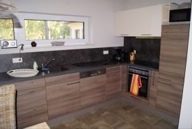 - Küchenbereich mit Küchenzeile (Backofen, Mikrowelle, 4 Zonen - Induktionskochfeld, Kühlschrank mit