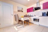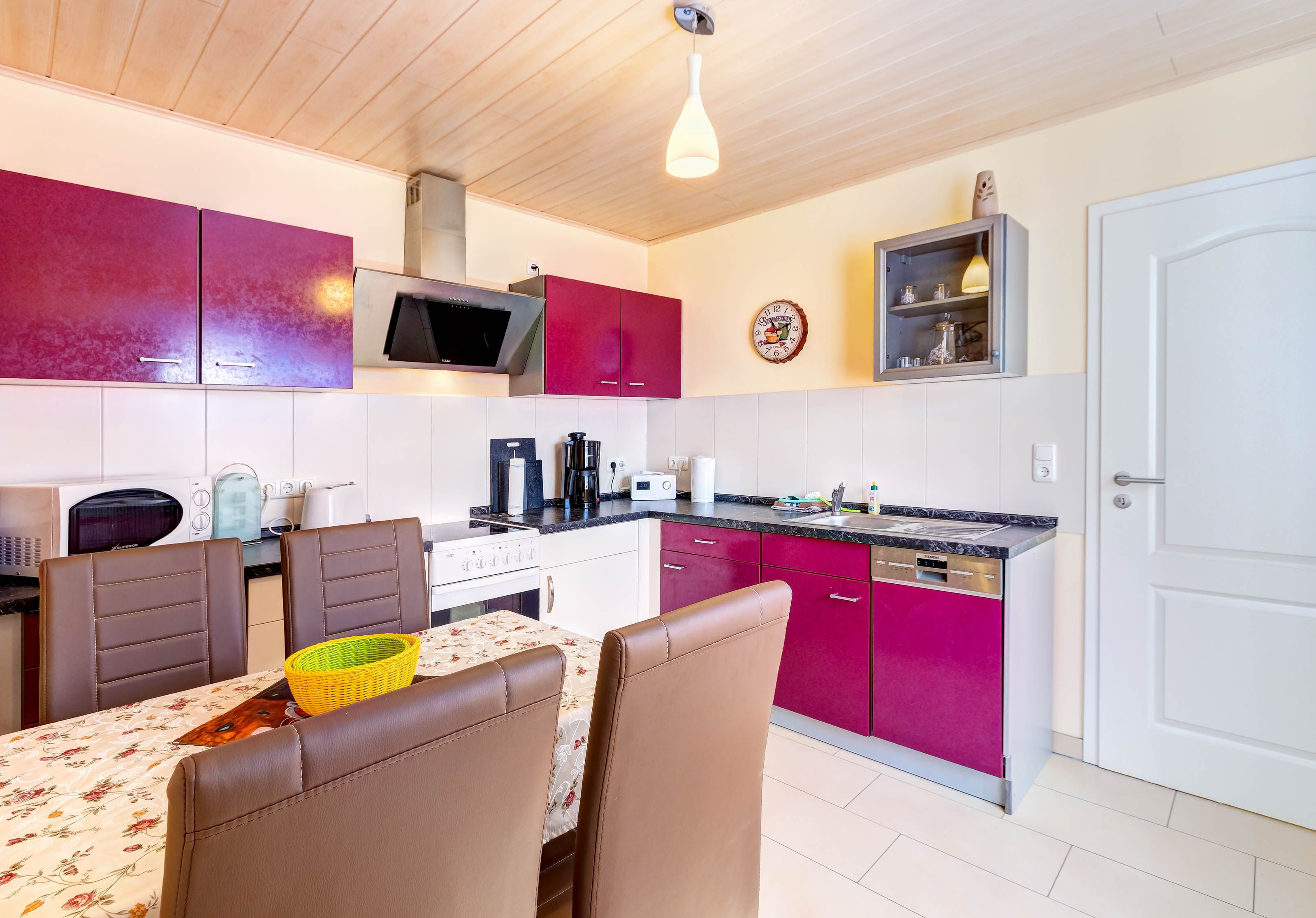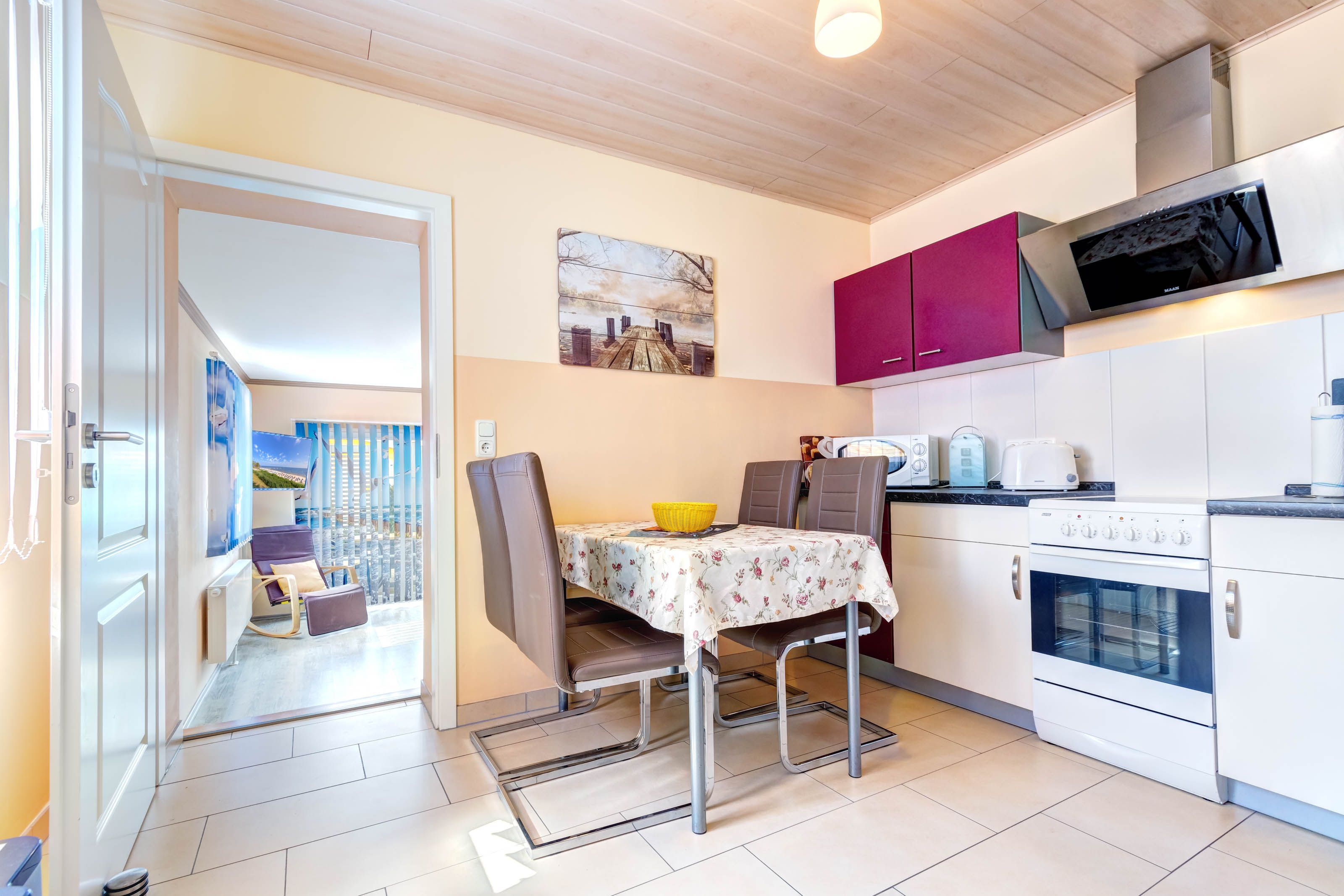 Ein Kinderbett und Hochstuhl stehen kostenfrei zur Verfügung. Die Wohnung ist mit einer Küchenzeile, einer hochwertigen Sitzgarnitur (die auch als Bett genutzt werden kann) sowie modernen Geräten wie Herd, Kühlschrank, Mikrowelle, Toaster, Wasserkocher und Kaffeemaschine ausgestattet.