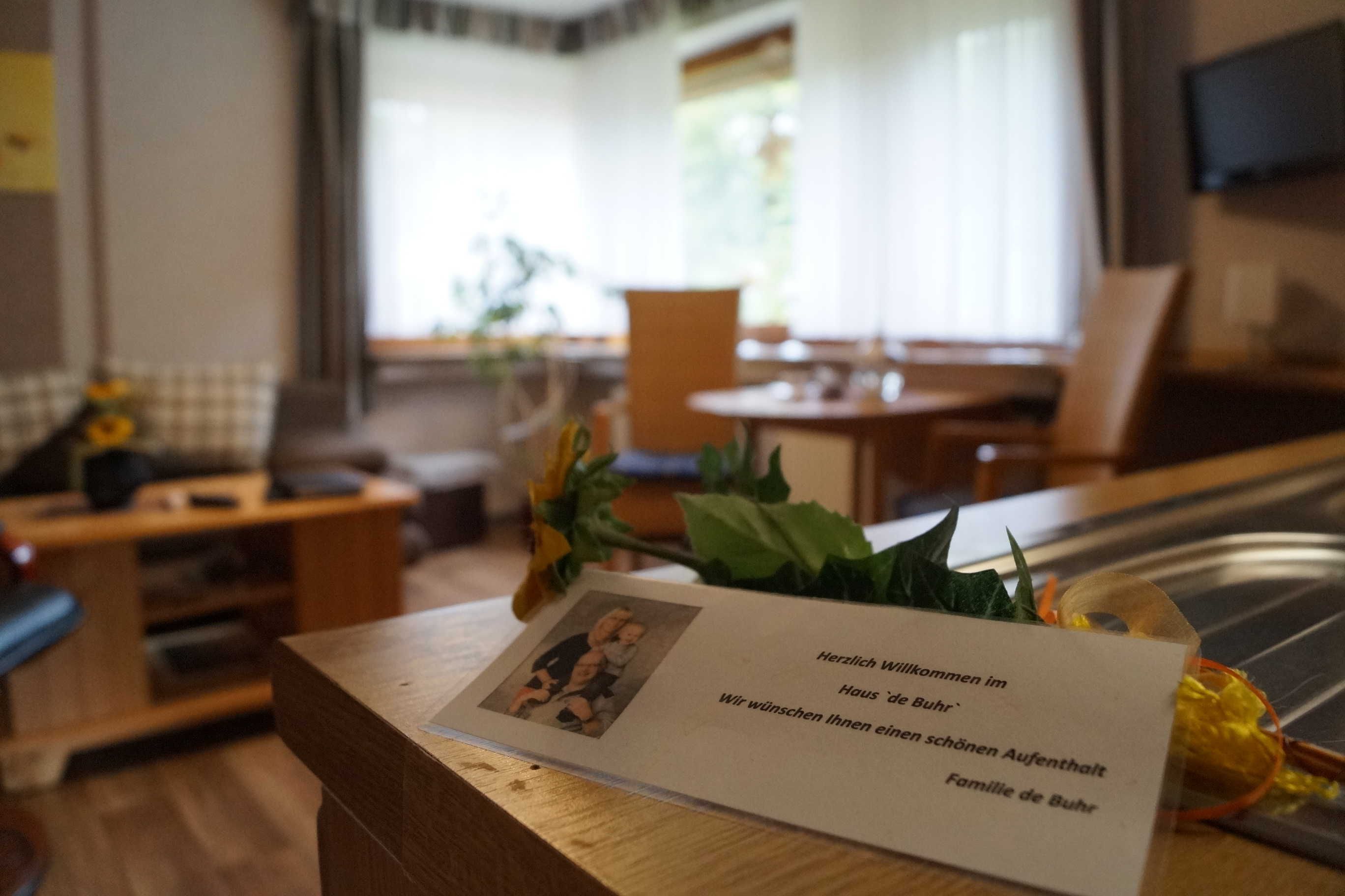 In ruhiger aber dennoch zentraler Lage befindet sich die für 2 Personen eingerichtete Ferienwohnung de Buhr. Cafés oder Bäckereien für ein Frühstück am Morgen, Einkaufsläden und Kleidungsgeschäfte befinden sich in zu Fuß begehbarer Strecke.