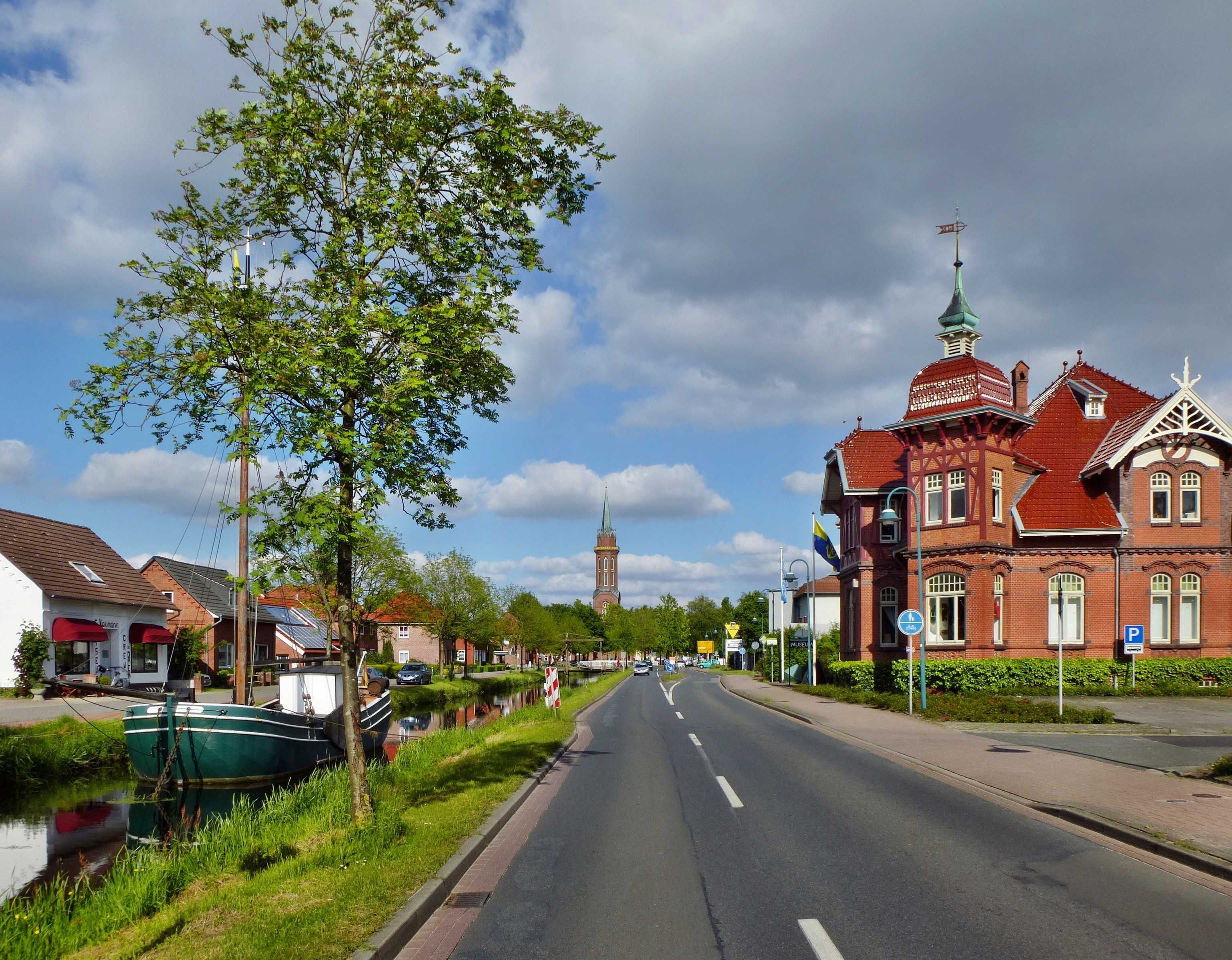 Das Fehn-und Schiffahrtsmuseum Westrhauderfehn befindet sich an der gegenüberliegenden Straßenseite.