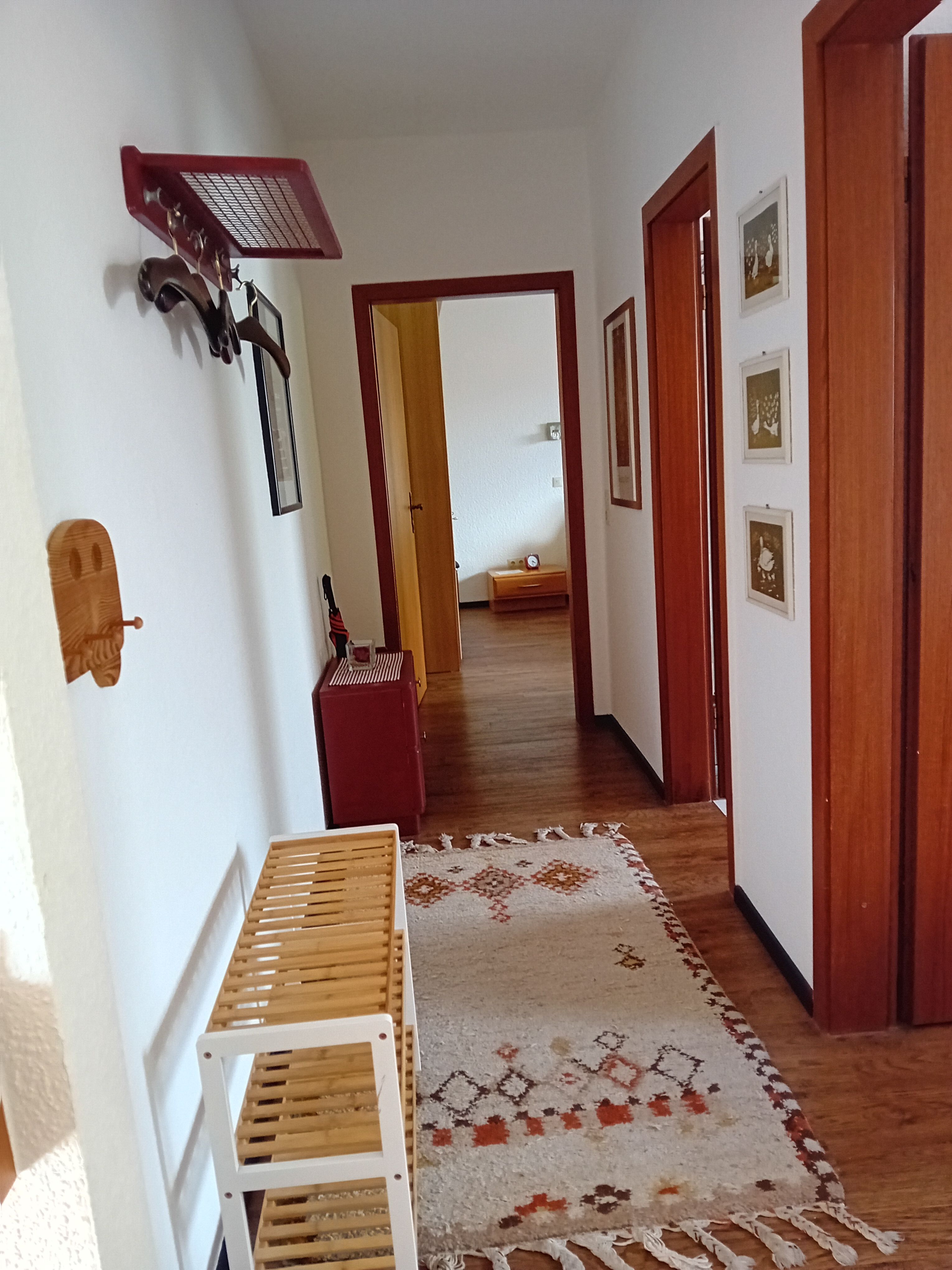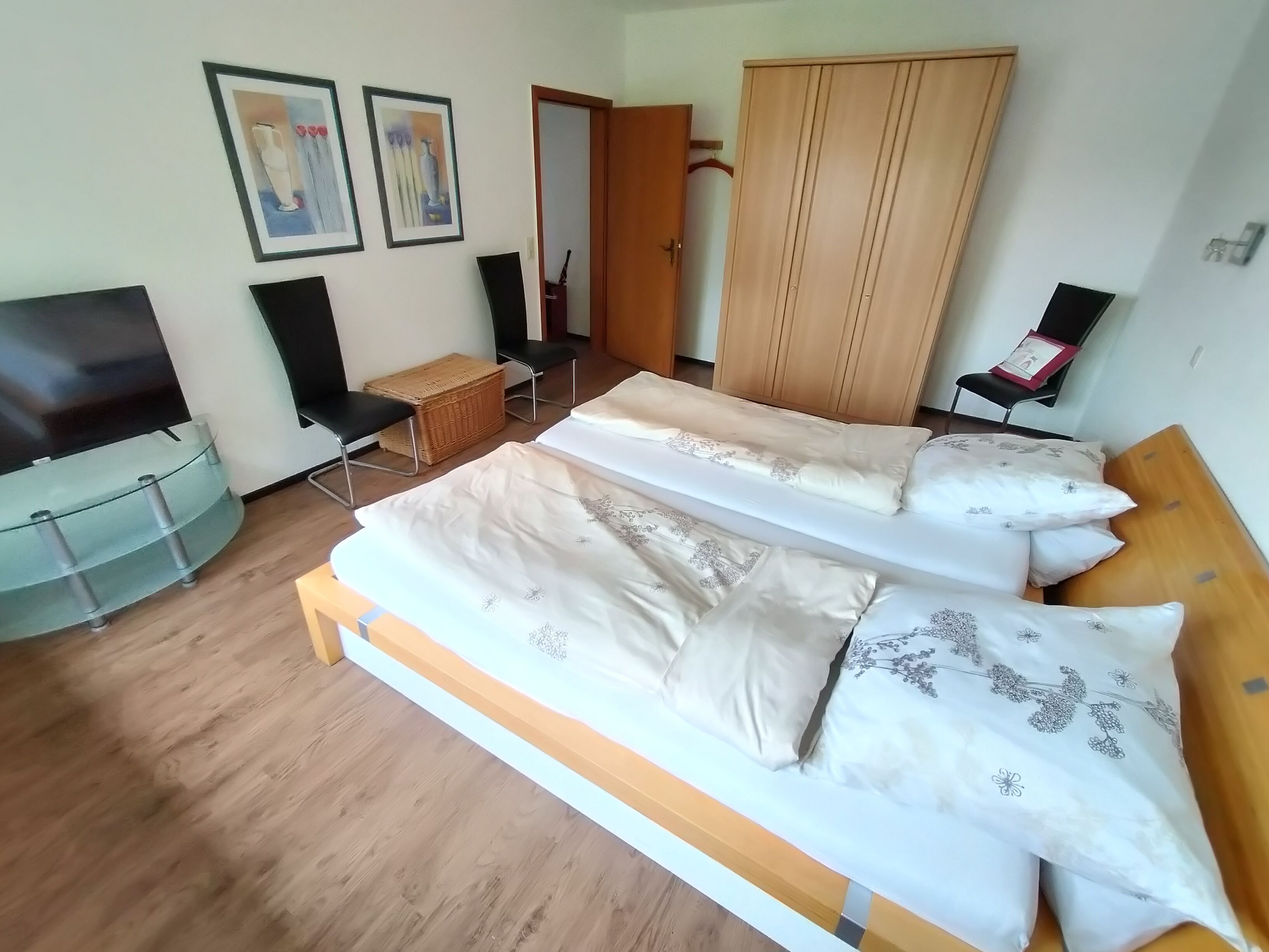 Von dem kleinen Flur aus geht es in die drei weiteren Räume, als erstes in das Schlafzimmer mit 2 Einzelbetten.