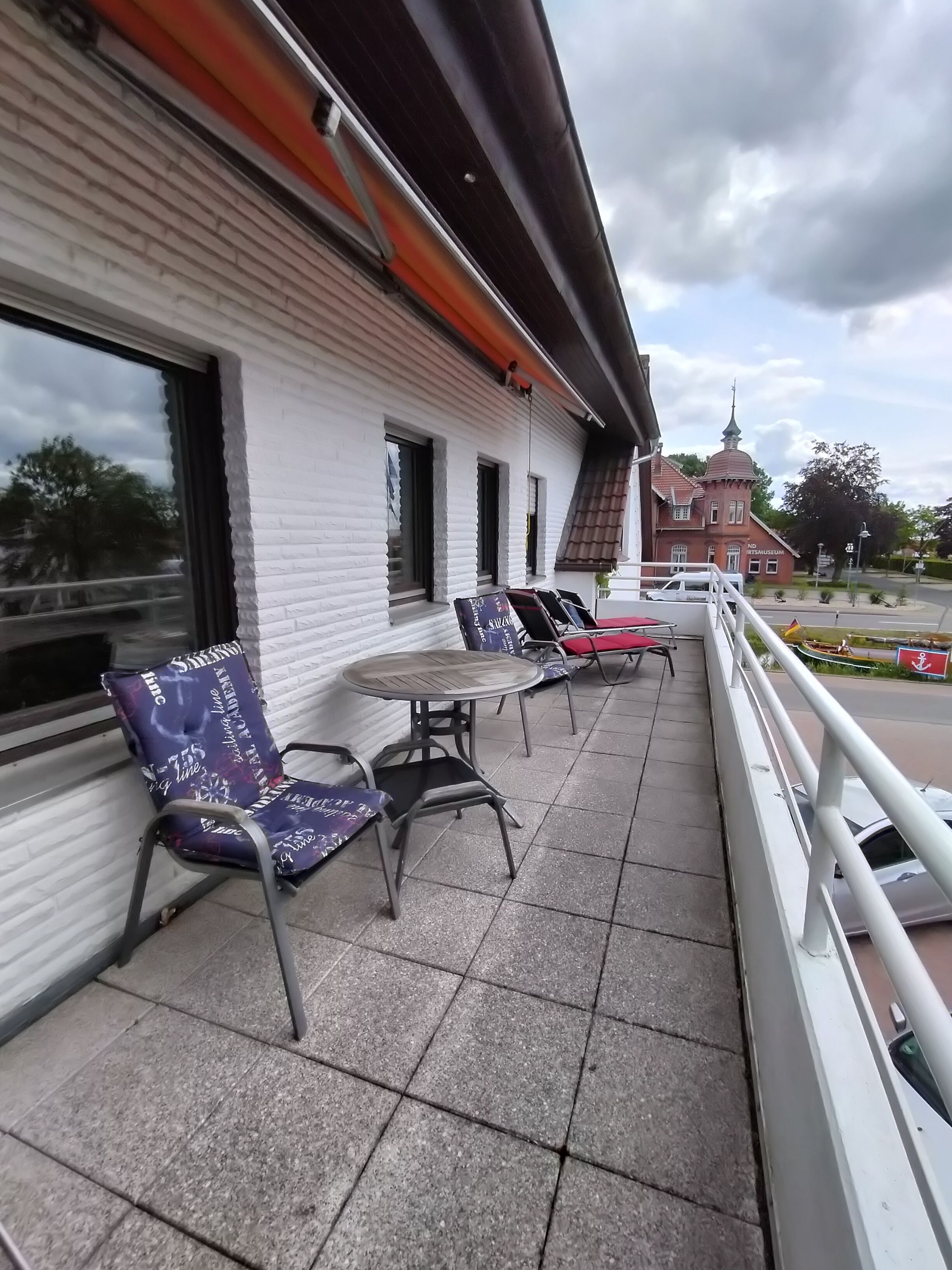 Der weiträumige Balkon (Westseite) ist bestückt mit einer Markise, hochwertigen Möbeln und Liegen.
