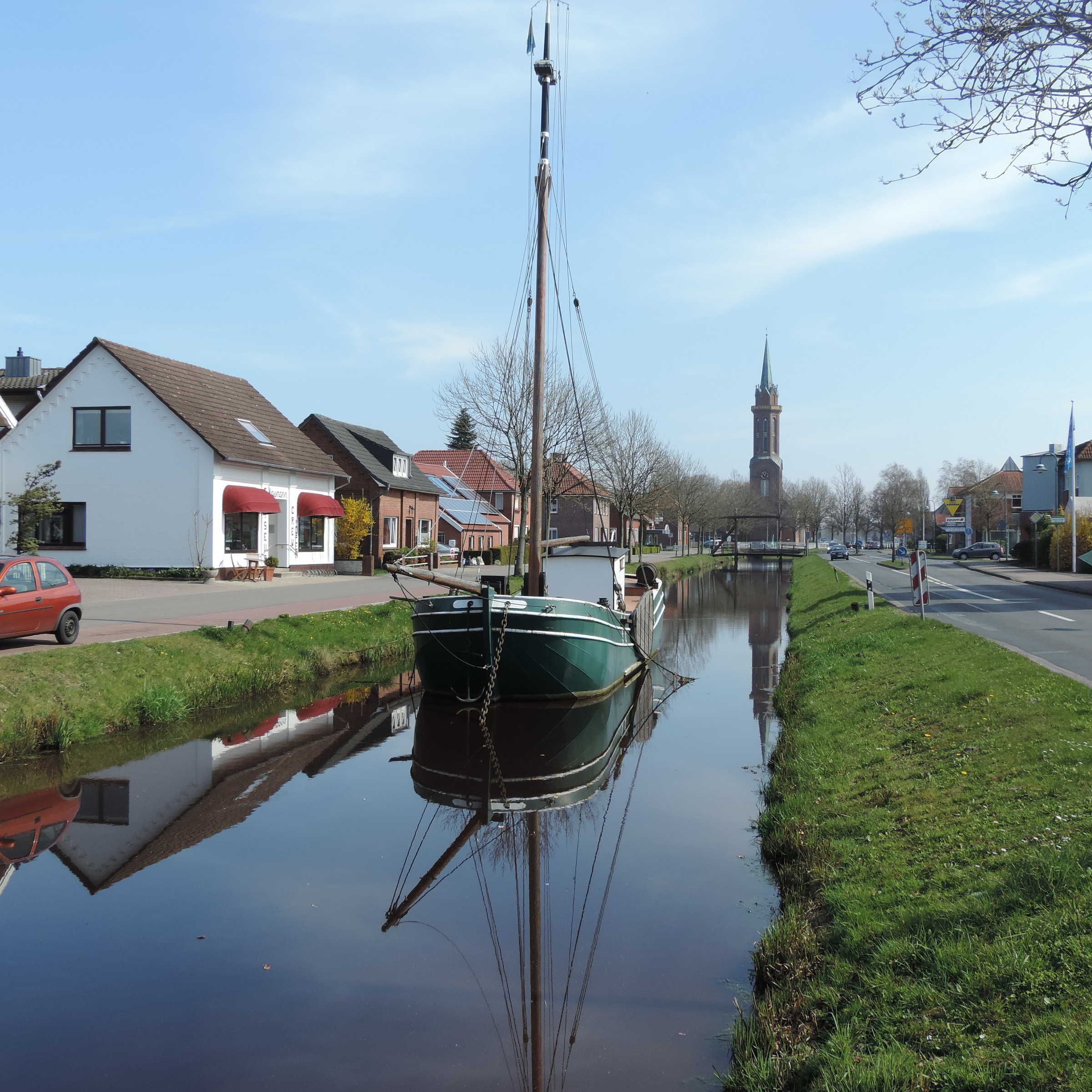 Sie verbringen Ihren Urlaub im Zentrum von Rhauderfehn, in Westrhauderfehn (Erholungsort). Von Ihrem Balkon aus schauen Sie auf das historische Segelschiff Twee Gebroeders, welches vor unserem Haus seinen Liegeplatz hat. Daneben überspannt die fehntypische Klappbrücke den Kanal.