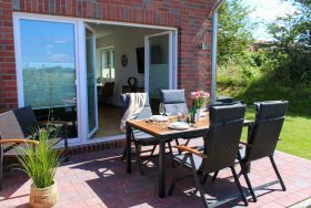 Das Ferienhaus überzeugt mit Wohlfühlambiente auf gehobenem Niveau und verfügt dabei über einen lichtdurchfluteten Wohnbereich mit einer vollausgestatteten, offenen Küche. Die hier angeschlossene Terrasse ist ideal, um den Ausblick bei einem Glas Wein am Abend zu genießen. Zudem steht Ihnen im Erdgeschoss ein Gäste-WC und ein Abstellraum mit Waschtrockner zur Verfügung. Die Unterkunft verfügt über zwei separate Schlafzimmer im Obergeschoss. Eines mit Doppelbett inklusive smart TV, dass andere mit zwei Einzelbetten und einen wunderschönen Ausblick auf den Deich. Ein modernes Badezimmer mit begehbarer Dusche steht ebenfalls für Sie bereit. WLAN ist inbegriffen.