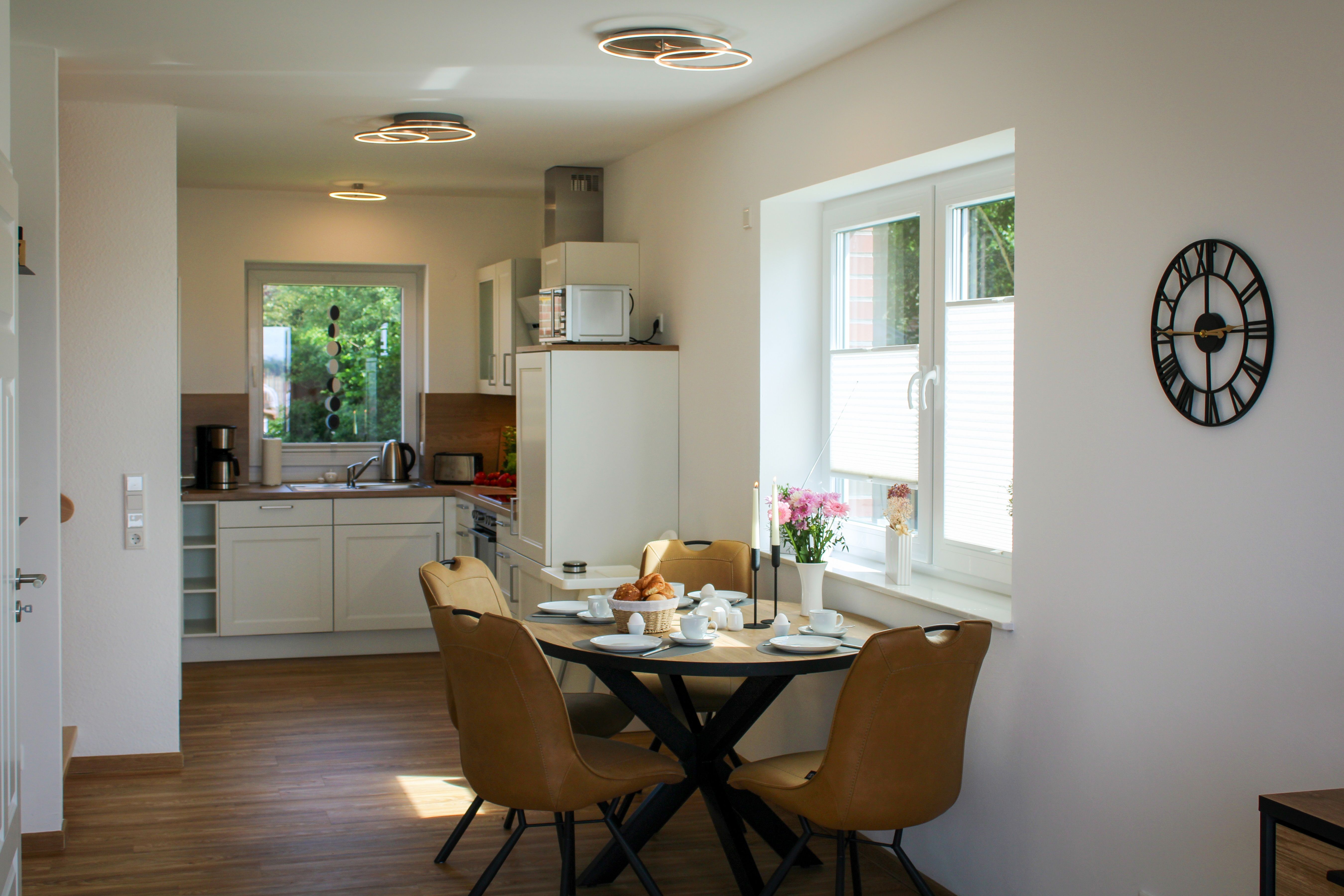Diese neuwertige Doppelhaushälfte mit einem nach Südwest ausgerichtetem Garten wurde im August 2023 fertiggestellt und überzeugt mit einem Panoramablick über die freien Felder. Die möblierte Terrasse lädt im Sommer zur Erholung ein. Genießen Sie die Ruhe und profitieren gleichzeitig von der ausgezeichneten Lage. In nur wenigen Gehminuten erreichen Sie den Sandstrand und den Fährhafen zur Insel Wangerooge bzw. zu den Seehundbänken. Auch zur „Cliner Quelle“ mit Schwimmbad, Wellnessbereich und Fitnessstudio oder zum Ortskern von Carolinensiel mit seinen zahlreichen Restaurants, Cafés sowie Einkaufsmöglichkeiten ist es nicht weit. Es steht Ihnen ein eigener Parkplatz sowie ein Abstellhäuschen mit Elektronanschluss, zum Aufladen Ihrer E-Bikes, zur Verfügung.