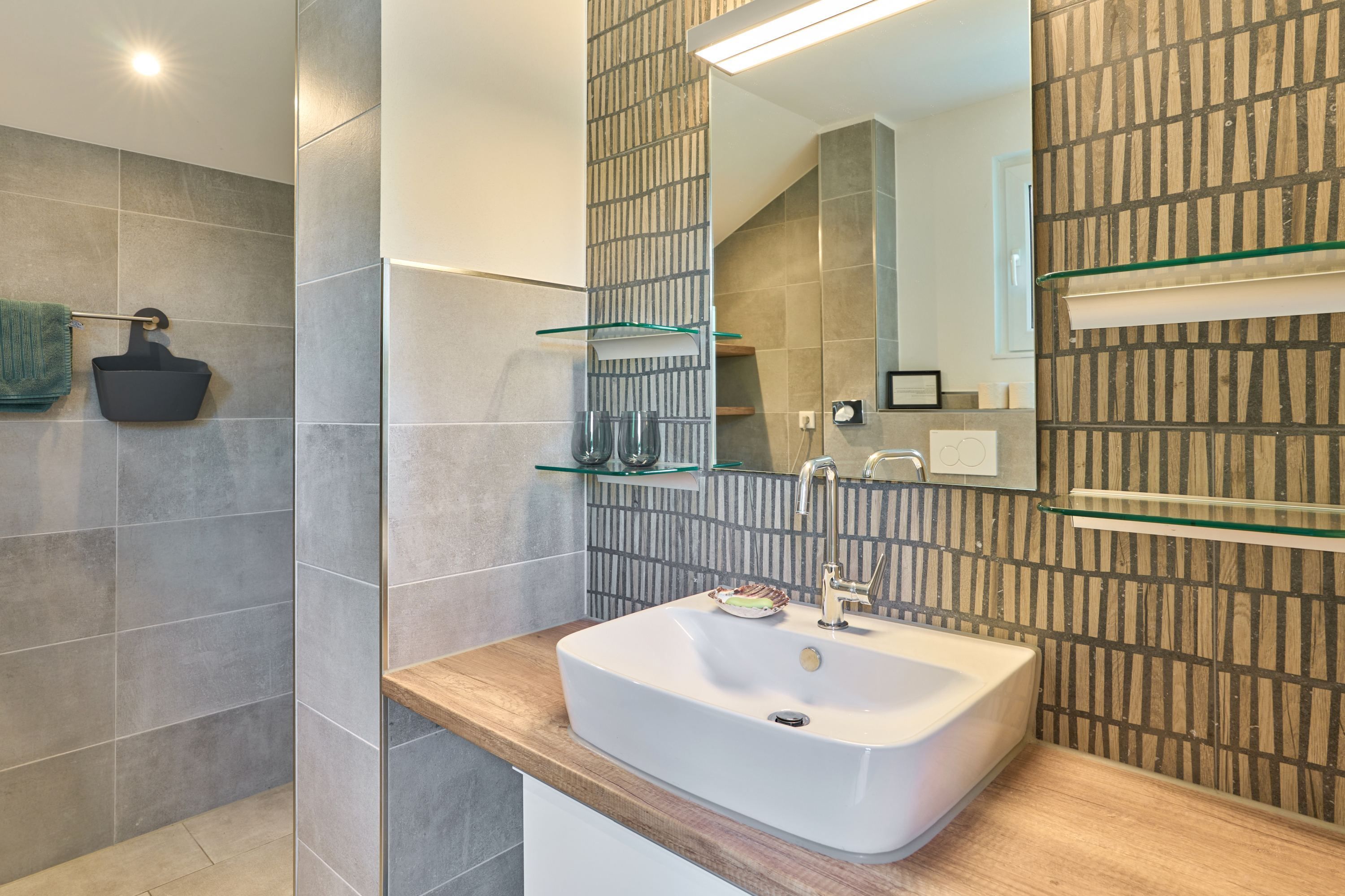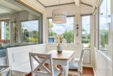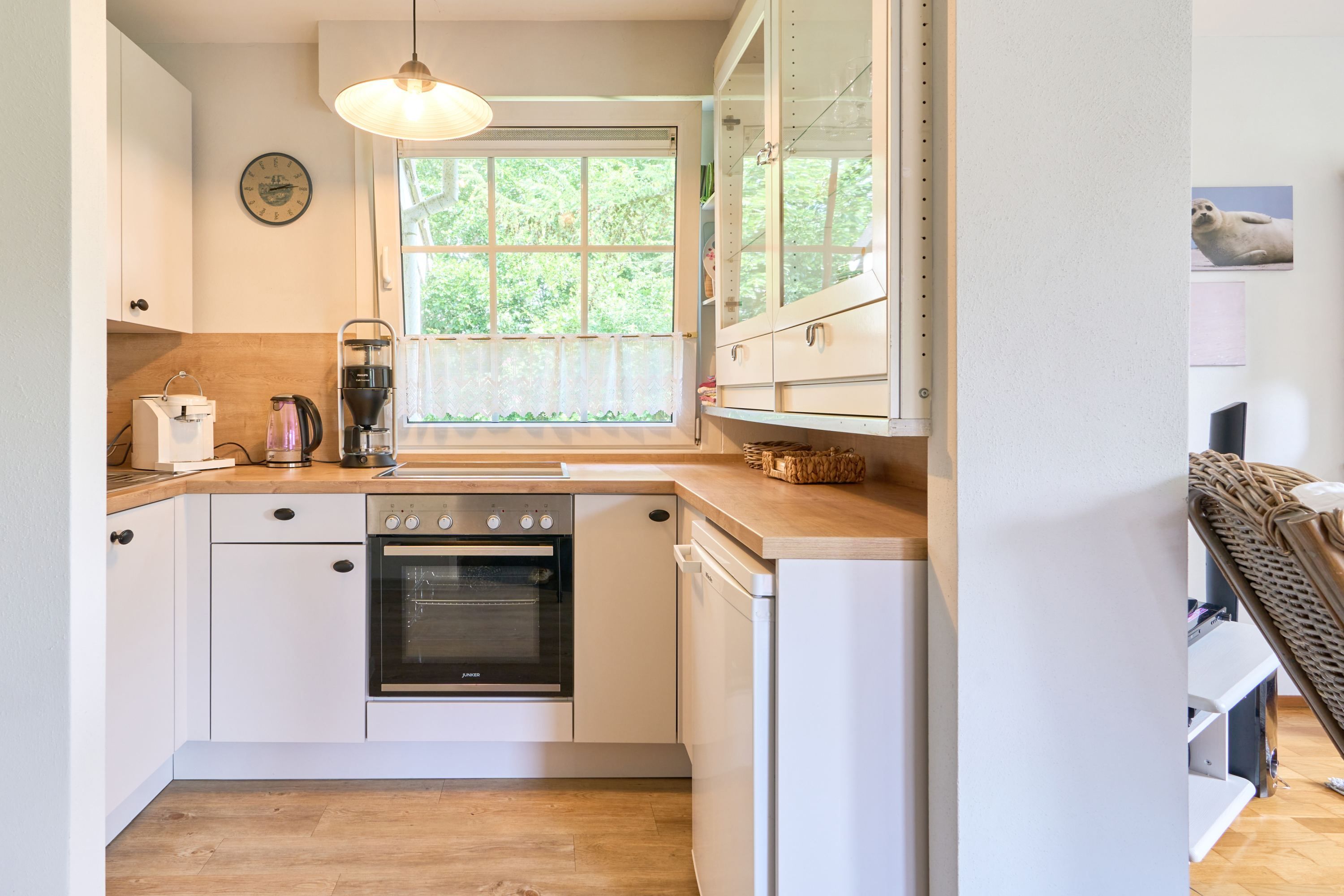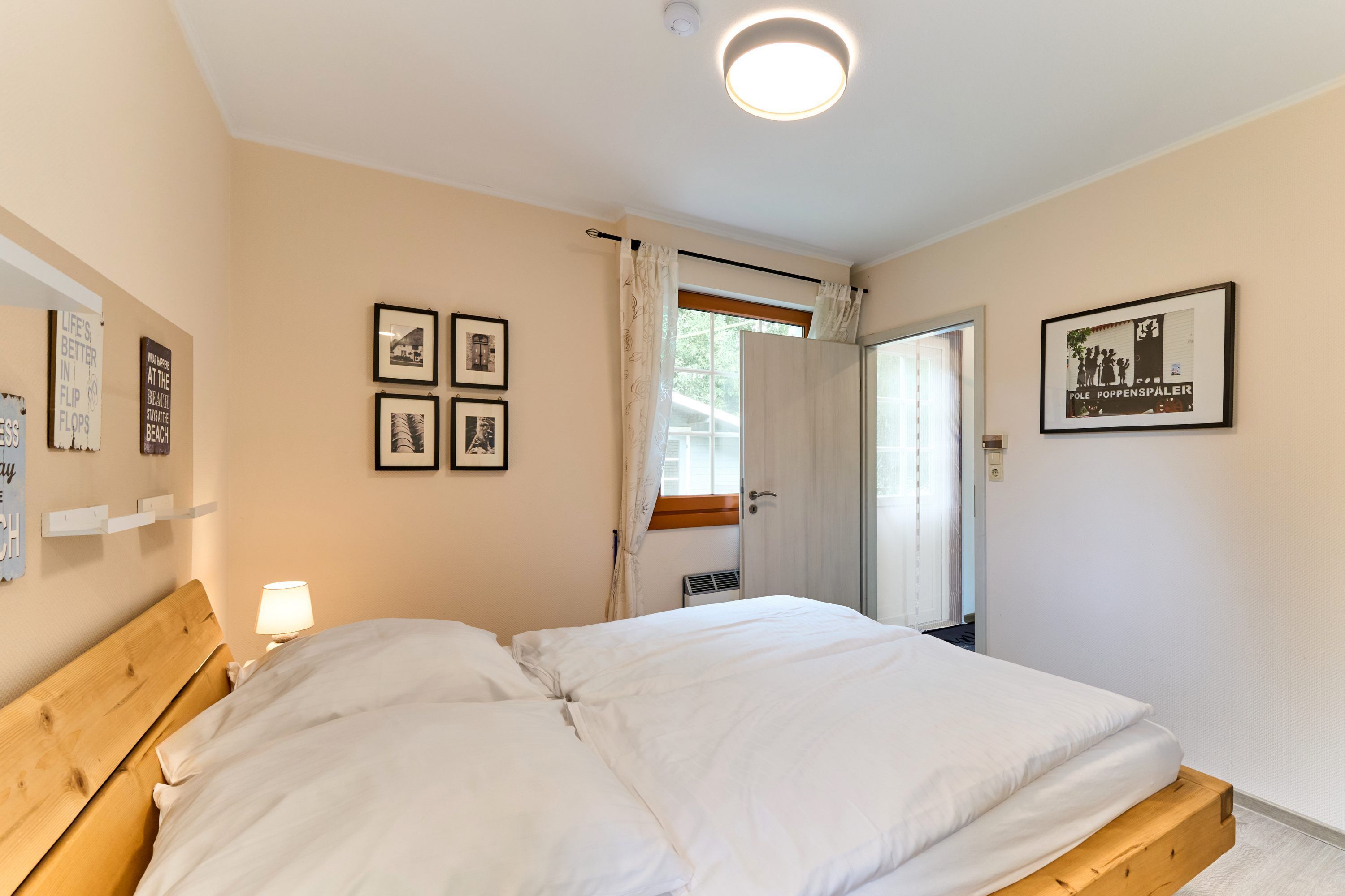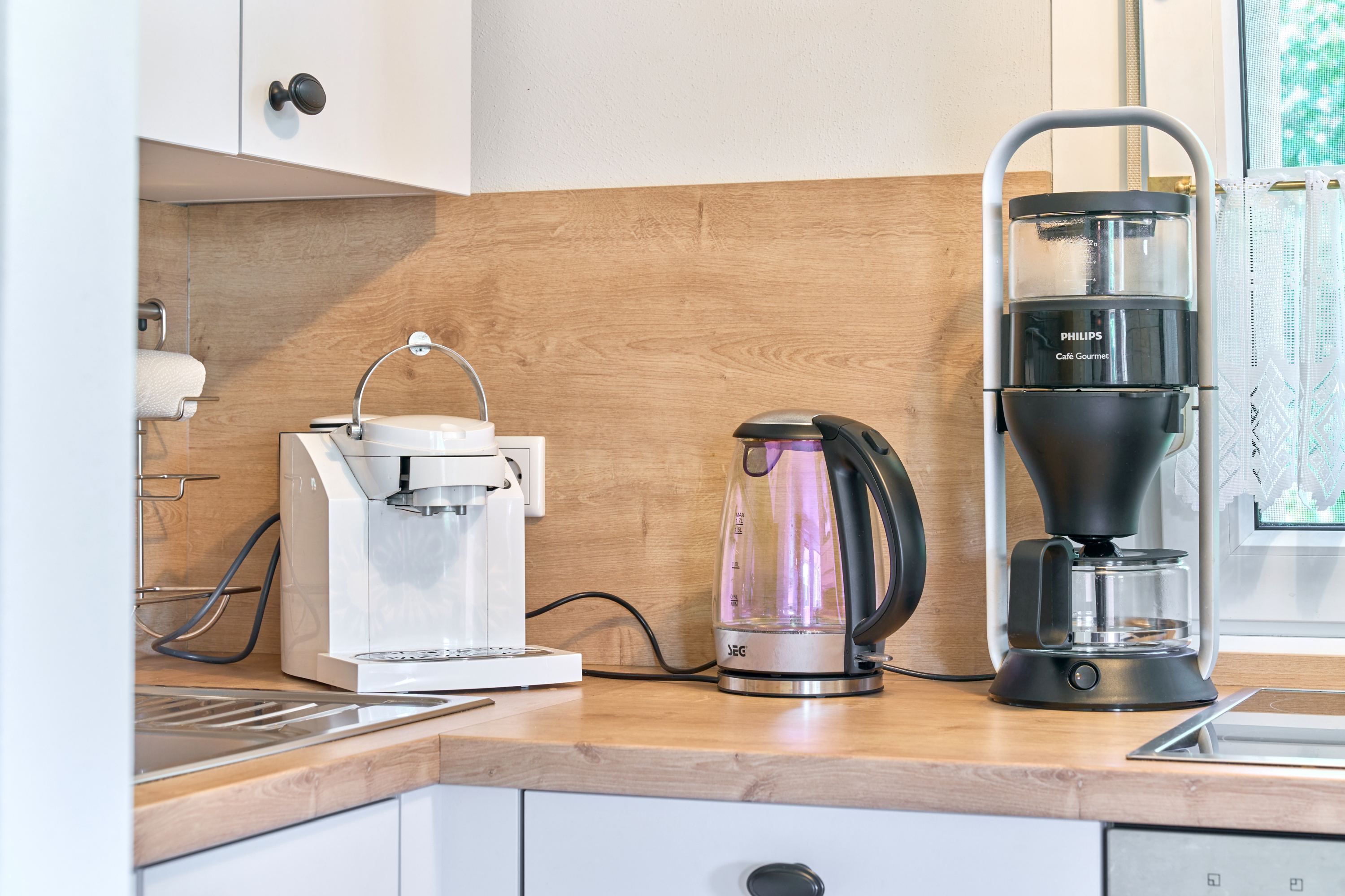 Durch einen Flur, von dem das moderne Bad mit ebenerdiger Dusche und das Schlafzimmer mit Doppelbett abgehen, gelangt Ihr in den Wohnbereich, in dem man entspannt auf dem schönen Sofa Zeit verbringen mag. Eine offene, voll ausgestattete Küche und der freundliche Essbereich im angrenzenden Wintergarten lassen keine Wüsche offen. Das Haus ist durchweg hochwertig ausgestattet.