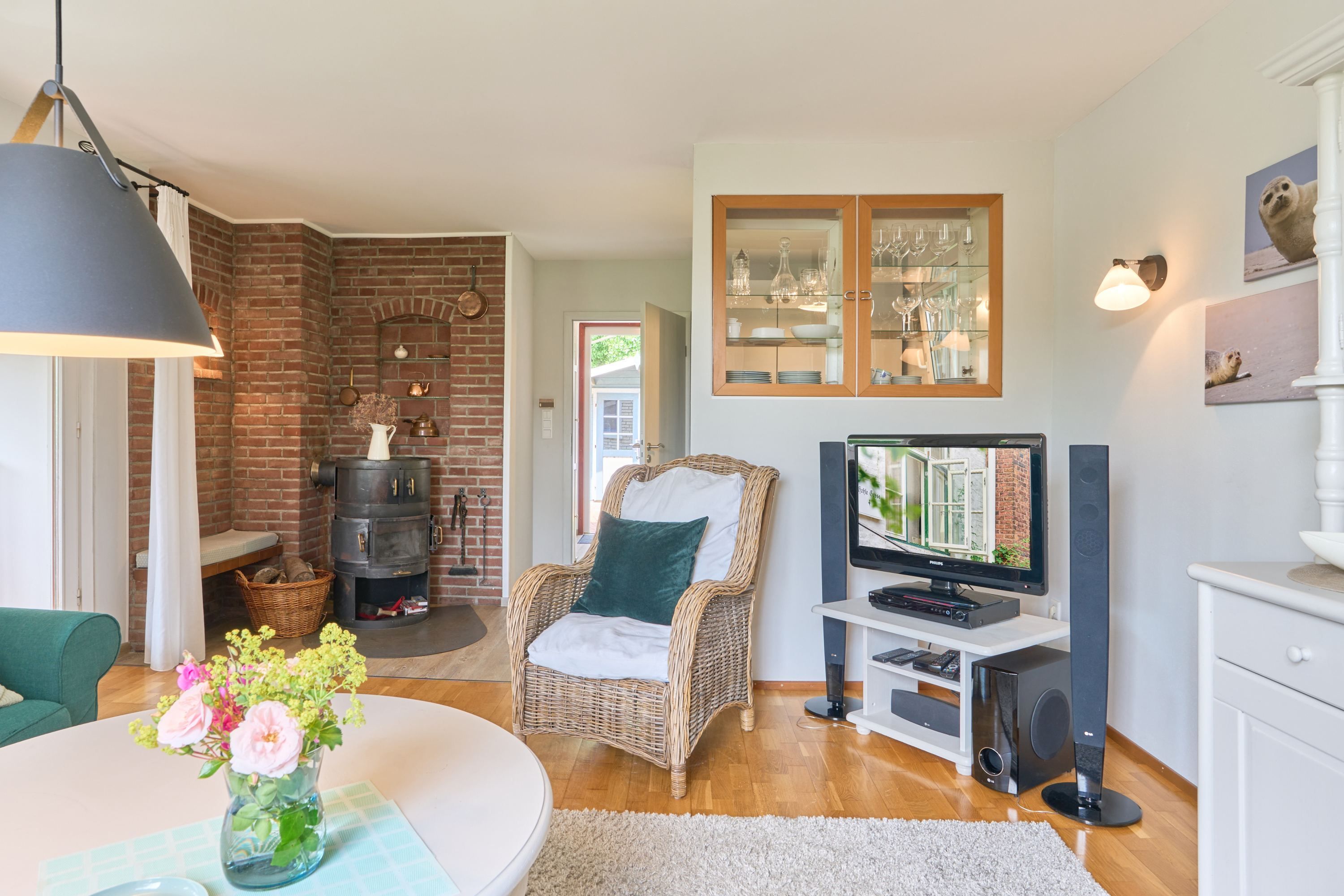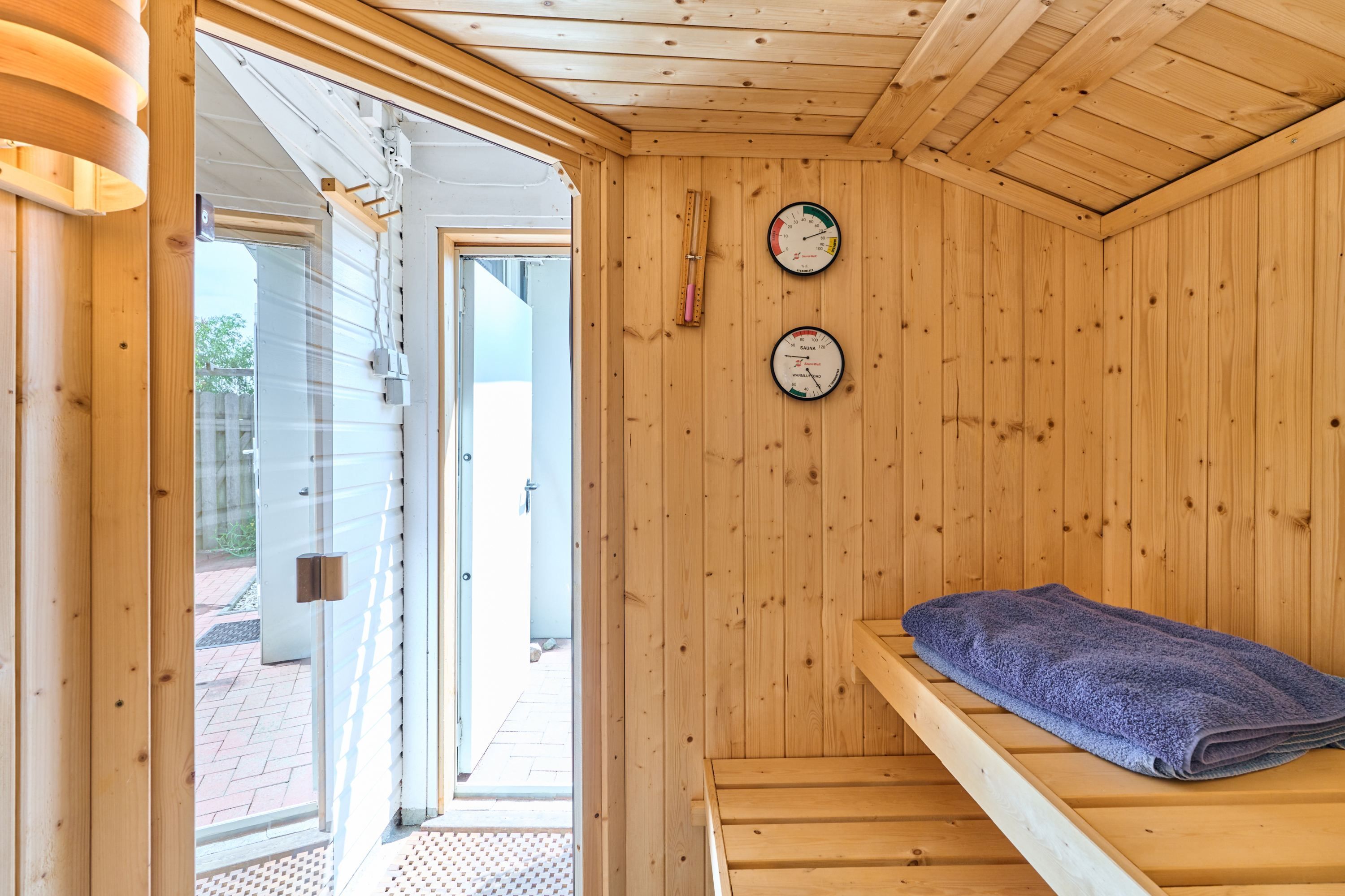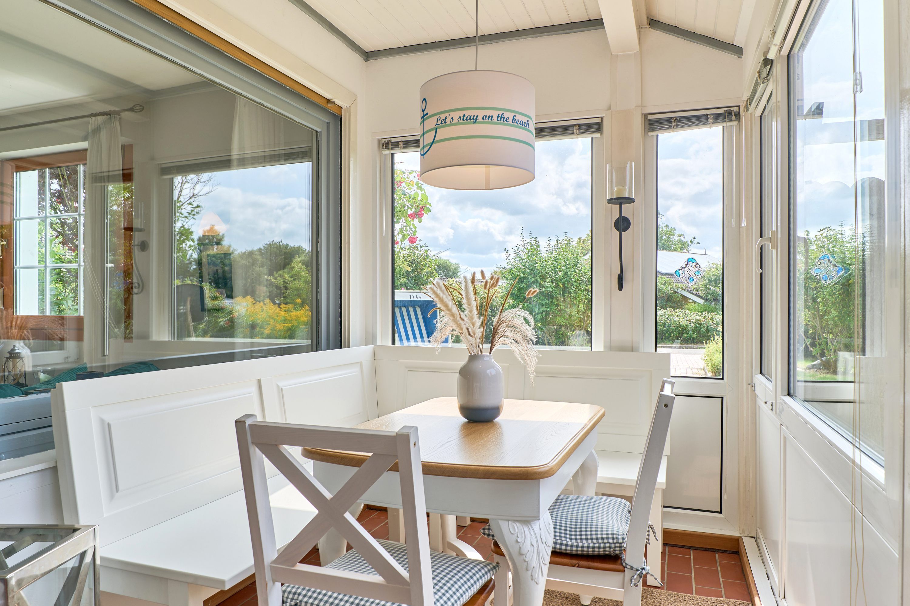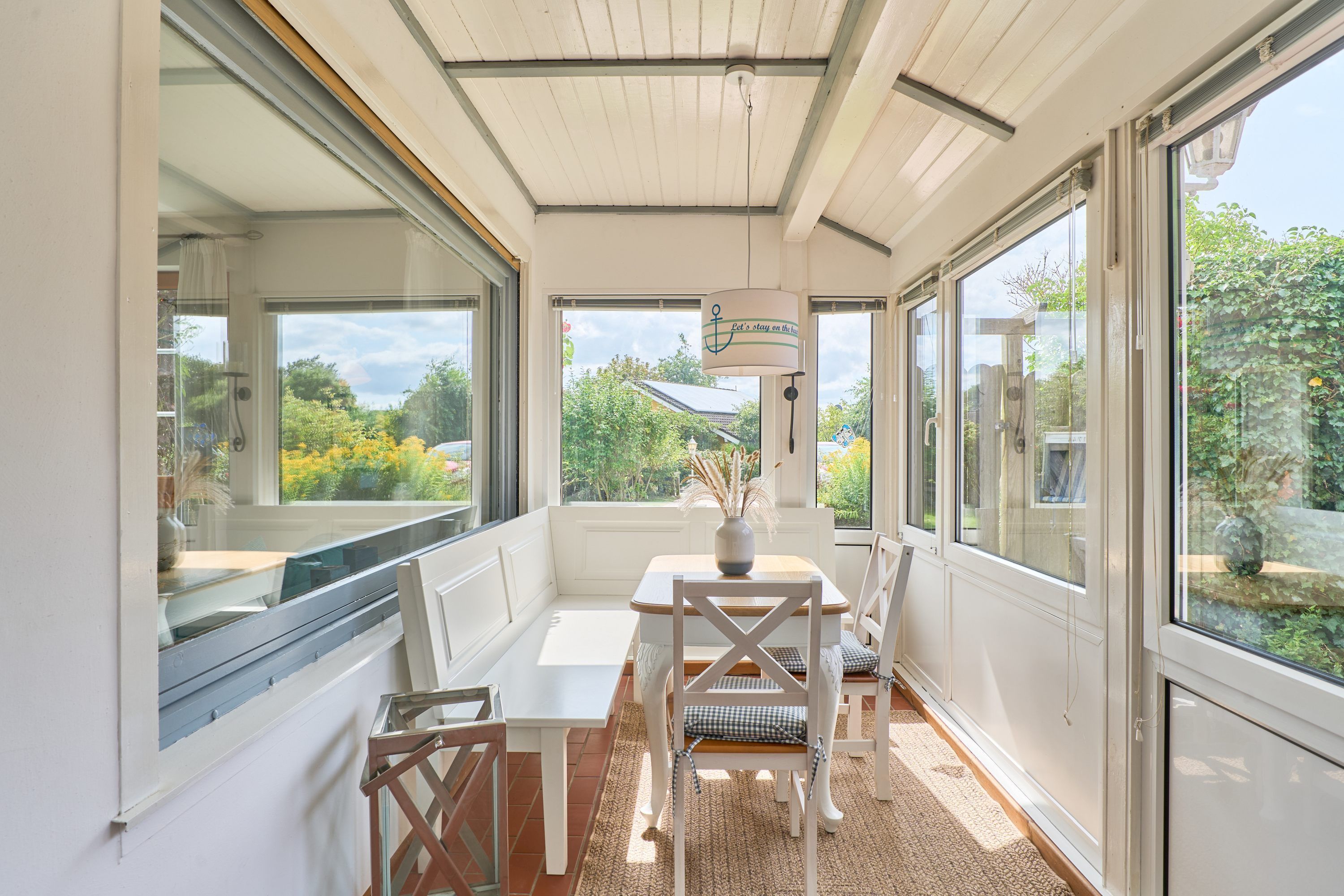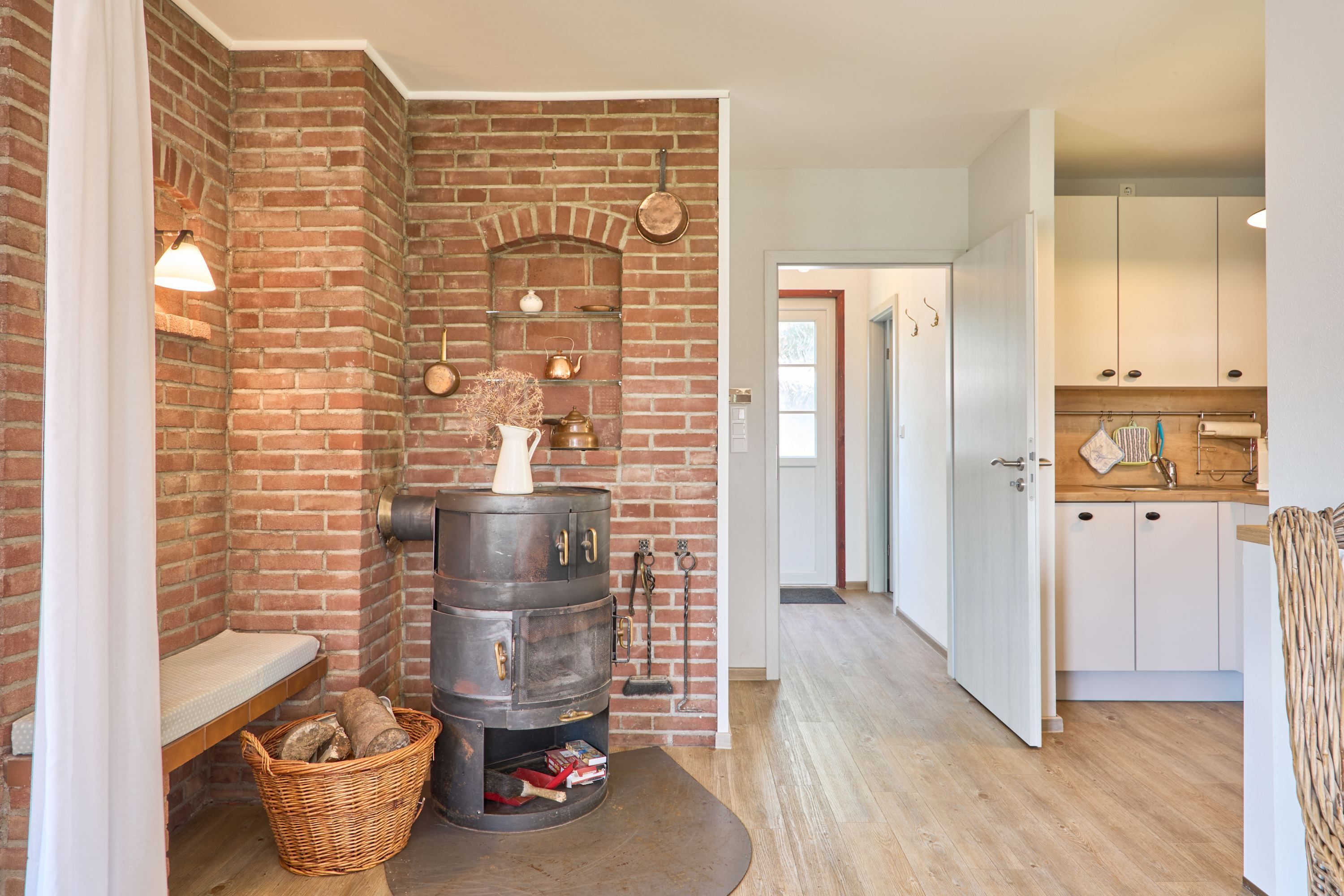 Vor dem Wintergarten liegt die nicht einsehbare Terrasse, wo Ihr auch den Zugang zur hauseigenen Sauna findet. In der Winterzeit oder wenn das Wetter im Norden einmal stürmisch ist, lädt die kuschelige Ofenecke mit dem dänischen Kaminofen zu gemütlichen Abenden ein.