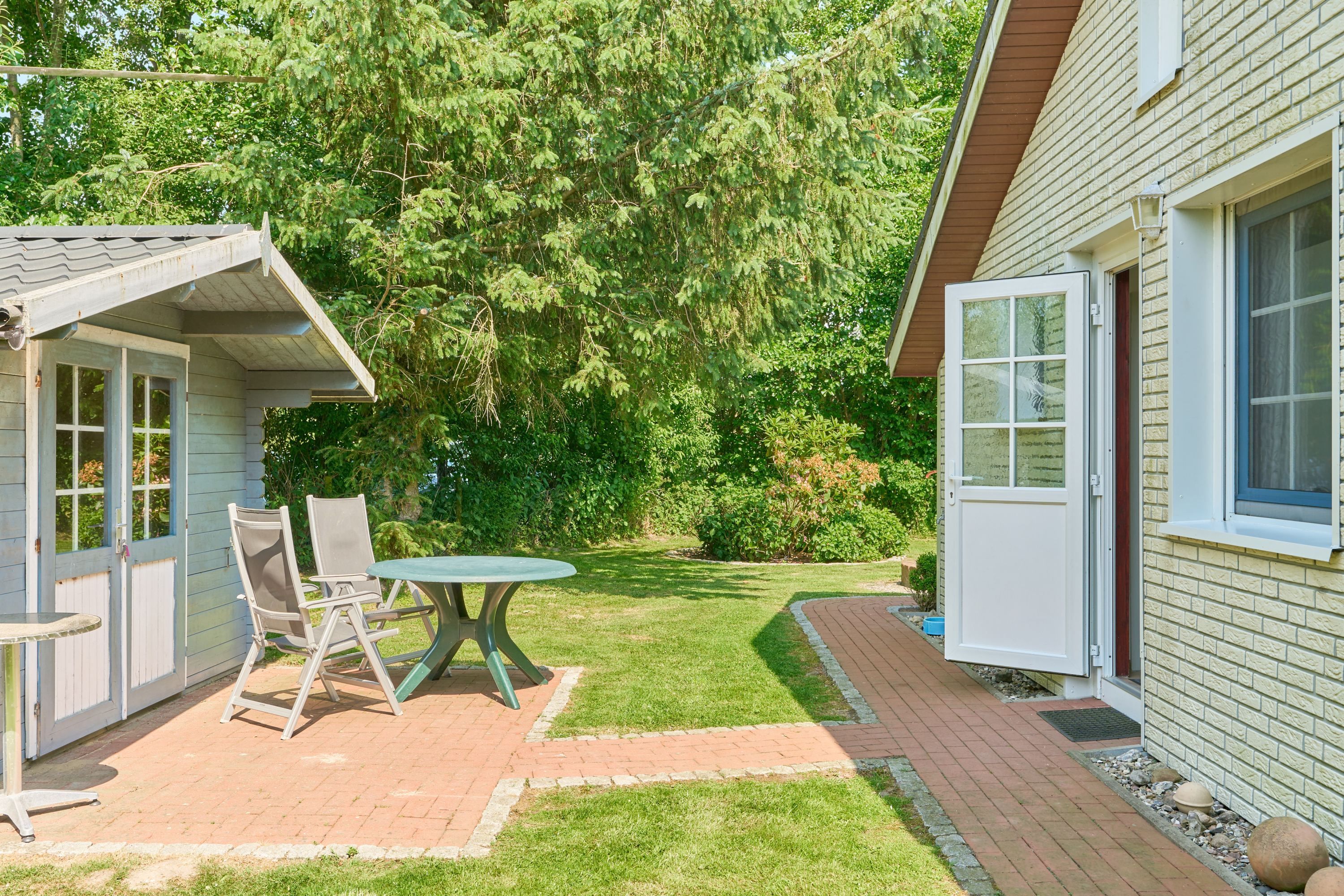 Hinter dem Haus steht ein abschließbares Gartenhäuschen, wo ihr Fahrräder oder Golf-Equipment unterbringen könnt. Hier liegt eine weitere kleine Terrasse, ideal für das Frühstück unter freiem Himmel ist. Vor dem Haus findet Ihr die zwei hauseigenen, befestigten Kfz-Stellplätze. Außerdem ist eine gute Internetversorgung durch Glasfaseranschluss sichergestellt.