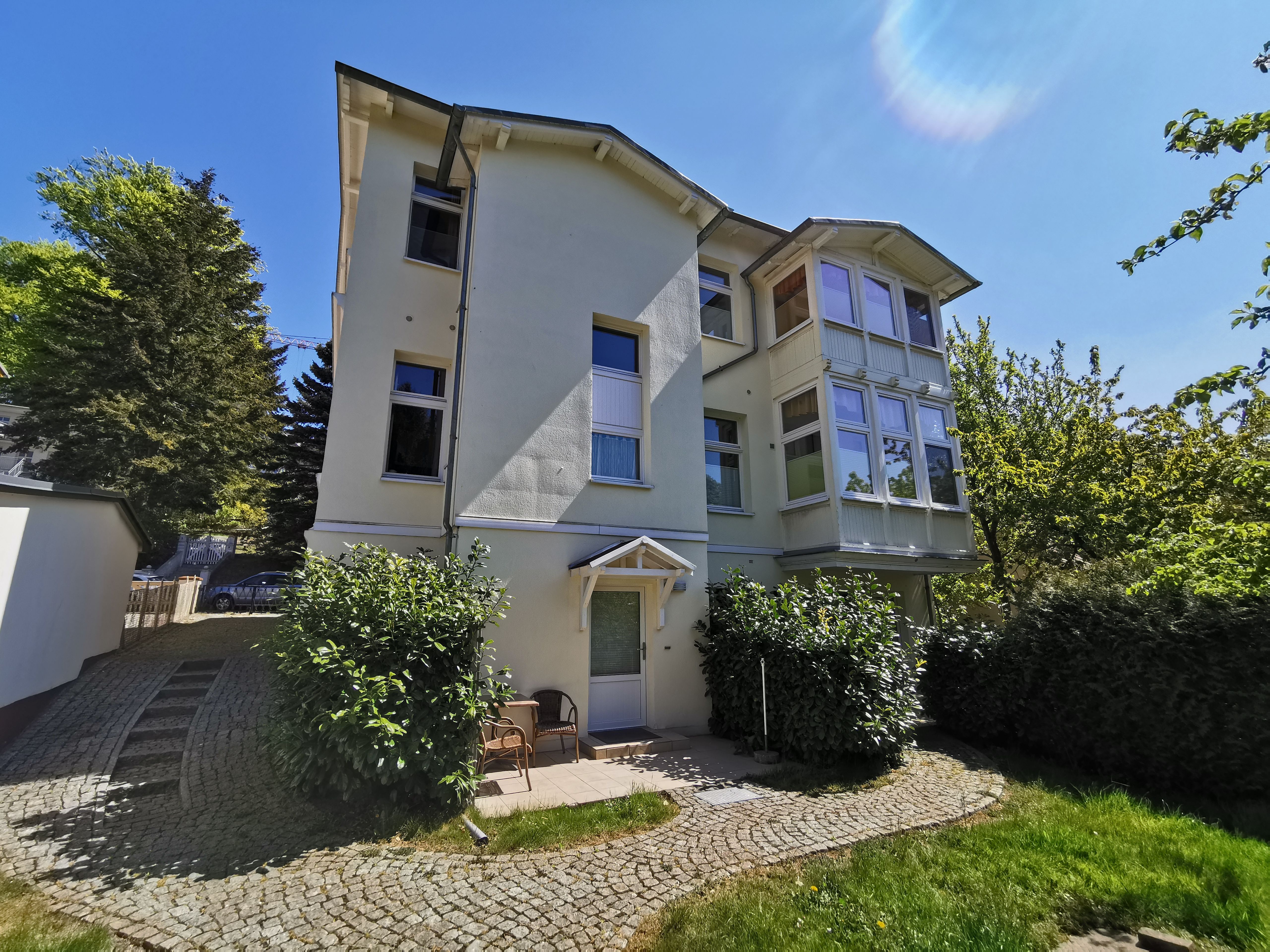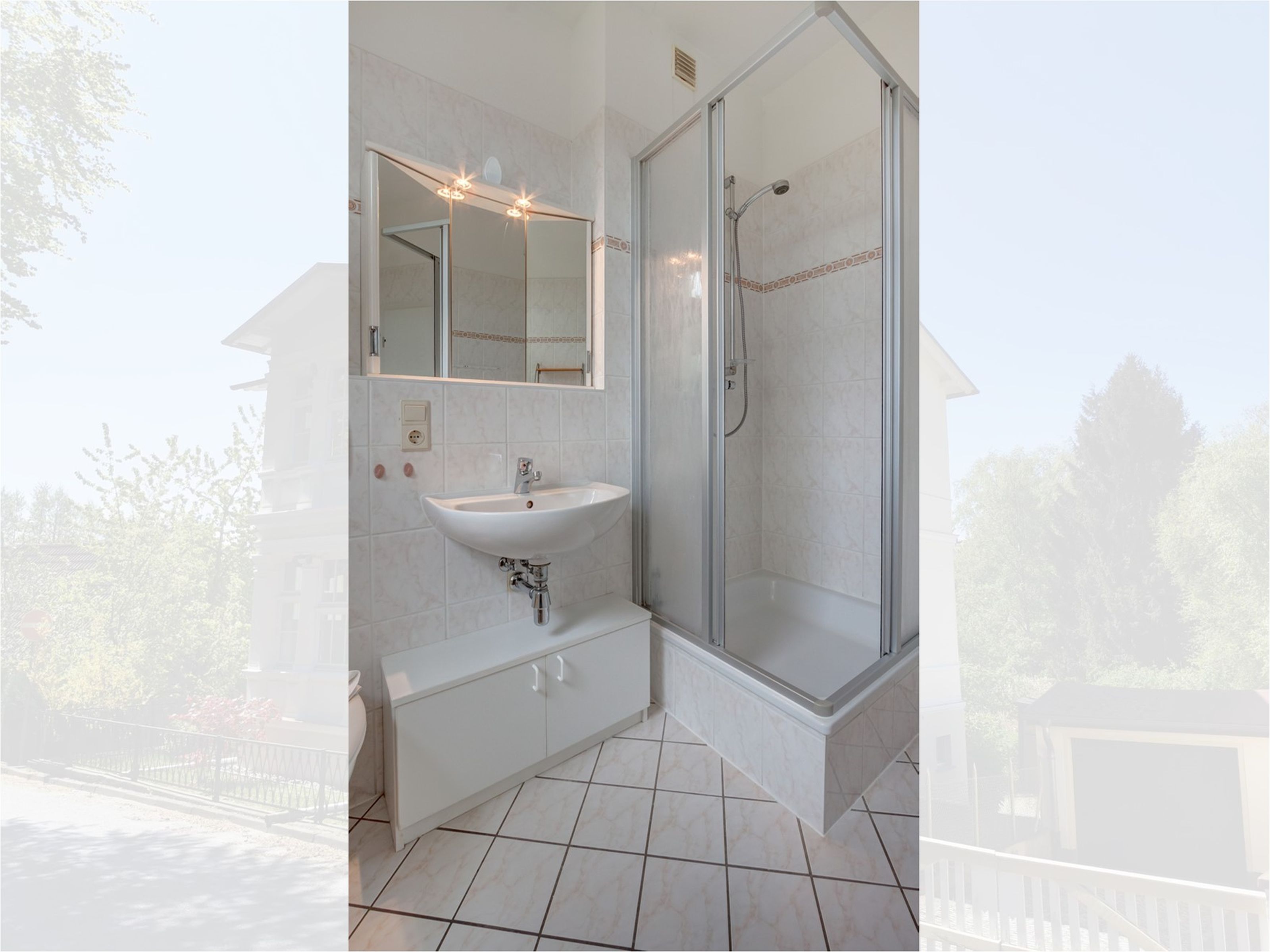 Die 50 m² große Wohnung liegt in einer charmanten, aufwendig sanierten Jugendstilvilla in ruhiger Lage. Vom Wohnzimmer und der verglasten Veranda genießen Sie einen herrlichen Blick in den Garten und auf umliegende Villen.