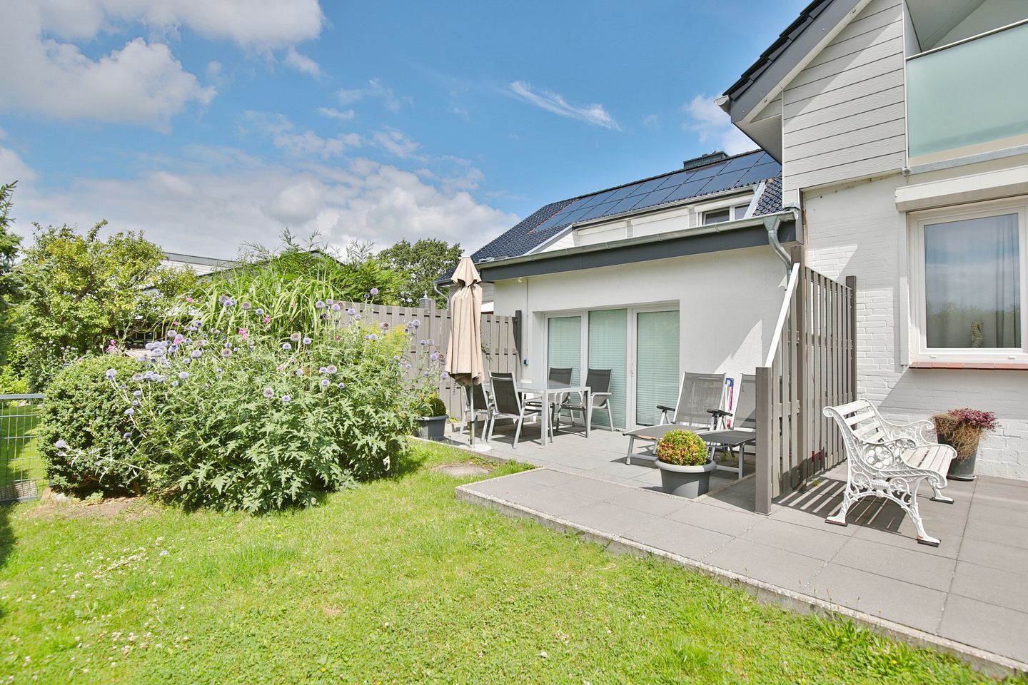Die Terrasse ist zur Südseite ausgerichtet und ist mit Gartenmöbeln und 2 Sonnenliegen ausgestattet.