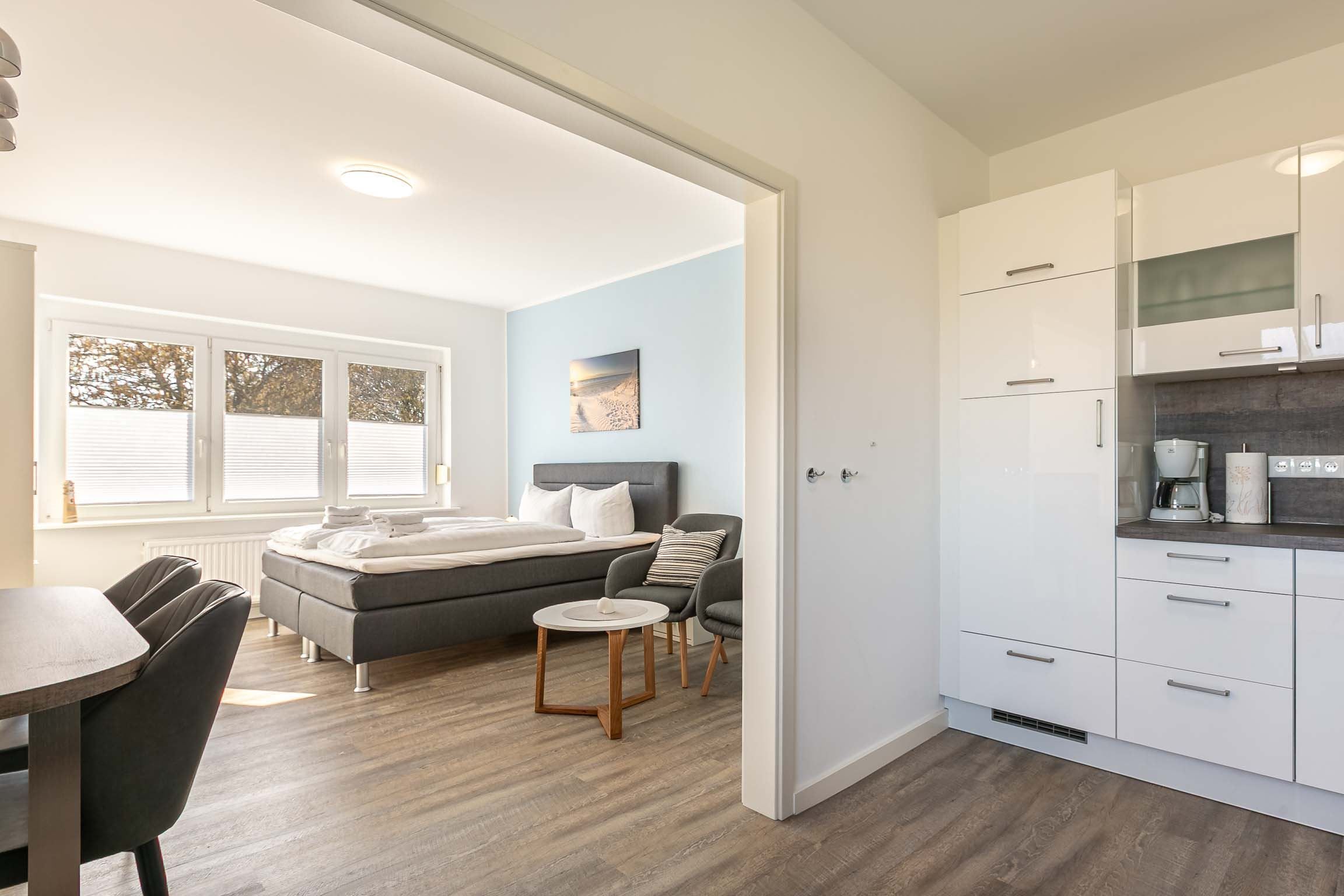 Deichnah gelegene 1-Zimmer-Ferienwohnung im Haus Everschop mit ca. 33 m² auf 1 Ebene (EG) für bis zu 2 Personen. In einmalig schöner Lage direkt am Deich im Ortsteil Ording in St. Peter-Ording. Das Meeresrauschen unmittelbar vor der Haustür, ideal für Ihren nächsten perfekten Nordsee-Urlaub.
