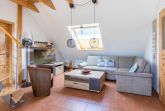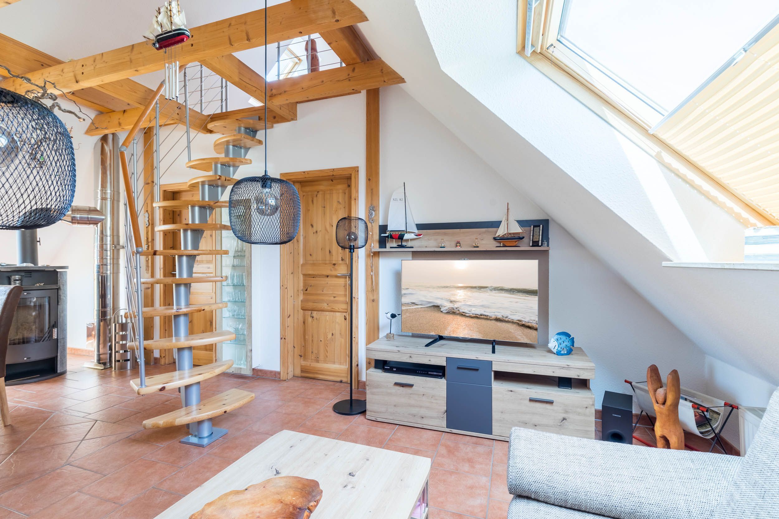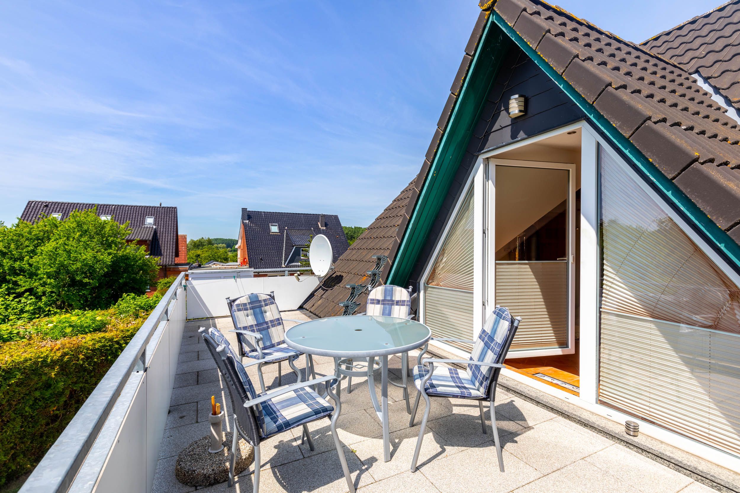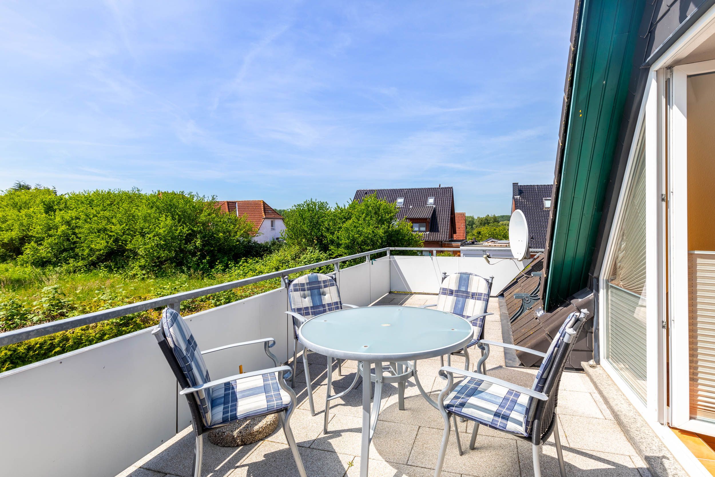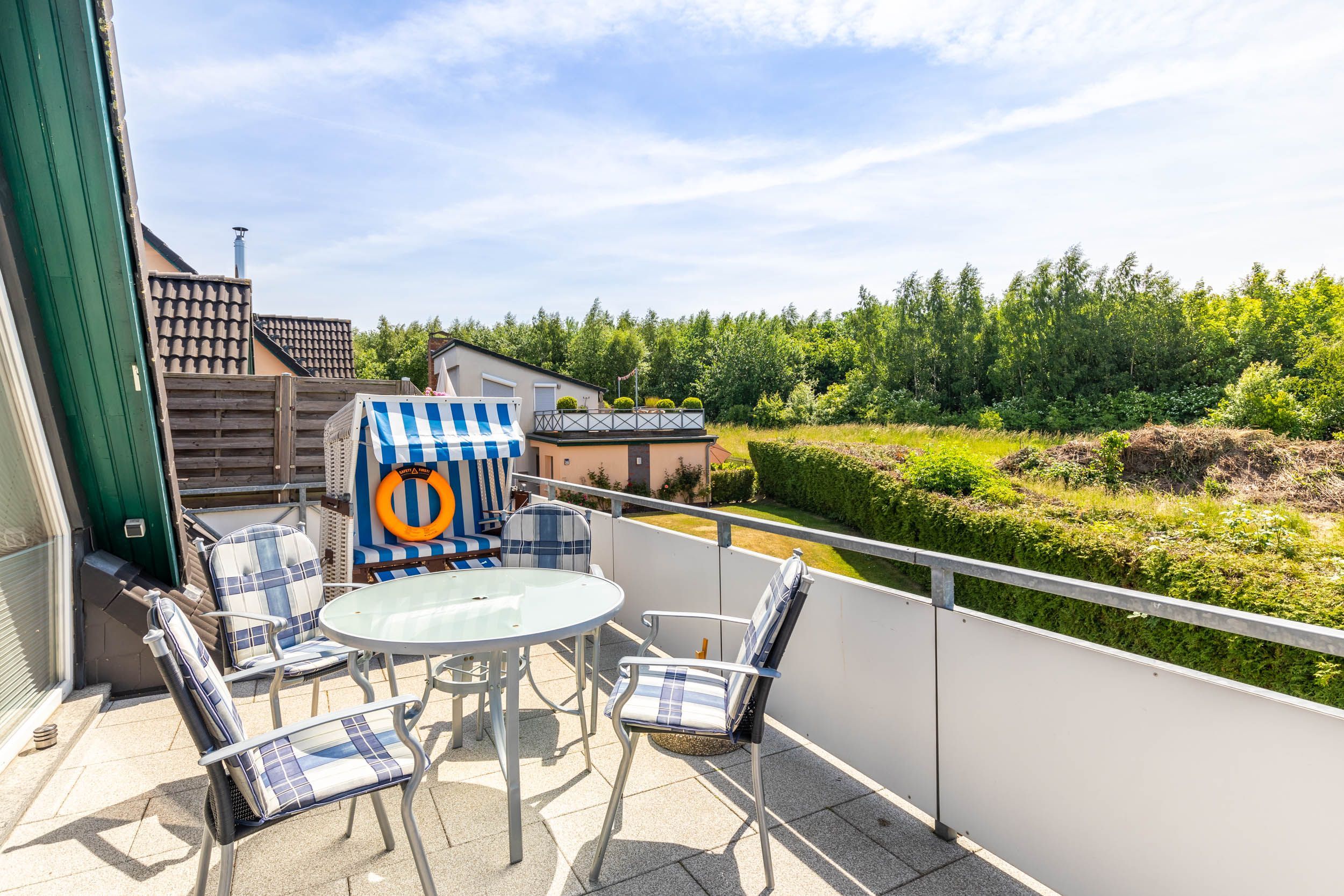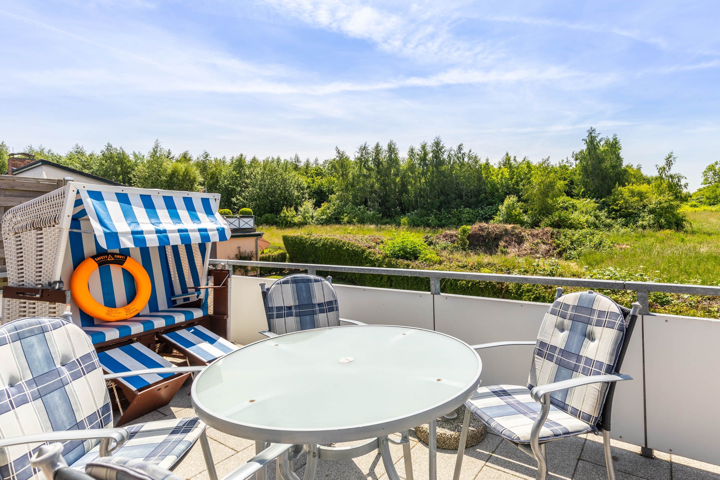 Die 3-Zimmer-Ferienwohnung im 1.OG bietet eine moderne Ausstattung für 4 Gäste. Große Fenster sorgen für viel Tageslicht. Wohnen auf einer Ebene; die Wohnung verfügt über einen wohnlich eingerichteten Wohn- und Essbereich mit SAT-TV und einer bequemen Sofaecke. Außerdem bietet die Wohnung eine offene Küche mit Herd/Backofen sowie Spülmaschine. Von hier aus gelangen Sie direkt auf den großzügigen sonnigen Balkon mit Strandkorb. Zwei separate Schlafzimmer mit ausreichend Stauraum für Ihre Urlaubsgarderobe erwarten Sie, liebe Gäste. Auf gleicher Ebene befindet sich auch das Badezimmer mit Dusche und WC.
