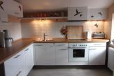 Die 65 m² große, helle Ferienwohnung ist mit zwei Schlafzimmern, einem Tageslichtbad mit Dusche, einem gemütlichen Wohnzimmer mit Radio und Sat.-TV und einer modernen Einbauküche ausgestattet. Das Elternschlafzimmer verfügt über ein Doppelbett, das Kinderzimmer über zwei Einzelbetten. Die Küche bietet Herd mit Backofen, Kühlschrank mit Gefrierfach, Kaffeemaschine, Toaster, Mikrowelle und Wasserkocher. Internetzugang haben Sie per WLAN.