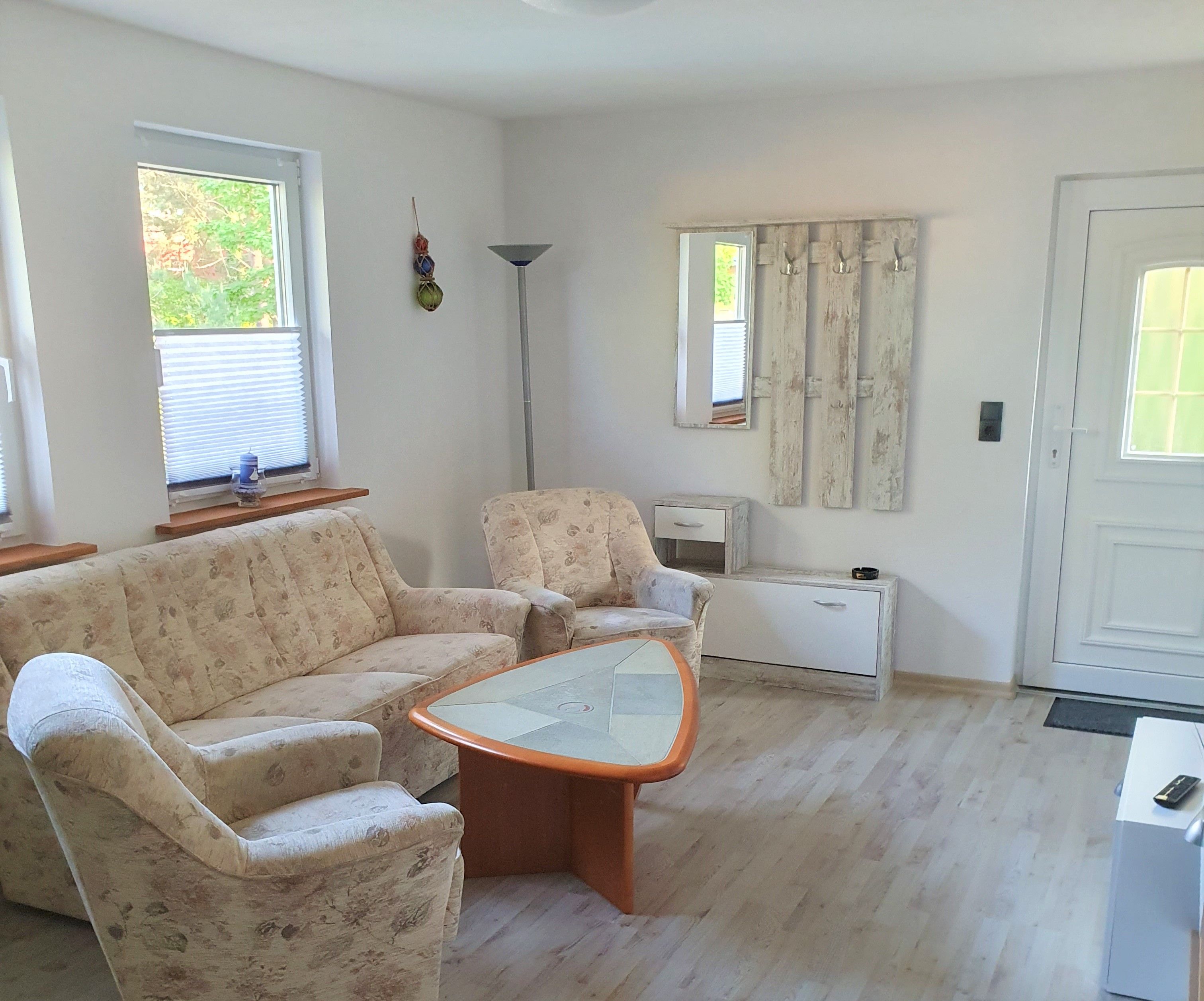 Über die kleine Terrasse gelangen Sie in den Wohnraum mit Couch, welche auch für eine Aufbettung genutzt werden kann. Hier finden Sie ebenso eine offene gut ausgestattete Küchenzeile. Über den kleinen Flur gelangen Sie in das Bad mit Dusche und WC sowie zum gemütlichen Schlafzimmer mit Doppelbett. Die Erstaustattung Bettwäsche ist inklusive, Handtücher bringen Sie sich bitte selbst mit.
