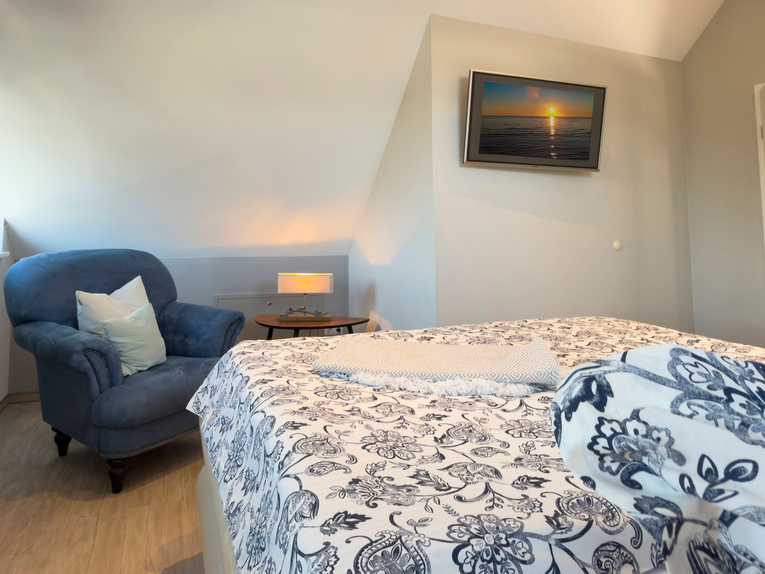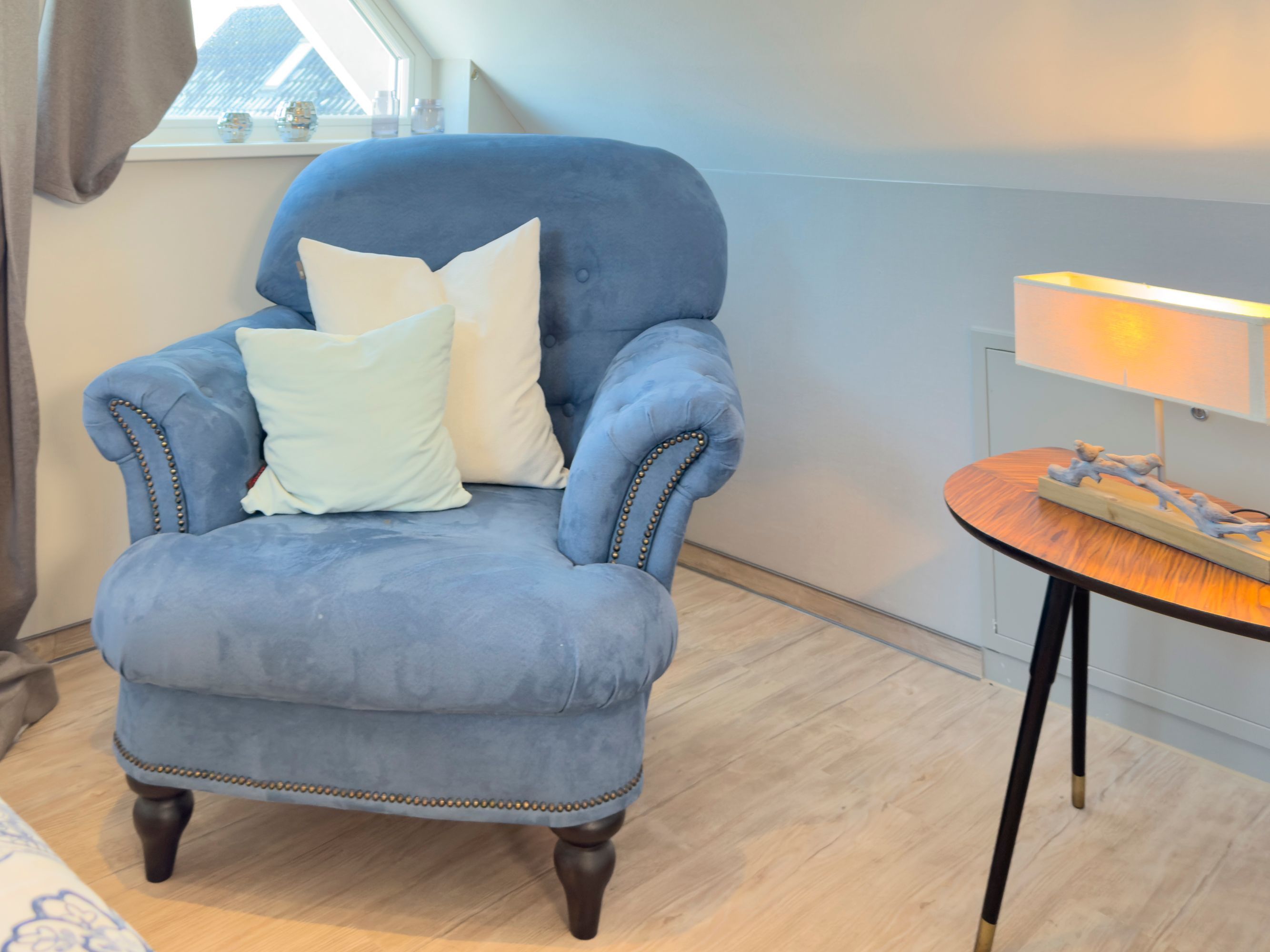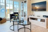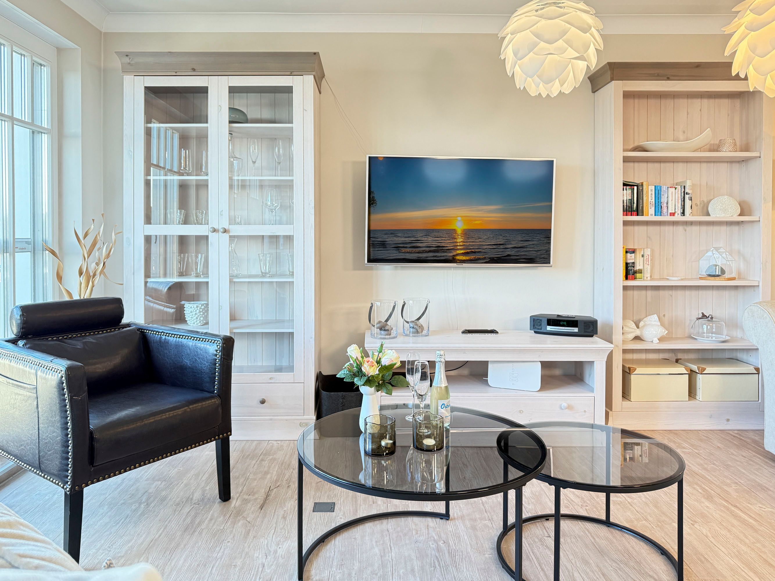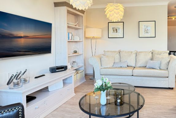 • Wohnbereich mit Balkon: Möbliert mit einem Strandkorb für maritimes Flair