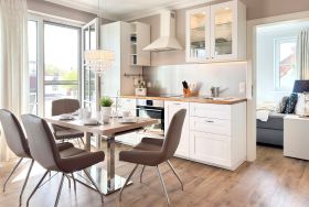 Die Ferienwohnung Elli besticht durch ihre liebevolle Einrichtung und durchdachte Raumaufteilung. Der helle Wohnbereich lädt zum Verweilen ein, während die voll ausgestattete Küche es Ihnen ermöglicht, Ihre Lieblingsgerichte zuzubereiten. Das komfortable Schlafzimmer mit Doppelbett garantiert erholsame Nächte. Auf dem privaten Balkon können Sie die frische Ostseeluft genießen und den Tag entspannt ausklingen lassen.