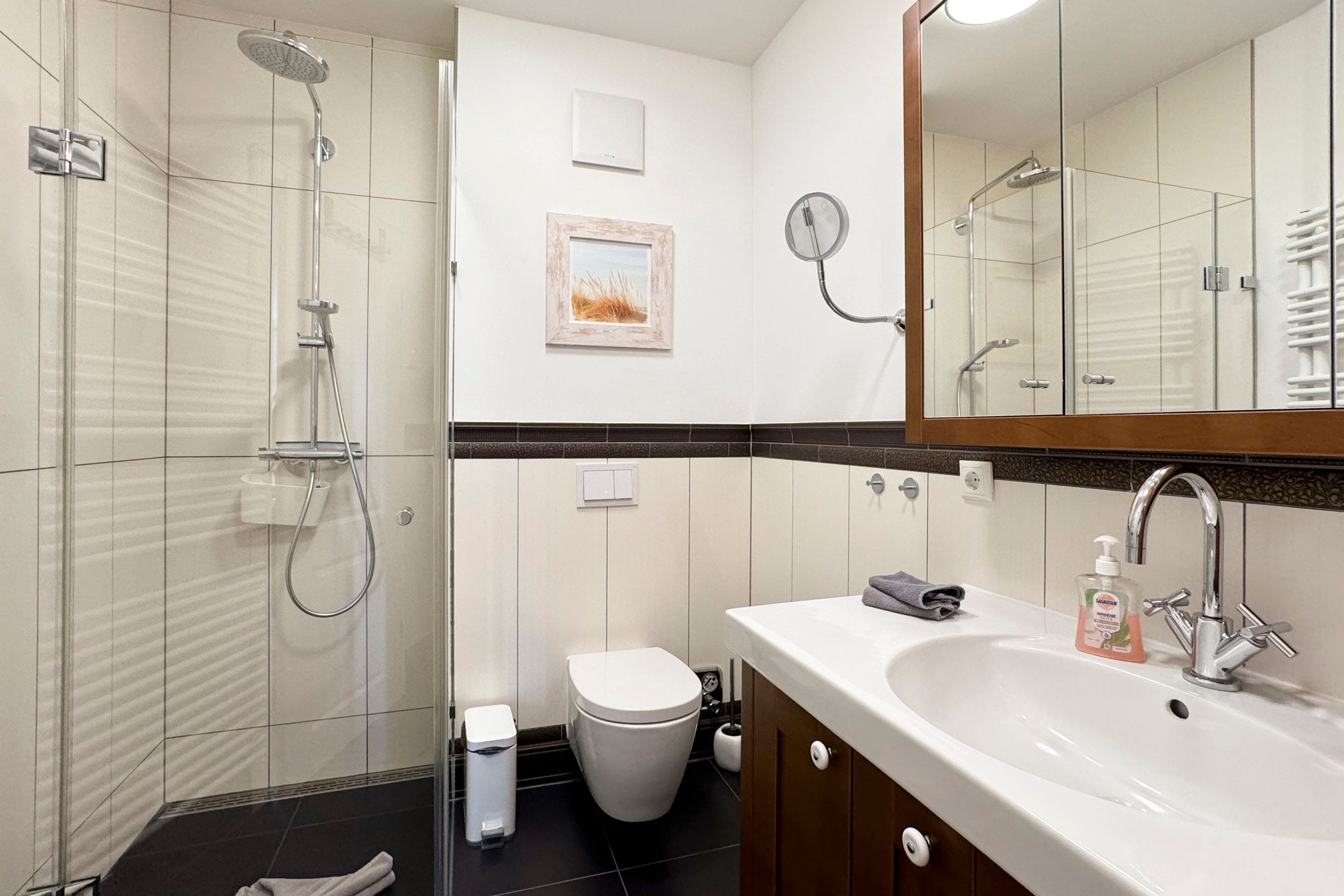 • Modernes Badezimmer: Dusche und hochwertige Ausstattung