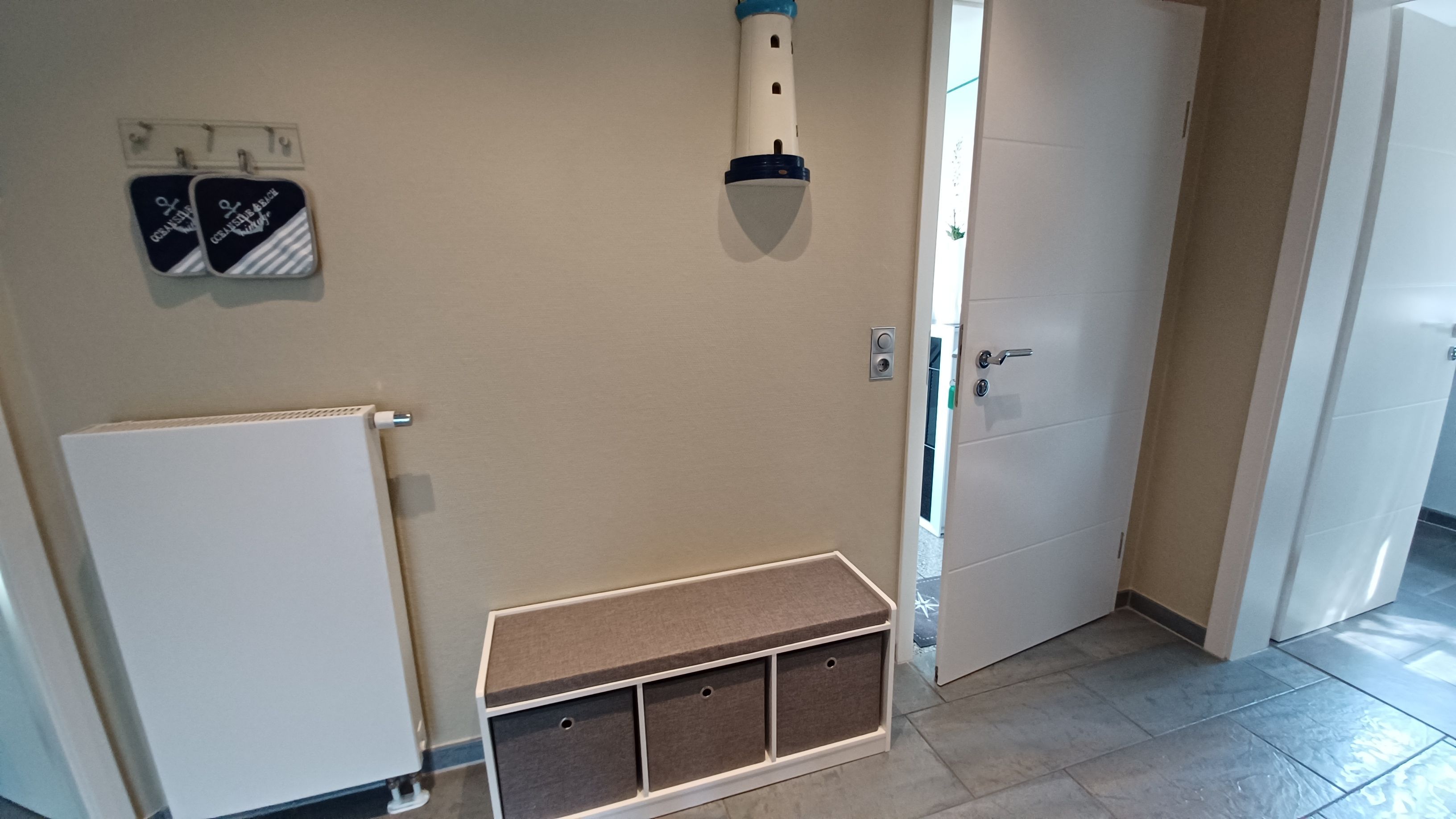 die Ferienwohnung Leuchtturm liegt etwas außerhalb von Wustrow, direkt hinter dem Deich. Die Wohnung bietet Platz für 2 Personen. Den feinsandigen Ostseestrand erreichen Sie in etwa 50 Metern. Der Balkon lädt zum Verweilen ein oder Sie genießen den Sonnenuntergang am Strand mit einem Glas Wein. Die Wohnung wurde mit viel Liebe zum Detail von den Vermietern eingerichtet. Das Wohnzimmer verfügt über eine gemütliche Couch , SAT- TV und einen Kamin. Im Schlafzimmer befindet sich ein Doppelbett 1,80 x 2,00 cm (mit getrennten Matratzen) und viel Stauraum. Im 2. Schlafzimmer befindet sich ein Bett 0,90 x 2,00 m (ausziehbar). Auch bei der Küchenausstattung wurde auf jedes Detail geachtet, damit die Gäste sich rundum Wohlfühlen können. Zur Ausstattung gehören alle notwendigen Küchenutensilien und laden mit dem Essplatz zum gemeinsamen kochen ein. Die Küchenzeile wurde mit Kaffeemaschine, Wasserkocher, Kühlschrank mit Gefrierfach, Mikrowelle, Geschirrspüler und Herd mit Cerankochfeld sowie einem Backofen ausgestattet. Das moderne Badezimmer wurde mit einer ebenerdigen Dusche und Fön ausgestattet. Alle Räume der Ferienwohnung sind mit Fliegengasen und einer Aussenjalousie ausgestattet. Die Wohnung ist eine Nichtraucherwohnung. Für unsere Gäste steht ein kostenloses WLAN bereit. Die Bettwäsche und Handtücher können bei der Zimmervermittlung dazu gebucht werden - ein Paket 19,50 € (1 Badetuch, 1 Handtuch, 1 Kopfkissen, 1 Bezug und 1 Spannbettlaken). Zur Ferienwohnung gehört ein eigener PKW- Stellplatz. Haustiere sind nicht erlaubt. Ein Fahrradschuppen steht für die Wohnungen zur Verfügung. Kaminholz ist nicht vorhanden. Ein separater Grillplatz gehört ebenso dazu.