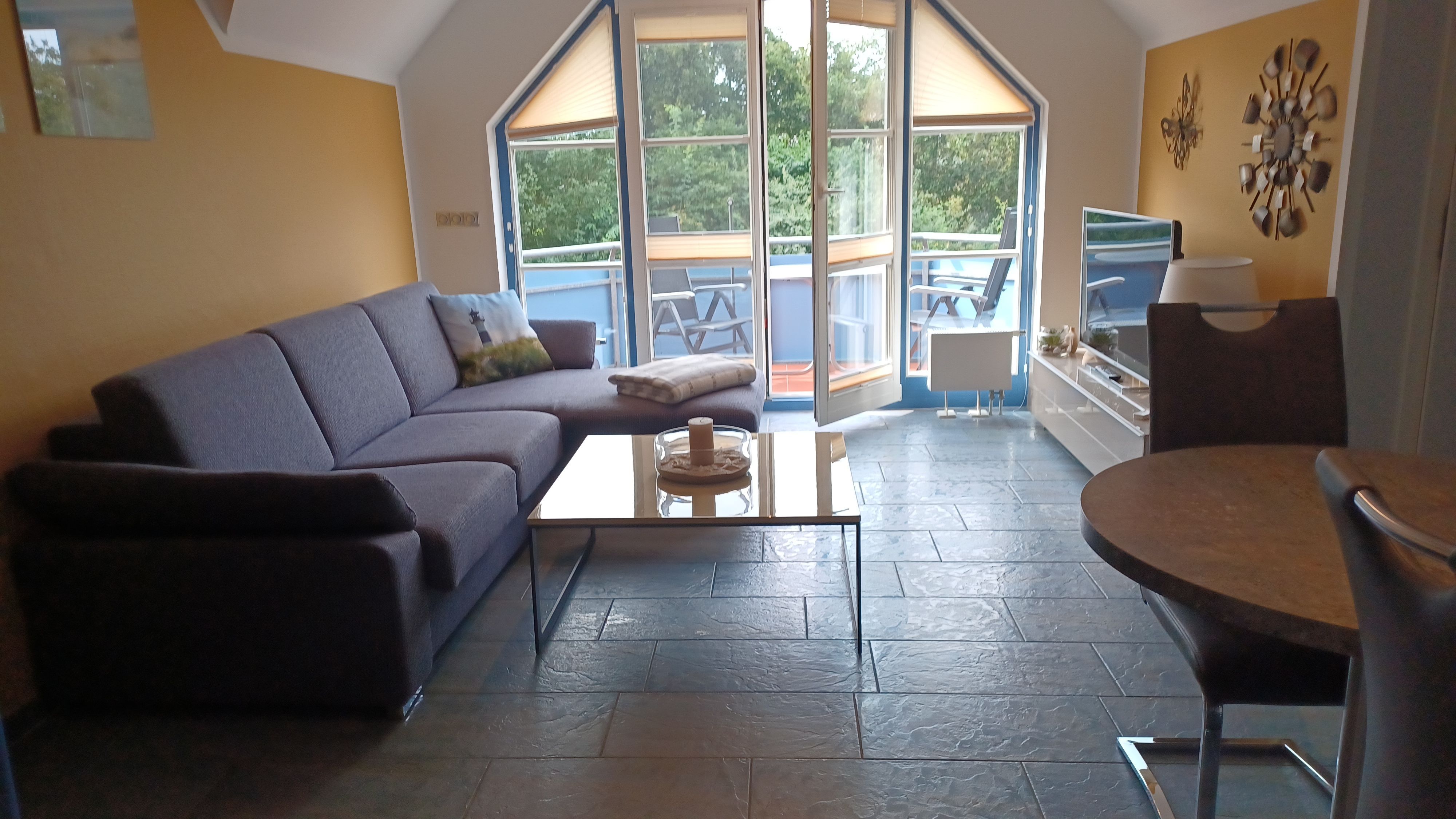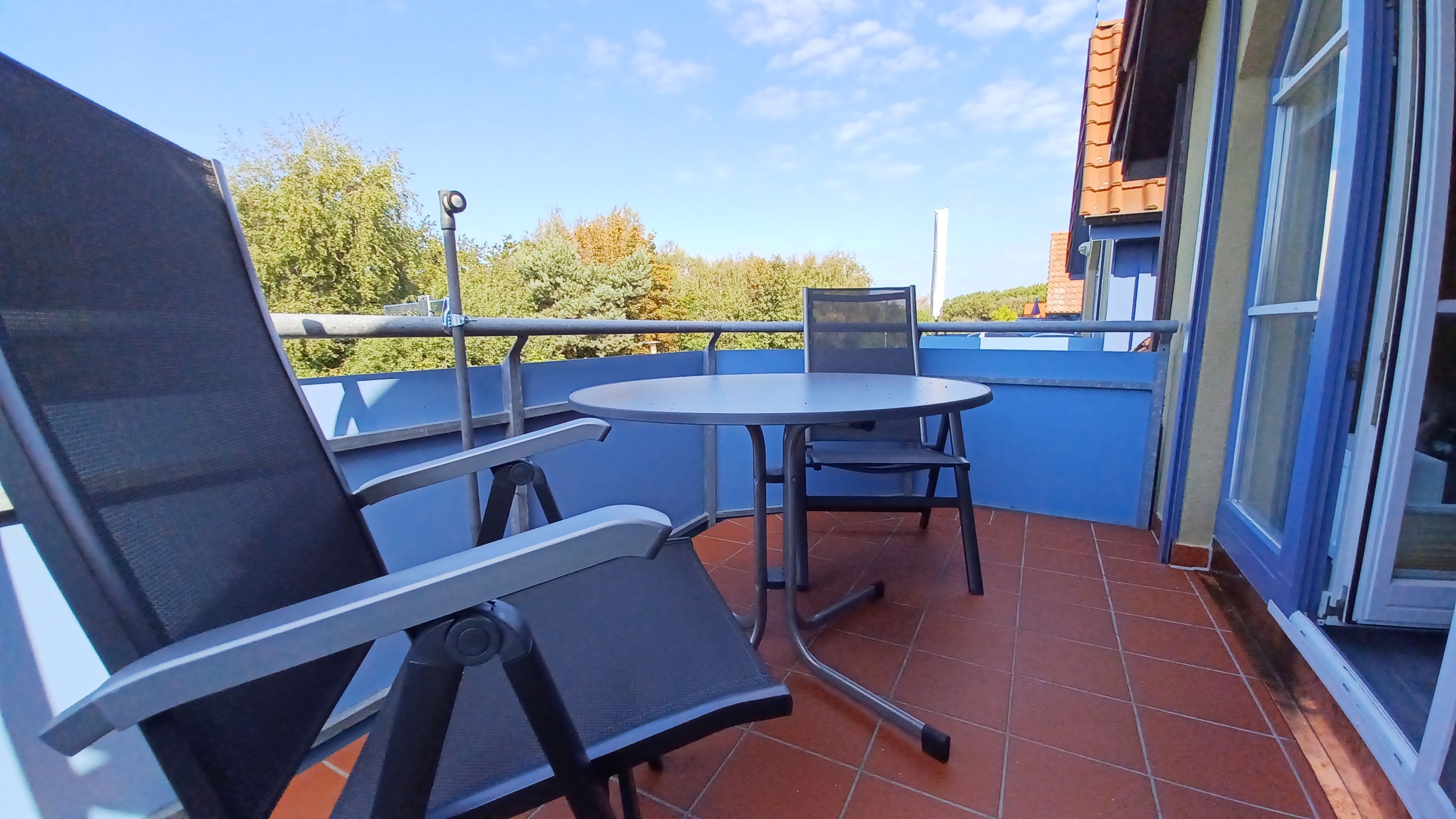 Der Balkon lädt zum Verweilen ein oder Sie genießen den Sonnenuntergang am Strand mit einem Glas Wein.