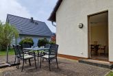 Beide Wohnungen verfügen über eine sonnige Terrasse mit Terrassenmöbeln und einem Pkw-Carport-Parkplatz. Auf dem Parkplatz der Wohnung 2 können zwei Pkws hintereinander stehen. Zudem gibt es einen Fahrradschuppen mit jeweils 2 einfach ausgestatteten Fahrrädern (Funktionszustand abhängig von der letzten Nutzung).