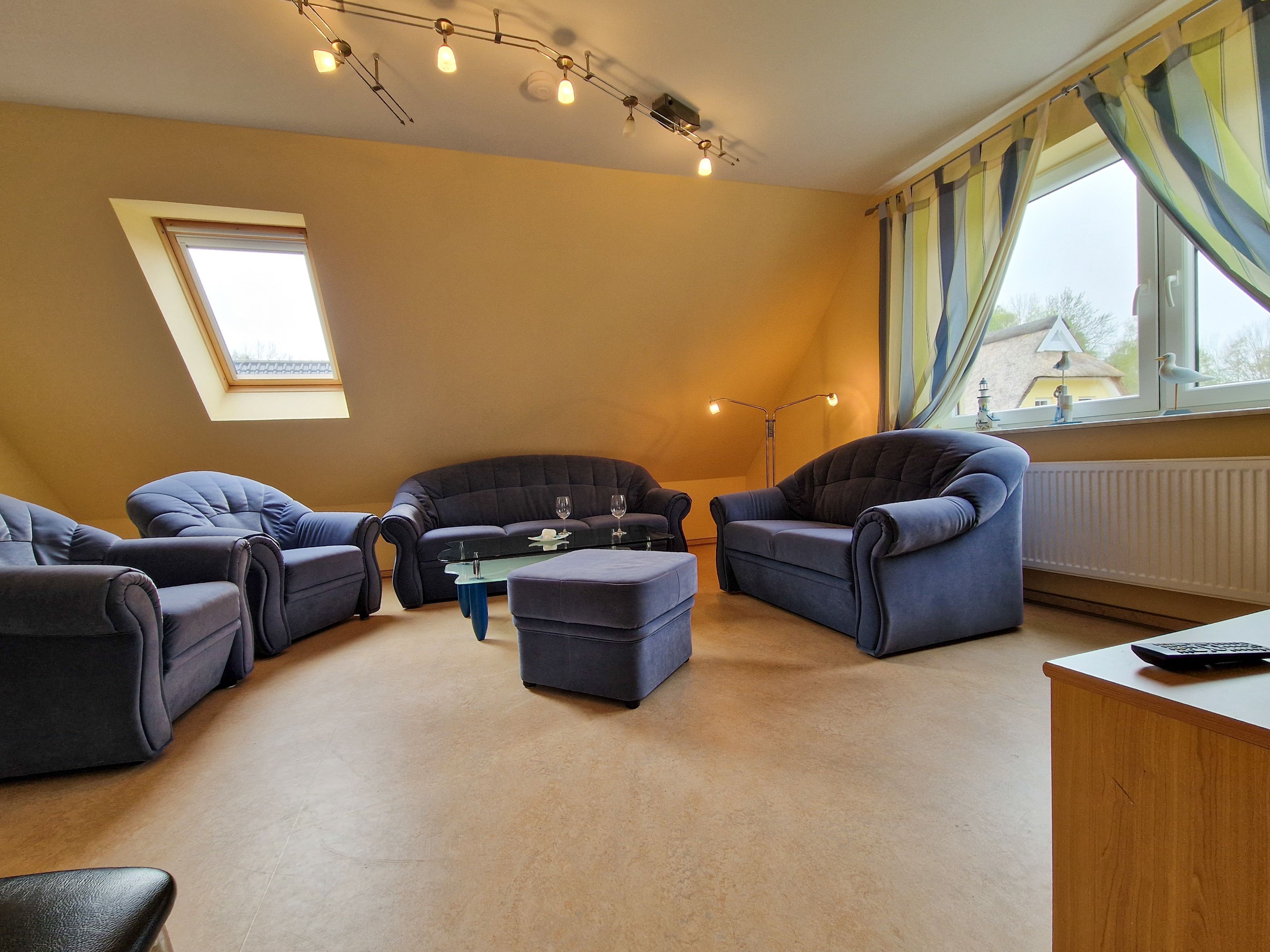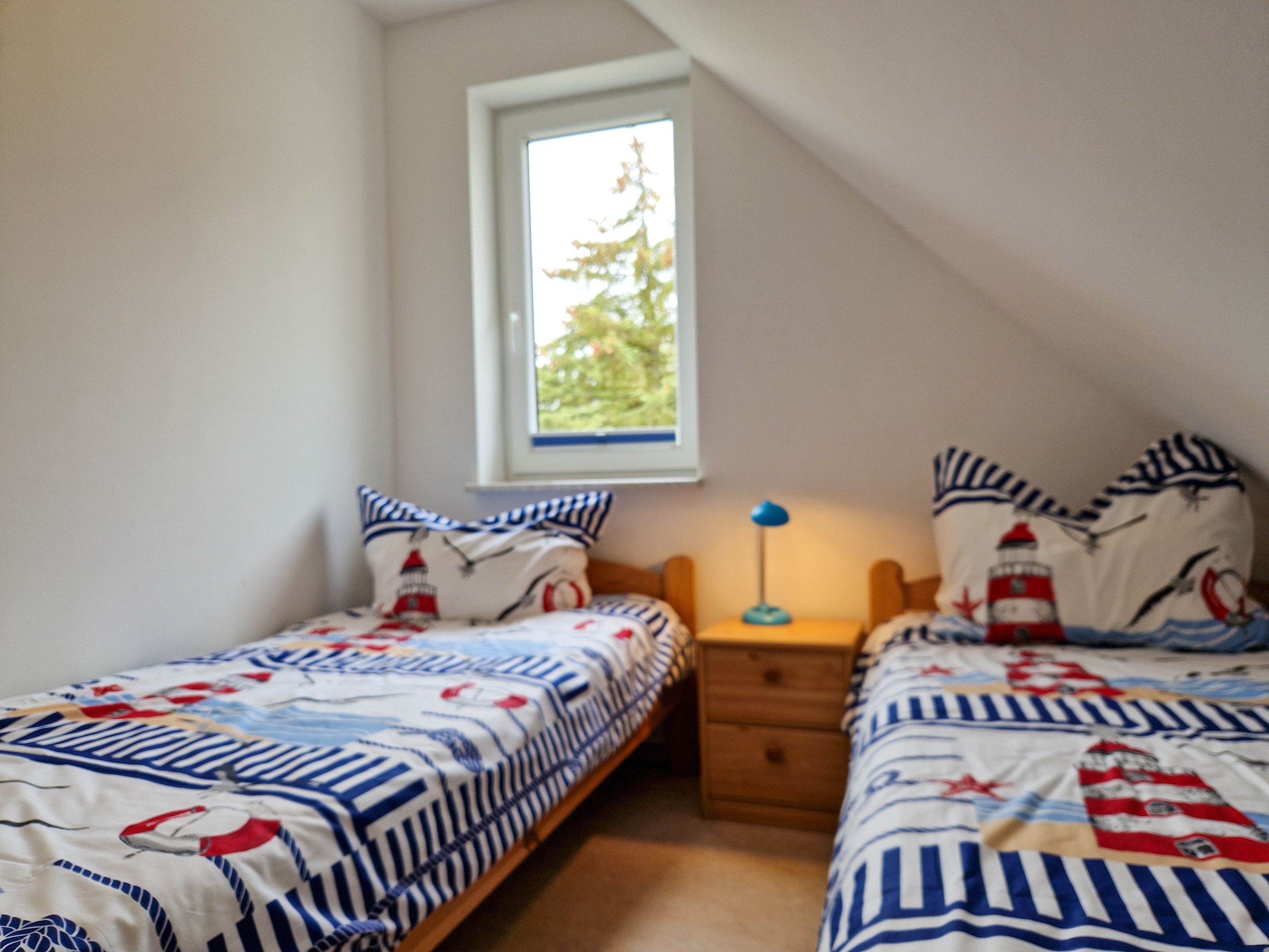 Im Obergeschoss erwarten Sie drei Schlafzimmer (1 Doppelbett, 1 Einzelbett, 2 Einzelbetten) sowie ein geräumiges Wohnzimmer mit Schlafsofa. Das großzügige Badezimmer verfügt über eine Whirlwanne und Dusche; zusätzlich steht Ihnen hier eine Waschmaschine zur Verfügung.