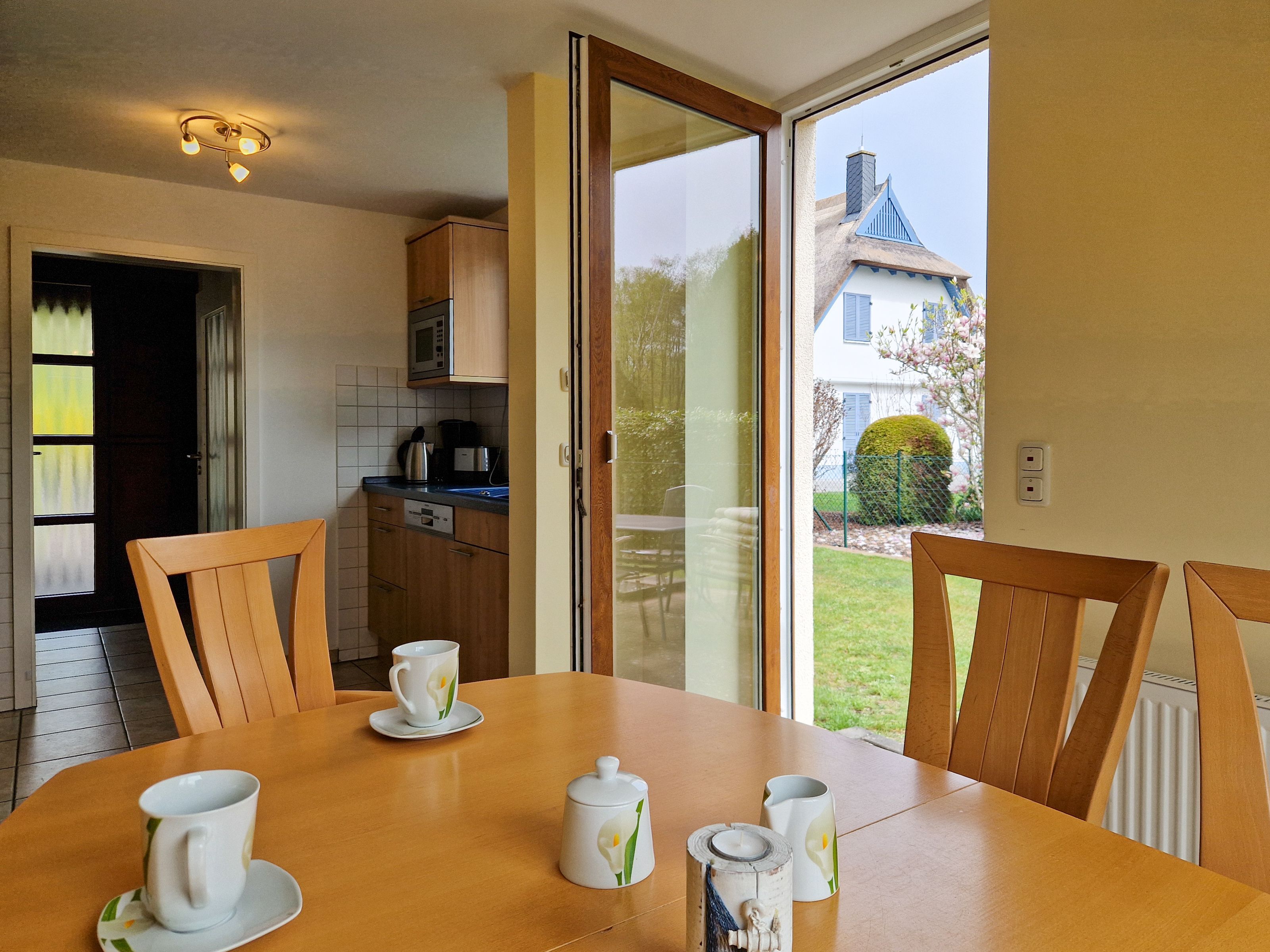 Die Ferienwohnung 1 bietet Platz für maximal 6 Erwachsene und ein Kleinkind bis 3 Jahre. Sie erstreckt sich über zwei Etagen mit einer großzügigen Fläche von 80m². Im Erdgeschoss finden Sie eine gut ausgestattete Küche mit Essbereich, ein Gäste-WC sowie den Zugang zur Sonnenterrasse. Die Küchenzeile ist mit einem Backofen, Gefrierfach, Spülmaschine, Kühlschrank, Mikrowelle und Kaffeemaschine ausgestattet ideal für einen entspannten Familienurlaub.