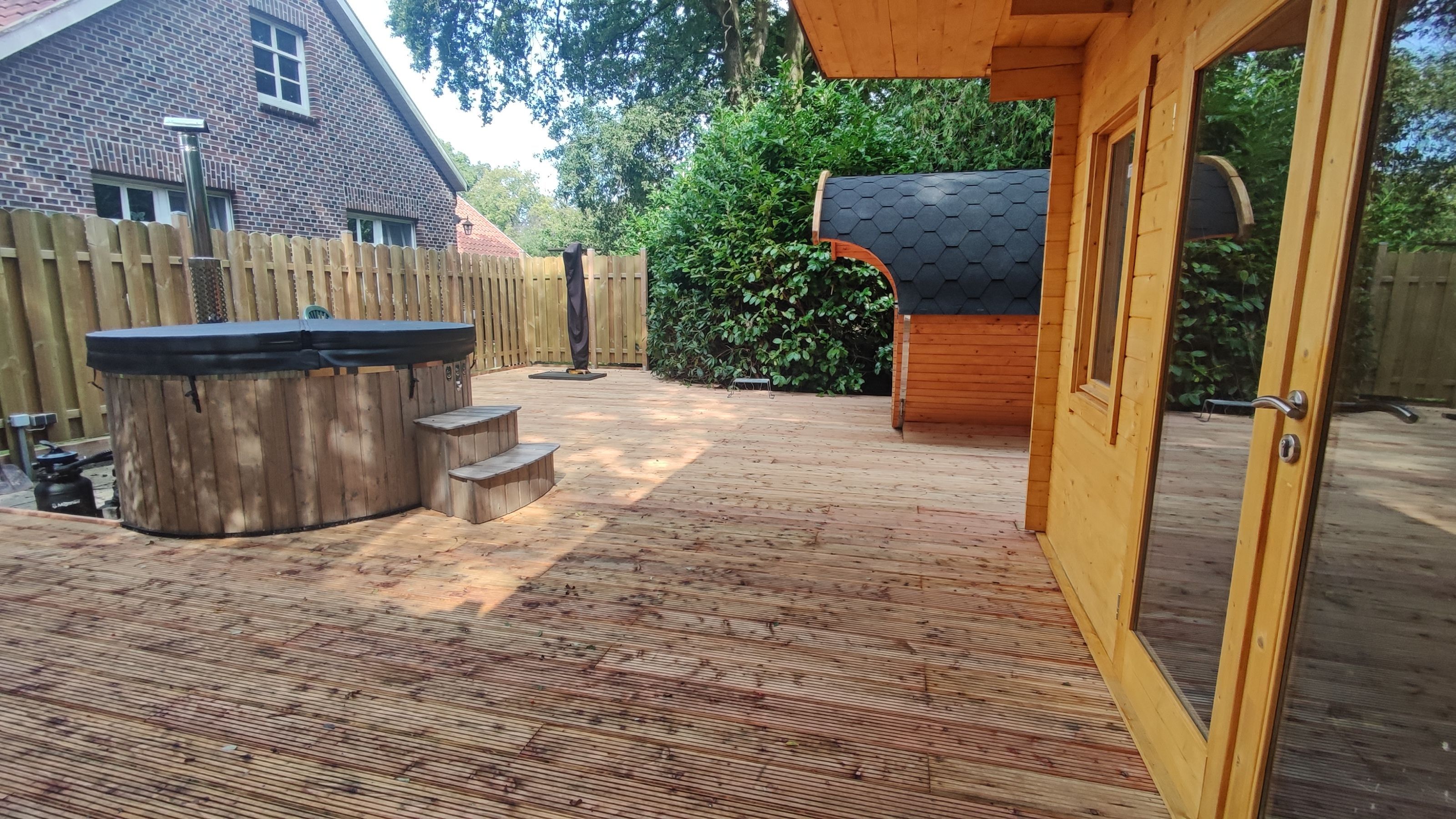 Und im Garten können Sie unsere zwei Terrassen in idyllischer Lage nutzen. Gartenmöbel und -liegen und eine Grillmöglichkeit stehen Ihnen ebenfalls zur Verfügung. Gerne können Sie uns auch auf unseren Bauernhof gegenüber besuchen (mit Kühen, Kälber, Pferden, Hühner, Hunden und Katzen). Die Saunalandschaft ist auf Anfrage und Aufpreis sowie vorheriger Absprach zubuchbar.