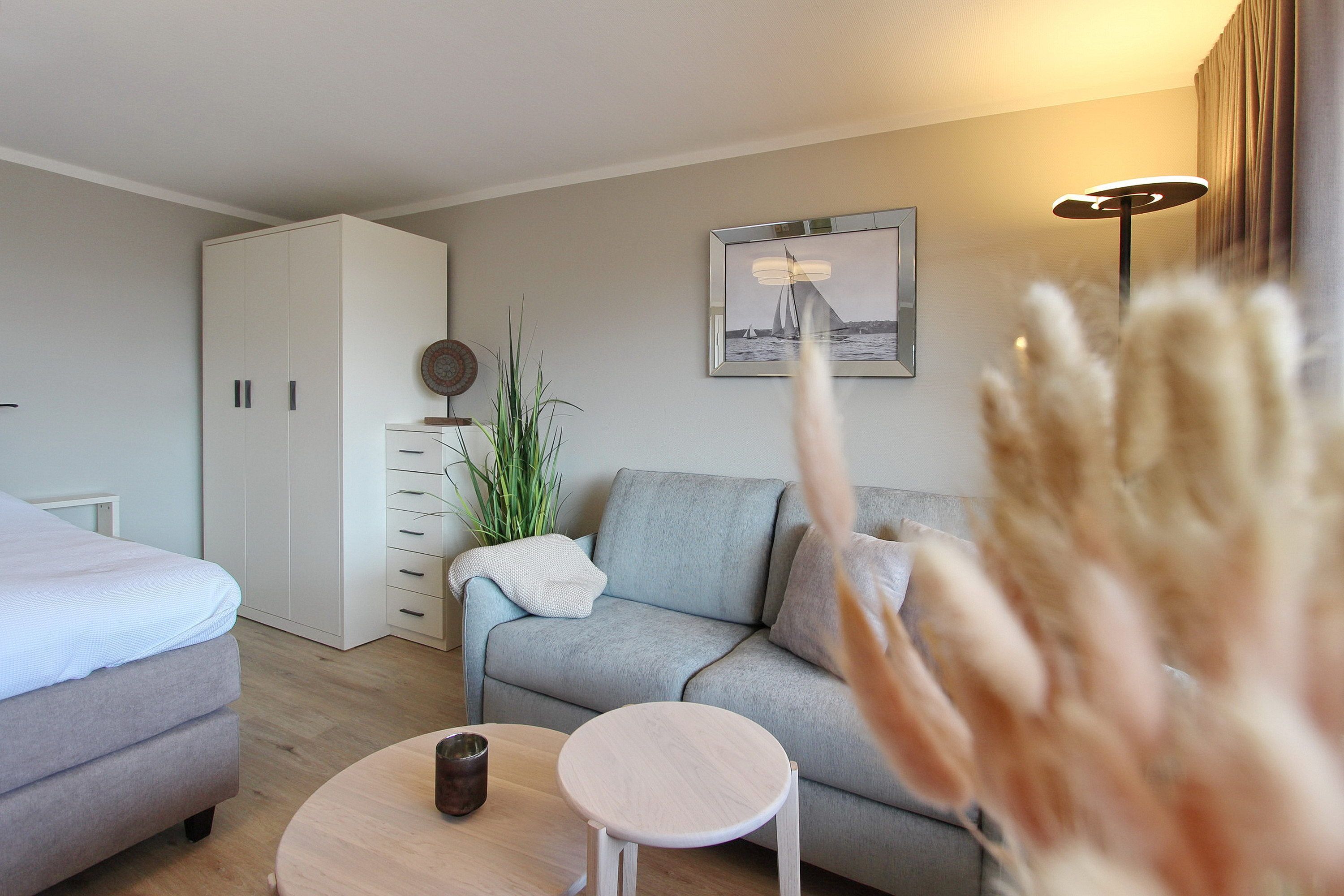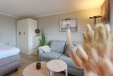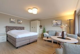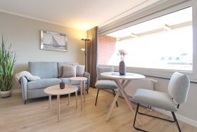 Das zur Vermietung angebotene Einzimmerappartement befindet sich in einer attraktiven Lage im Zentrum von Westerland. Sowohl der Strand als auch die Fußgängerzone sind in wenigen Gehminuten zu erreichen. Das Appartement befindet sich in der dritten Etage und bietet einen großzügigen Balkon mit Balkonmöbeln. Der Wohn- und Schlafbereich ist in einem kombinierten Raum untergebracht und verfügt über ein komfortables Boxspringbett mit einer Breite von 1,60 m für zwei Personen. Zudem befinden sich eine Couch mit passendem Tisch sowie ein Essplatz in dem Raum. In der neuen separaten Küche finden Sie ein Cerankochfeld mit 4 Platten, einen Backofen und eine Geschirrspülmaschine. Das Badezimmer verfügt über eine Dusche. Der Eigentümer stellt den Gästen einen eigenen Internetanschluss zur Verfügung, der kostenfrei genutzt werden kann. Das Appartement ist eine Nichtraucherwohnung und hat eine Größe von 33m². Haustiere sind nicht erlaubt.