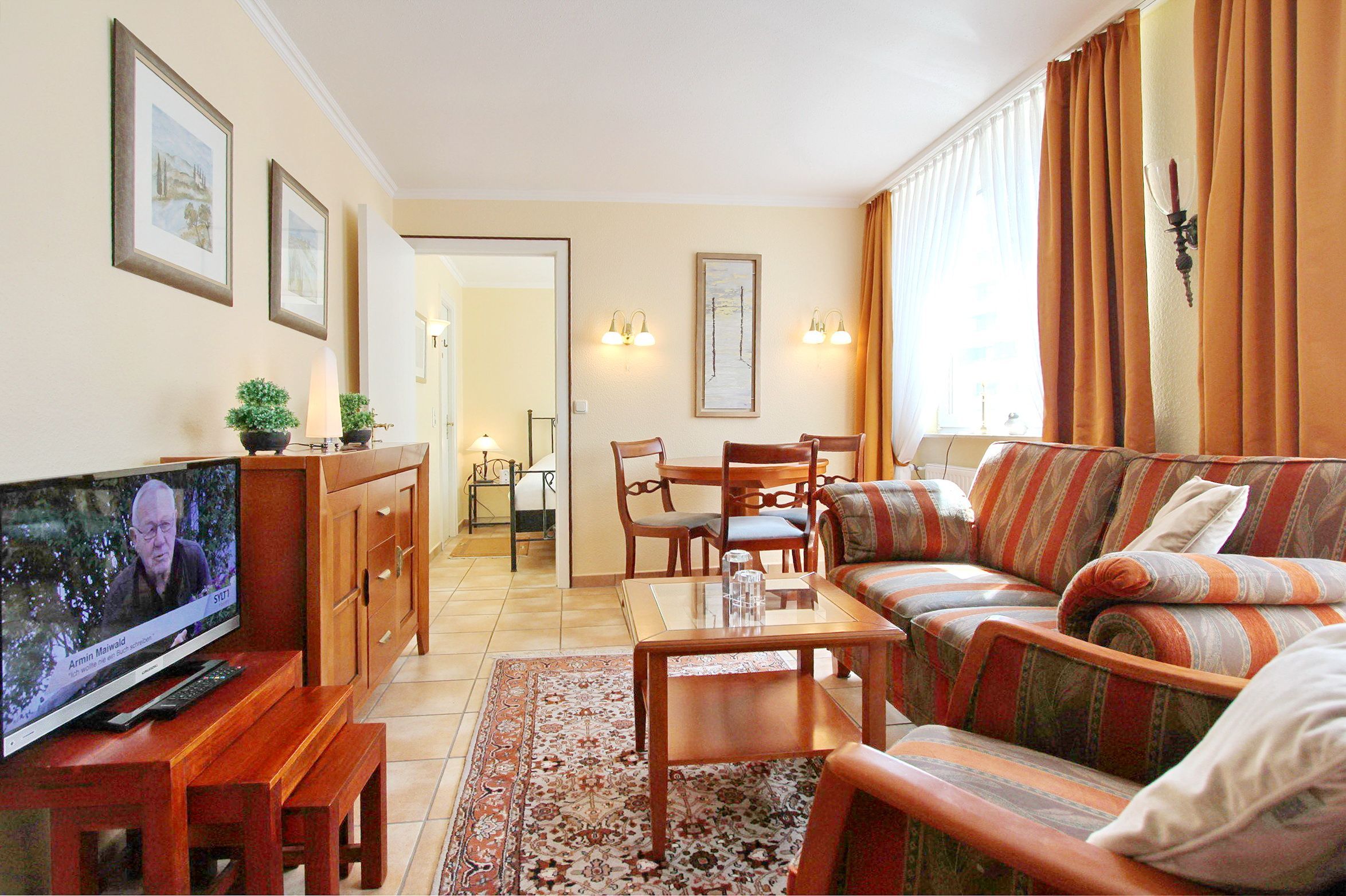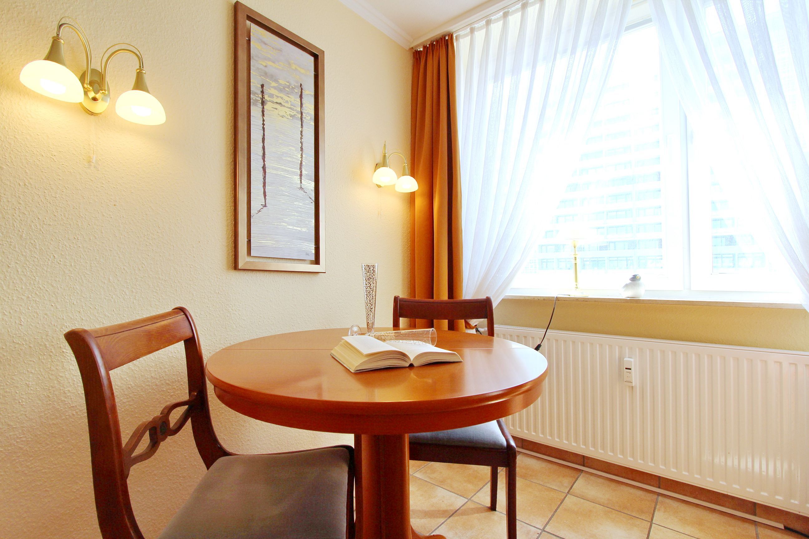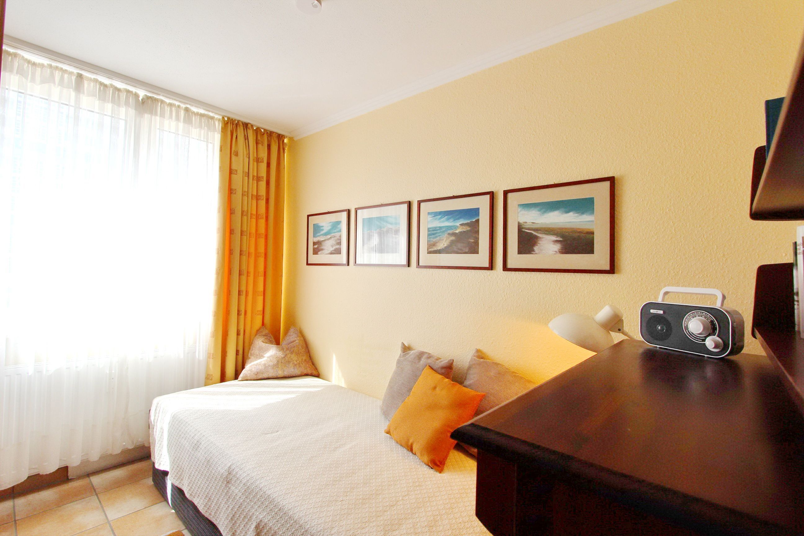 Gepflegte 3-Zimmer-Wohnung im Herzen von Westerland - sie befindet sich in der 3. Etage zur Westseite in einem mehrstöckigen Appartementhaus in unmittelbarer Nähe des Hauptstrandes und des Stadtzentrums. Der Wohnraum ist mit einer Couchgarnitur, einem Lesesessel und einem Essplatz mit 3 Stühlen ausgestattet. Im Schlafzimmer finden Sie ein großzügiges Doppelbett - im 2. Schlafzimmer ist ein Einzelbett, so dass man in dieser Wohnung auch sehr gut getrennt schlafen kann. Dusche/WC, Waschtisch und Handtuchheizkörper. In der separaten Küche finden Sie ein Ceran-Kochfeld mit 4 Platten, ein Backofen und ein Kühlschrank. Ein Hotspot im Haus ermöglicht Ihnen einen kabellosen und kostenfreien Zugang zum Internet (WEG-AD3 - Passwortfrei - ohne Gewähr). Nichtraucherwohnung. Haustiere nicht gestattet. Wohnungsgröße ca. 40 m².