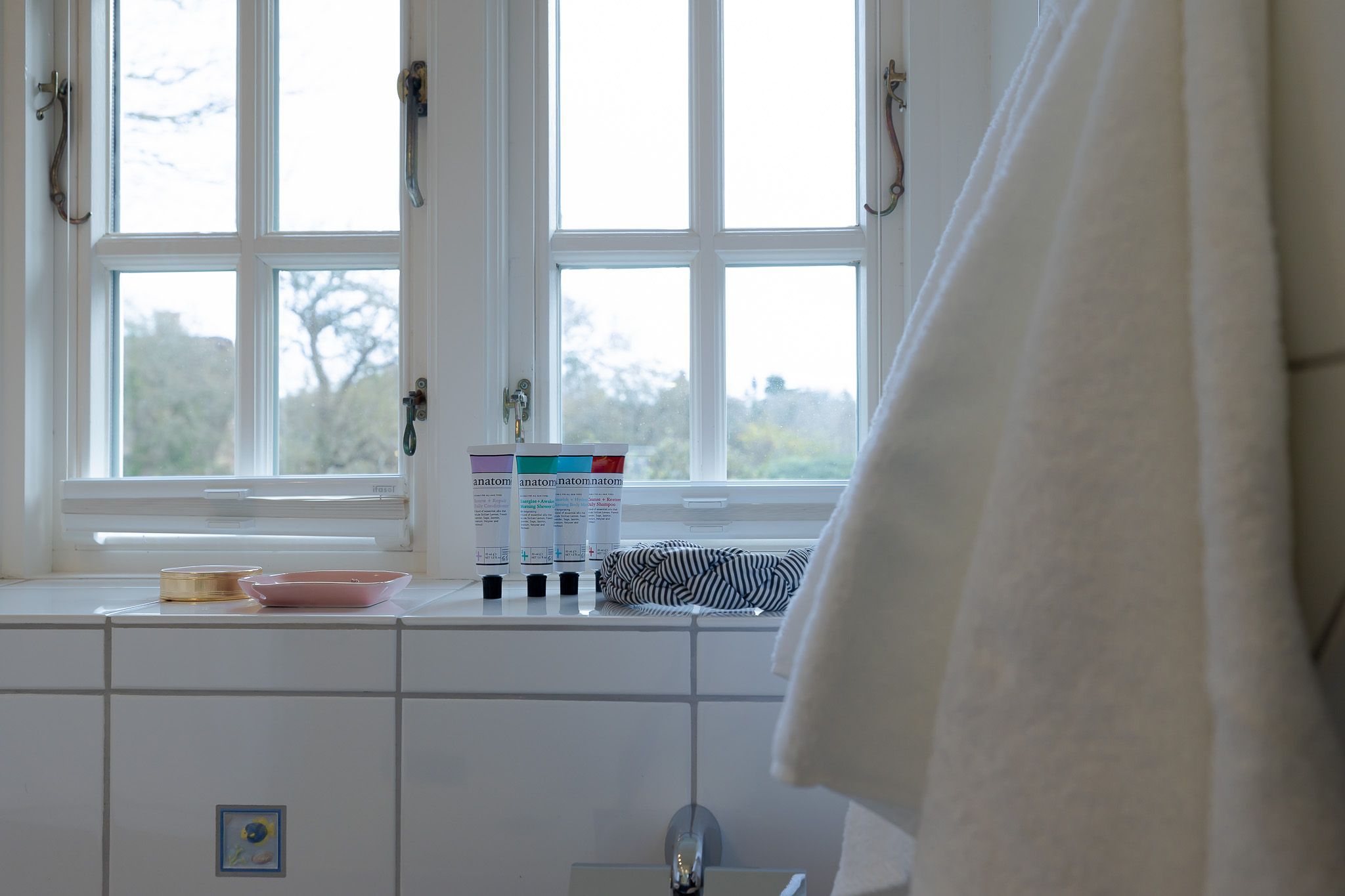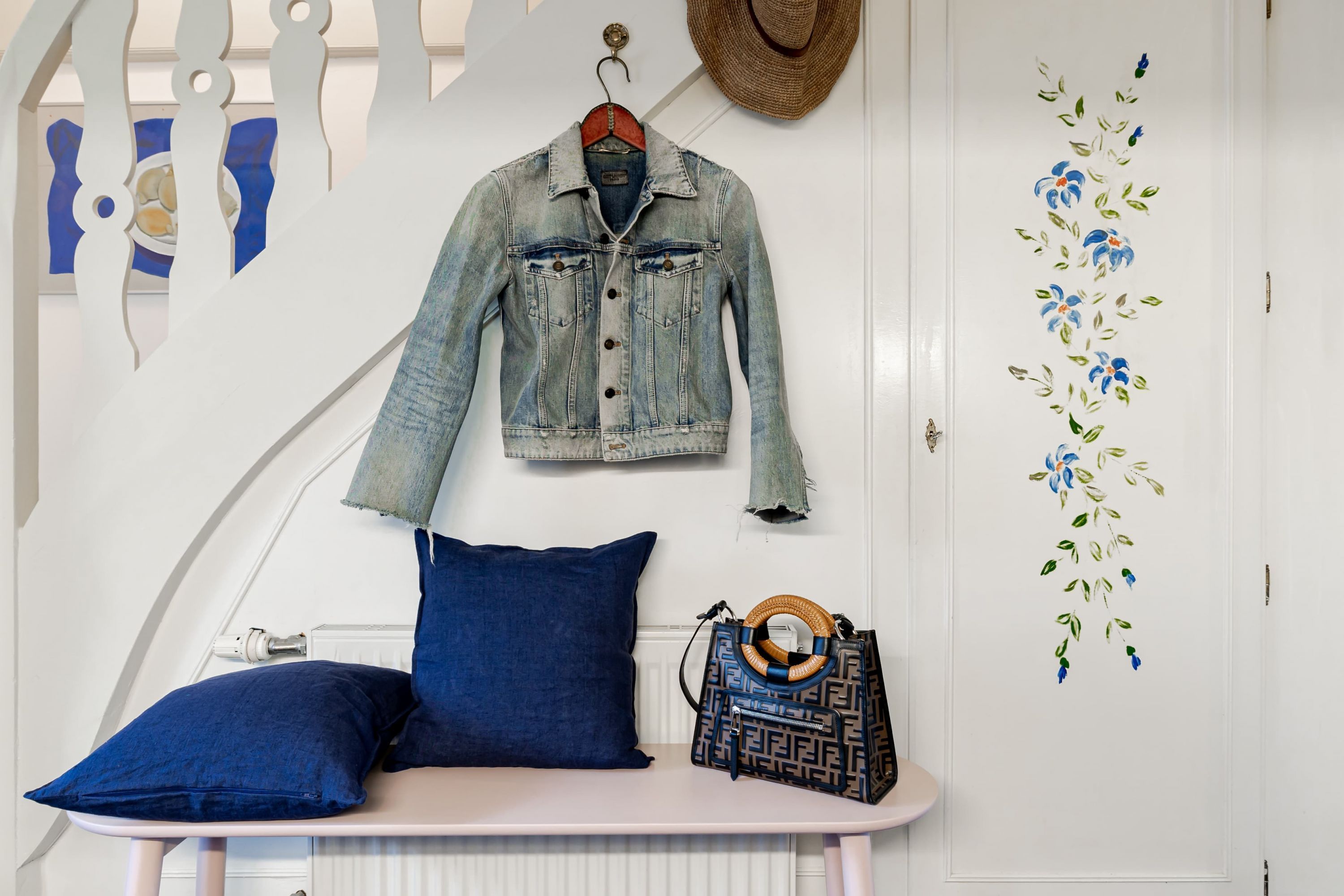 Auf zwei Stockwerken kommt die Mischung des alten Charmes und der modernen Einrichtung gut zur Geltung. Wenn Sie hereinkommen, stehen Sie direkt im Flur, wo sich auch die Küchenzeile befindet. Weiter durch können sie es sich im Wohnzimmer auf dem hellblauen Samtsofa gemütlich machen. Die wunderschöne, alte Junghans Uhr verleiht dem Raum einen ganz besonderen Charme und ist ein echter Hingucker. Auf der oberen Etage finden Sie das Schlafzimmer mit zwei gemütlichen Einzelbetten, direkt gegenüber befindet sich das Badezimmer mit Fenster und einer Dusche.