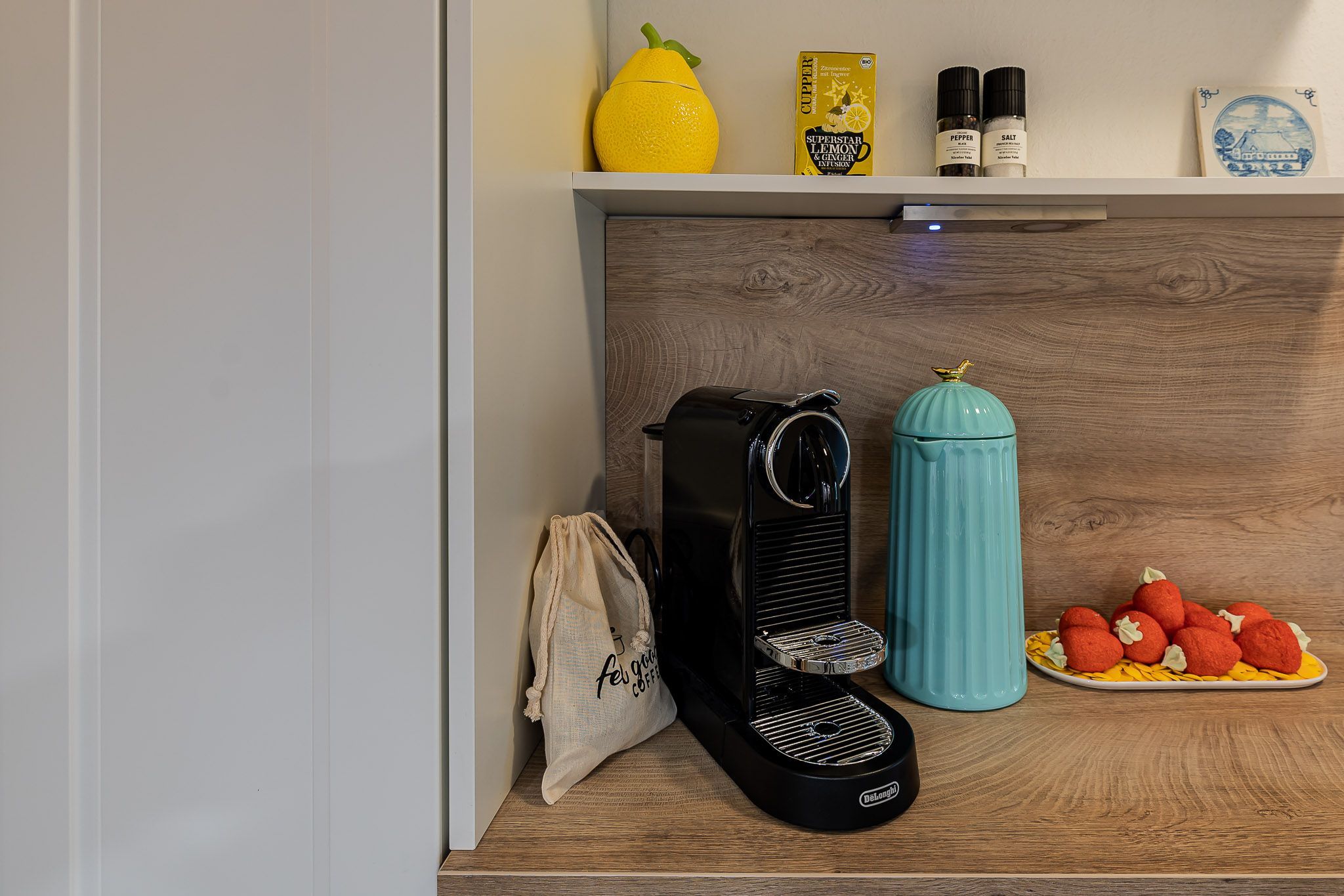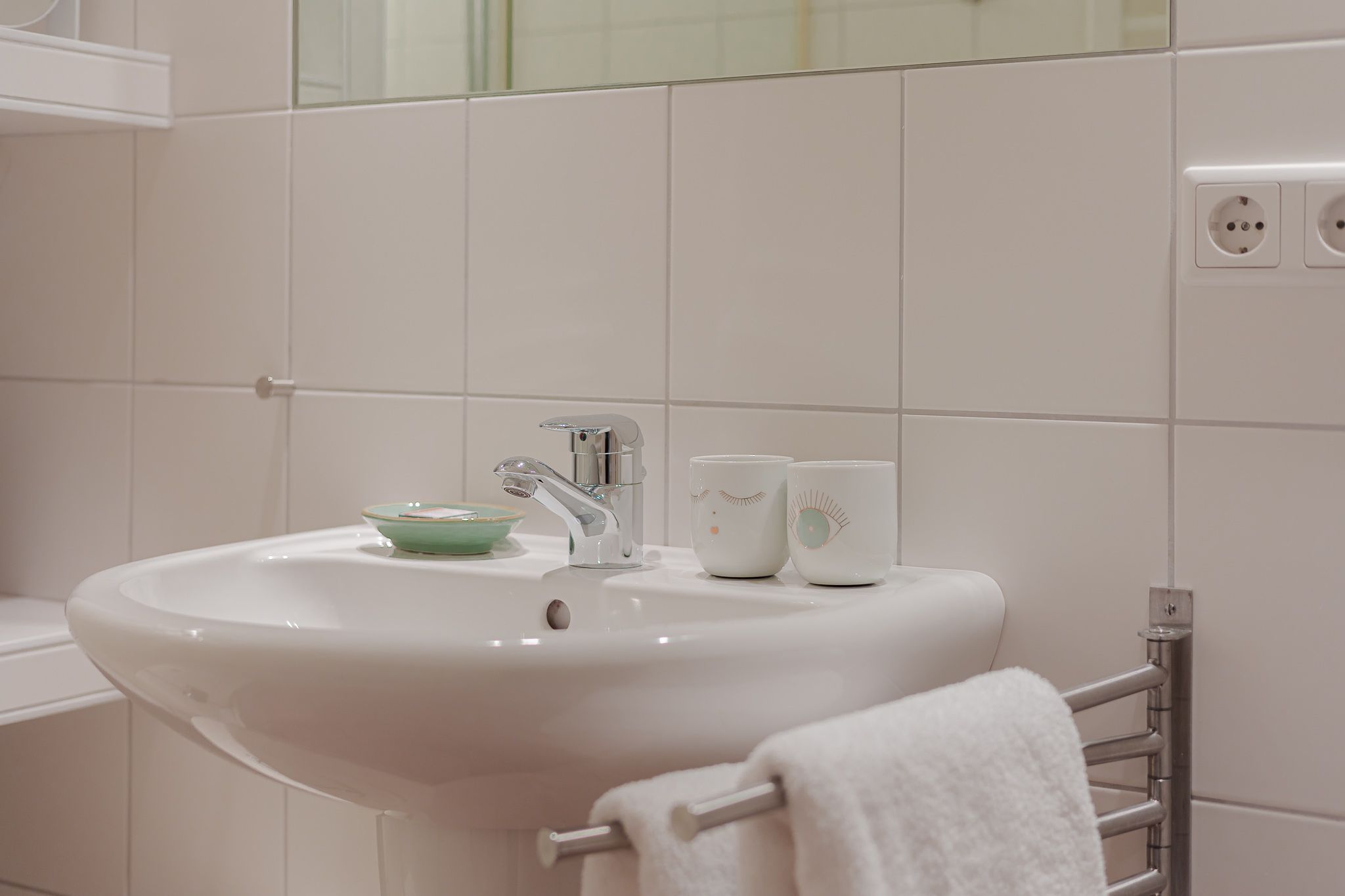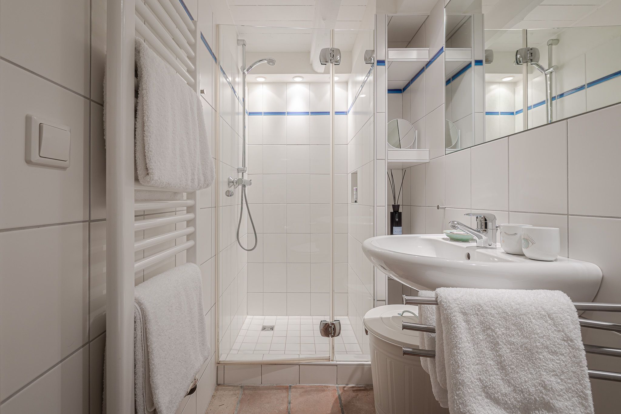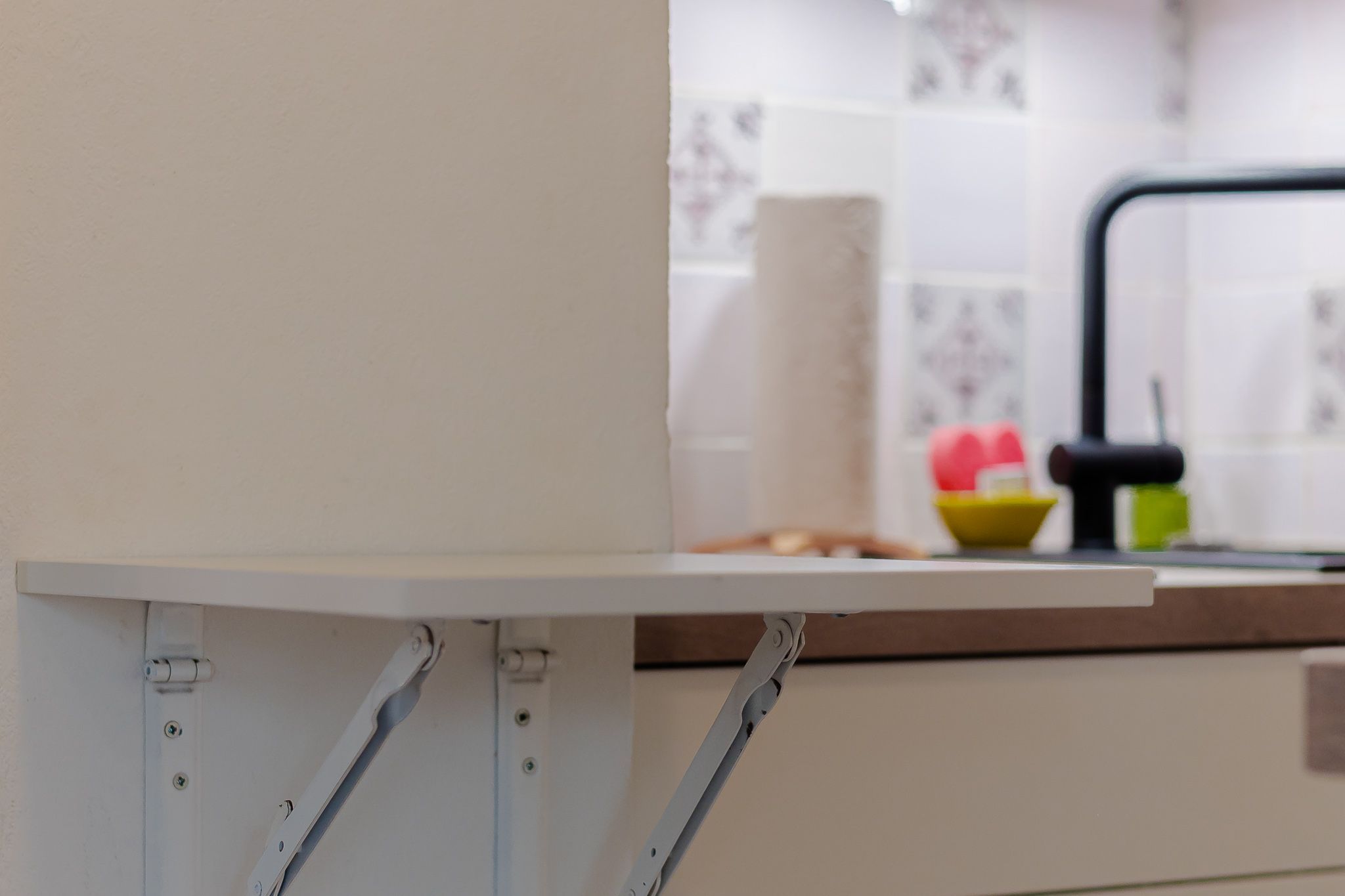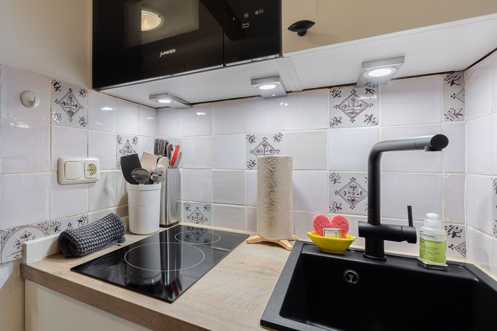 Folgen Sie dem Flur, befindet sich hier eine Pantryküche, ganz nach dem Motto: “Klein aber fein”. So können Sie entspannt mit einem Kaffee in den Tag starten und kleine Mahlzeiten einfach zubereiten. Durch die Küche hindurch erreichen Sie das Badezimmer mit Dusche und WC.