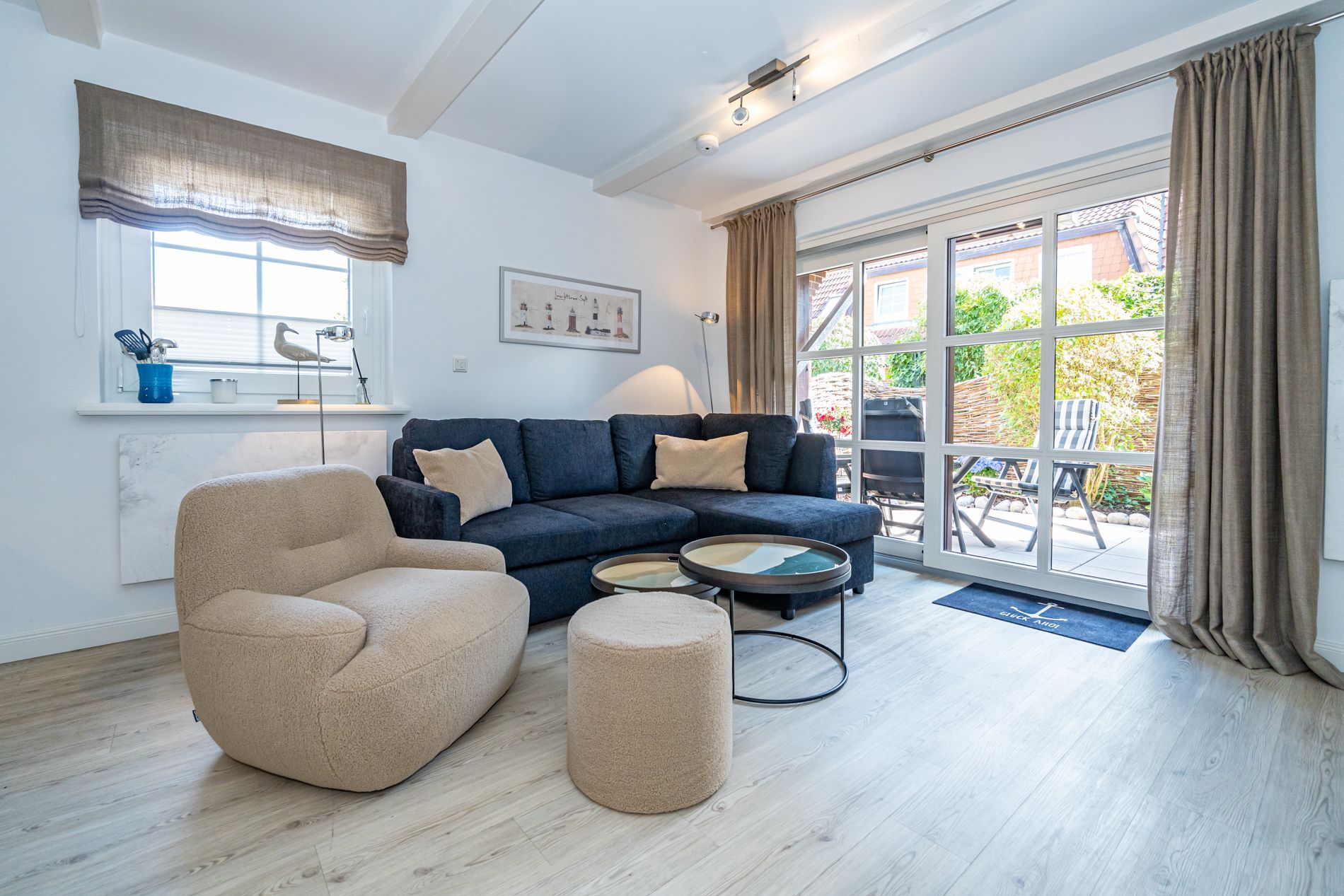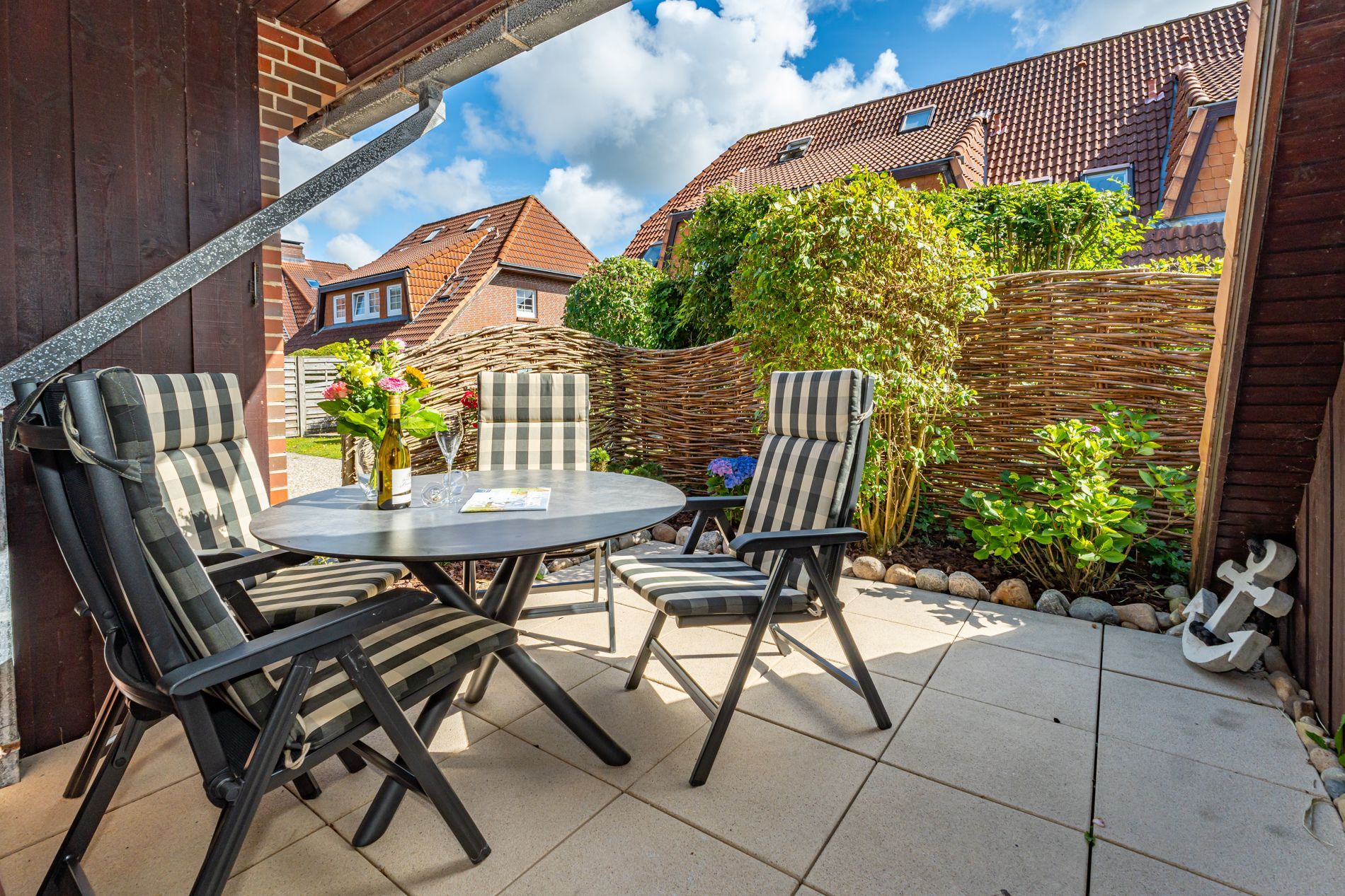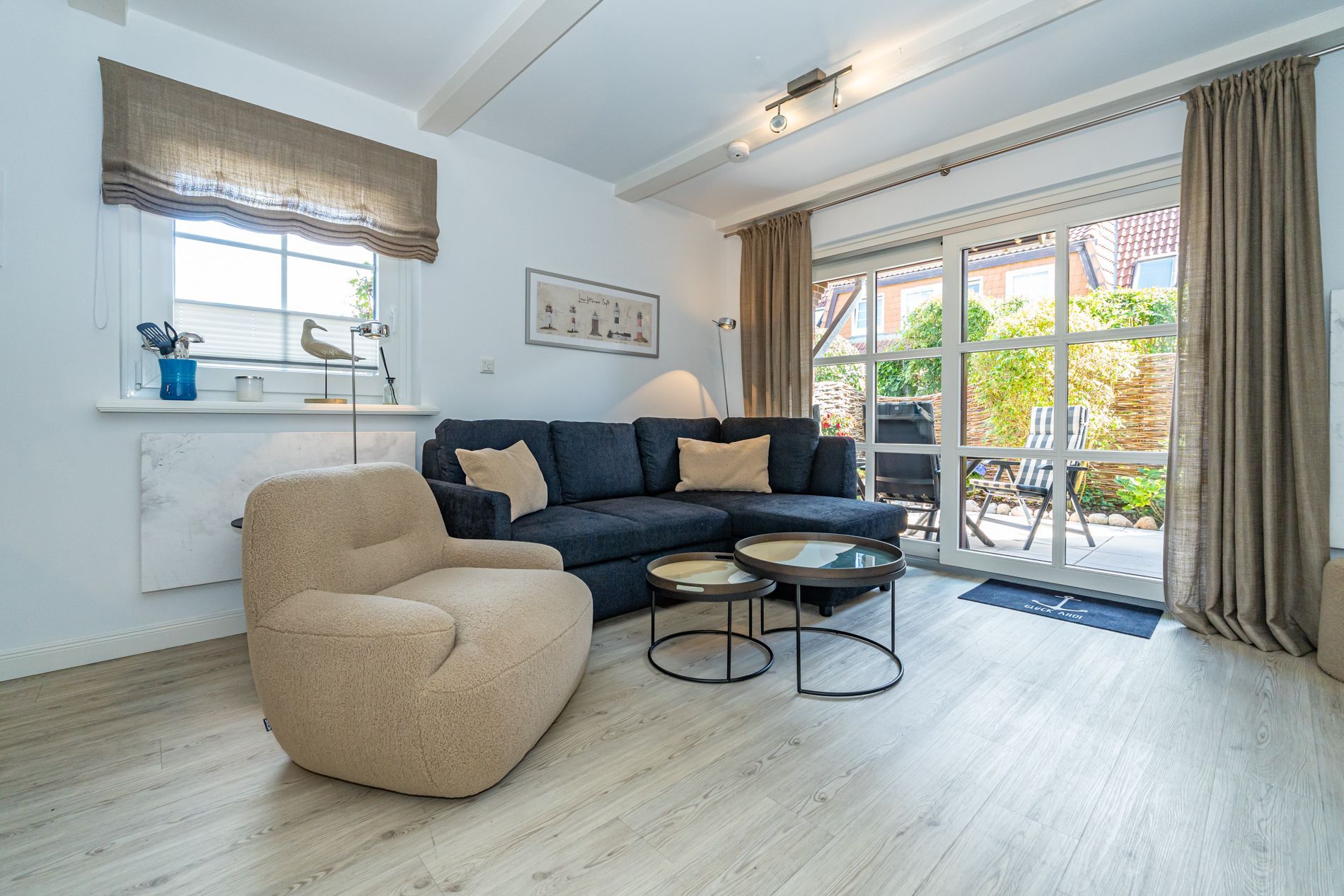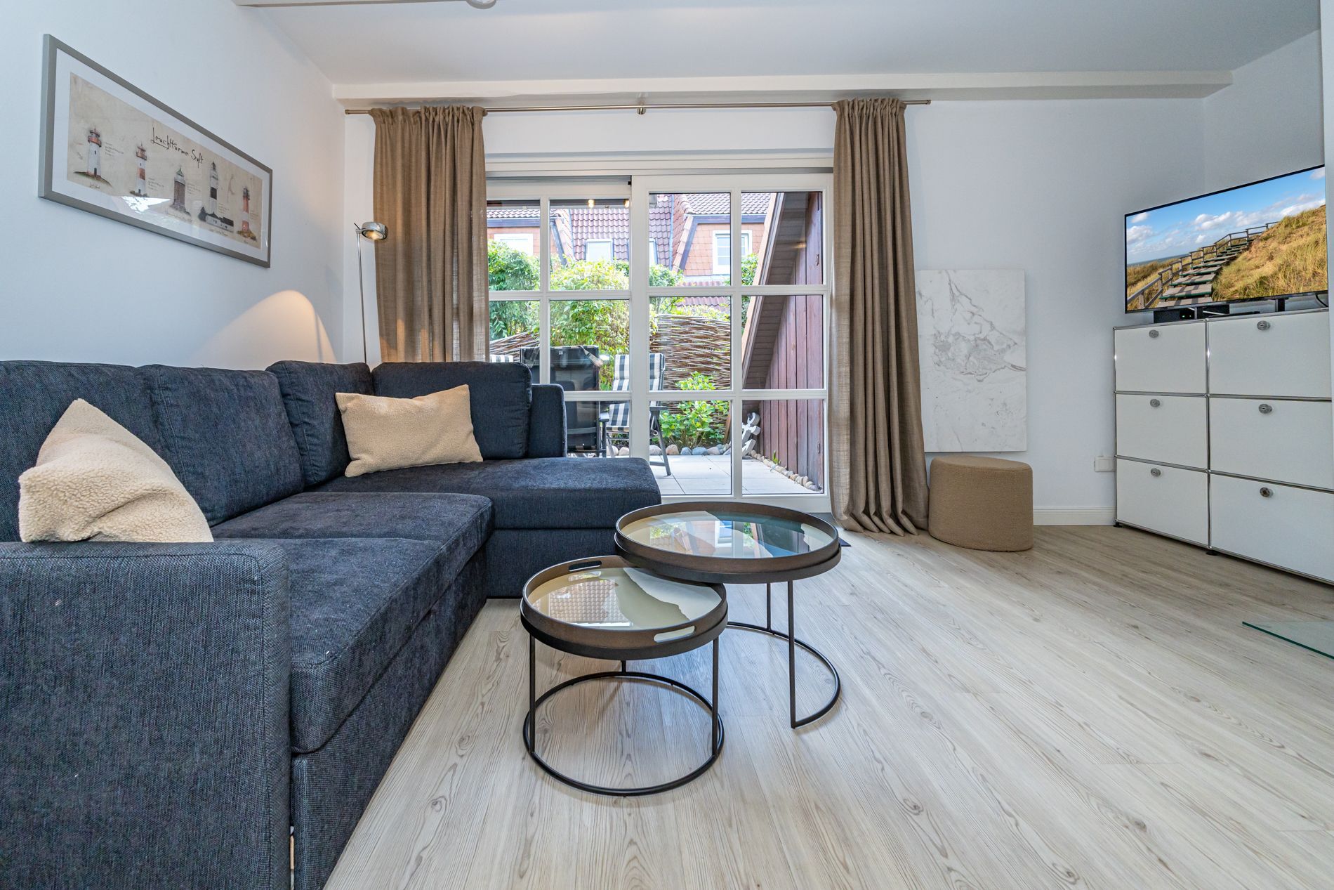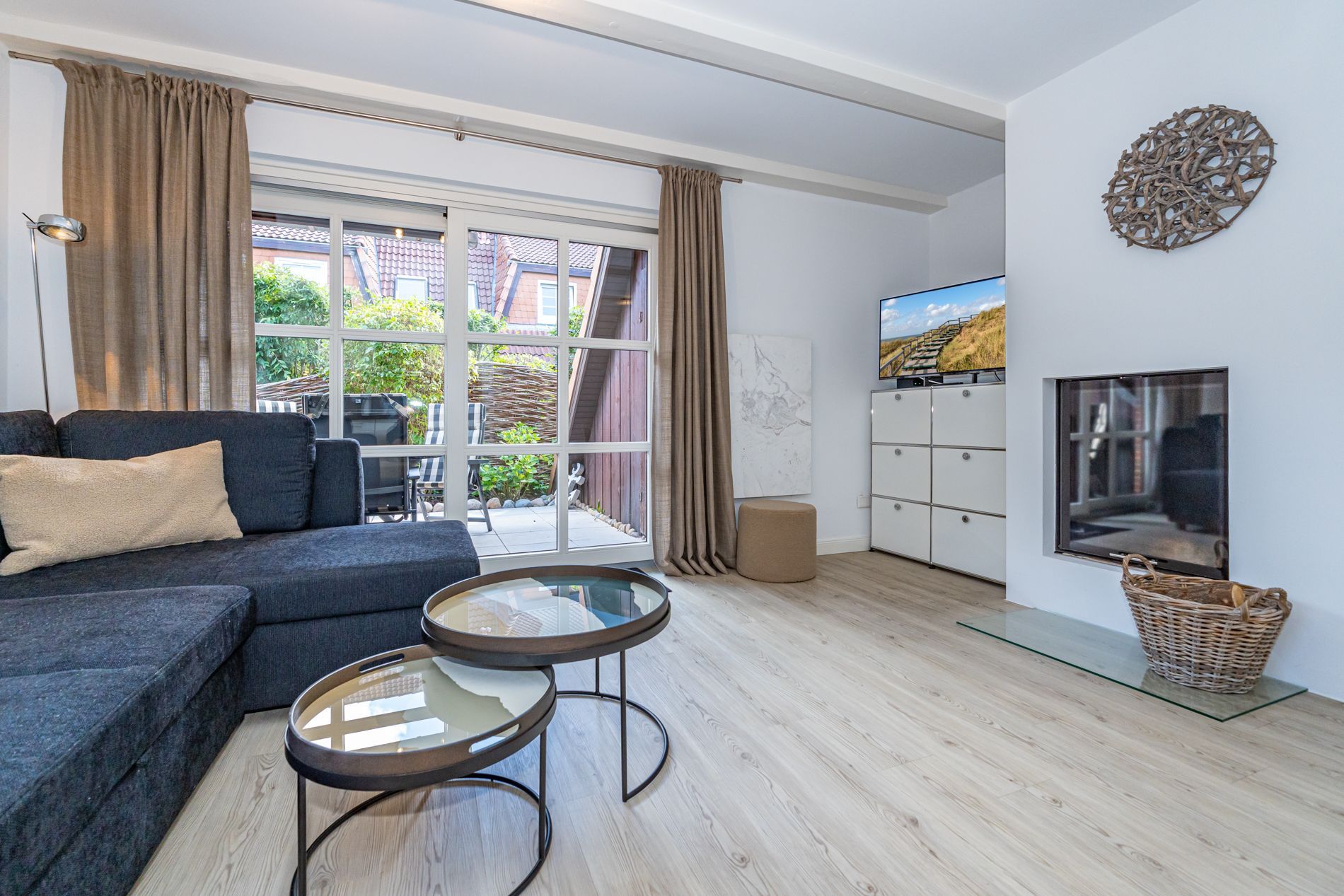 Im Süden Westerlands in ruhiger, strandnaher Lage mit Einzelgarage, geschütztem Fahrradabstellplatz, Südterrasse und Kamin!
