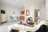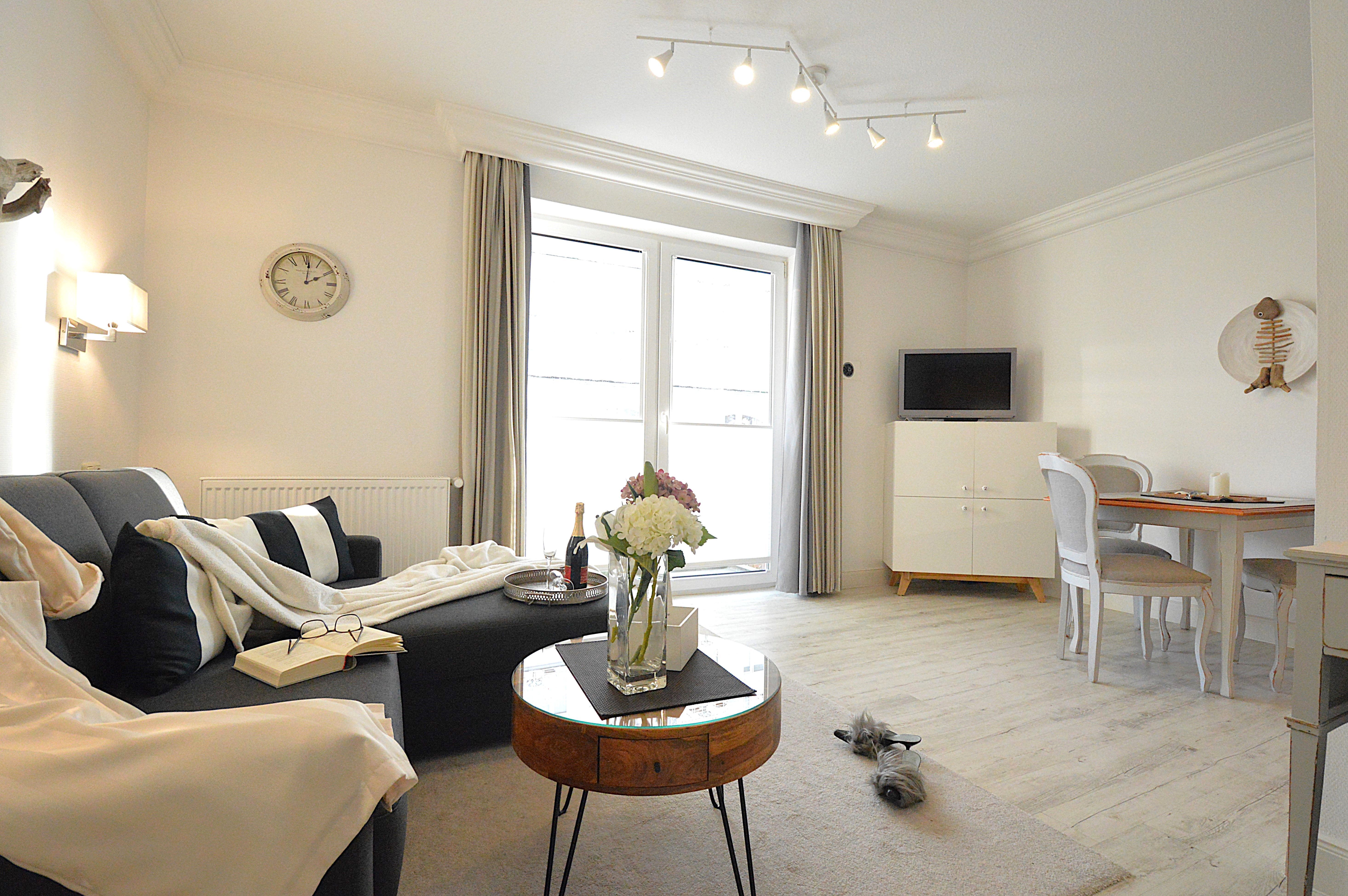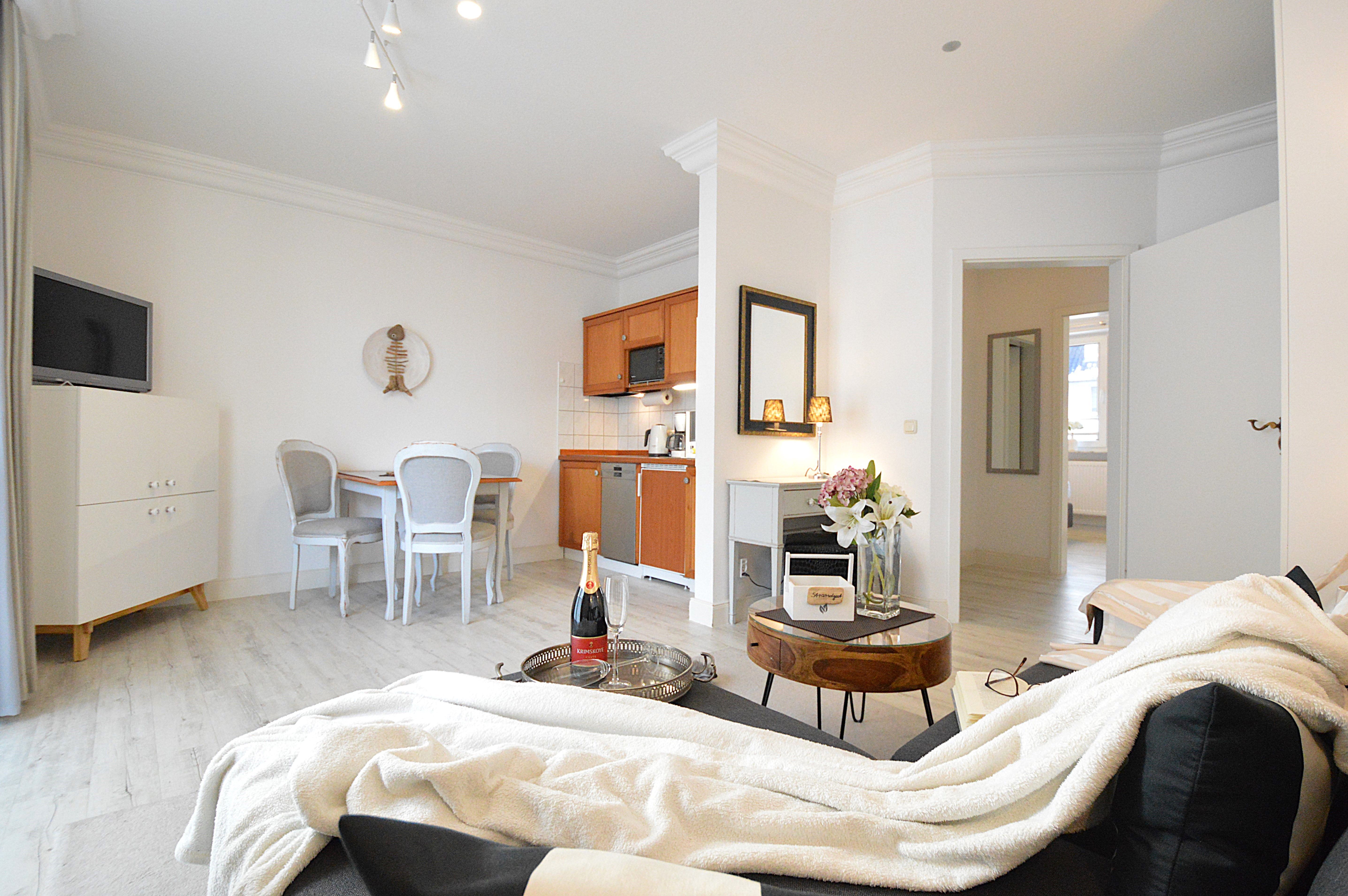 Das Apartment in Hochparterre mit 45m² befindet sich in der Apartment-Villa Steinfurth, welche direkt am Meer liegt und bietet Platz für 2 Personen. Vom Wohnraum aus erreicht man einen möblierten Balkon in Südostausrichtung. Der helle, große Wohnbereich mit Küchenzeile, Essplatz und TV ist gemütlich und modern möbliert. Die Küchenzeile ist ausgestattet mit 4-Platten-Cerankochfeld, Mikrowelle, Geschirrspüler, Kühlschrank, Kaffeemaschine, Wasserkocher und Toaster. Das Schlafzimmer verfügt über ein Doppellbett mit einer Liegefläche von 180 x 200 cm. Ein Duschbad mit WC und Haartrockner ist ebenfalls vorhanden.