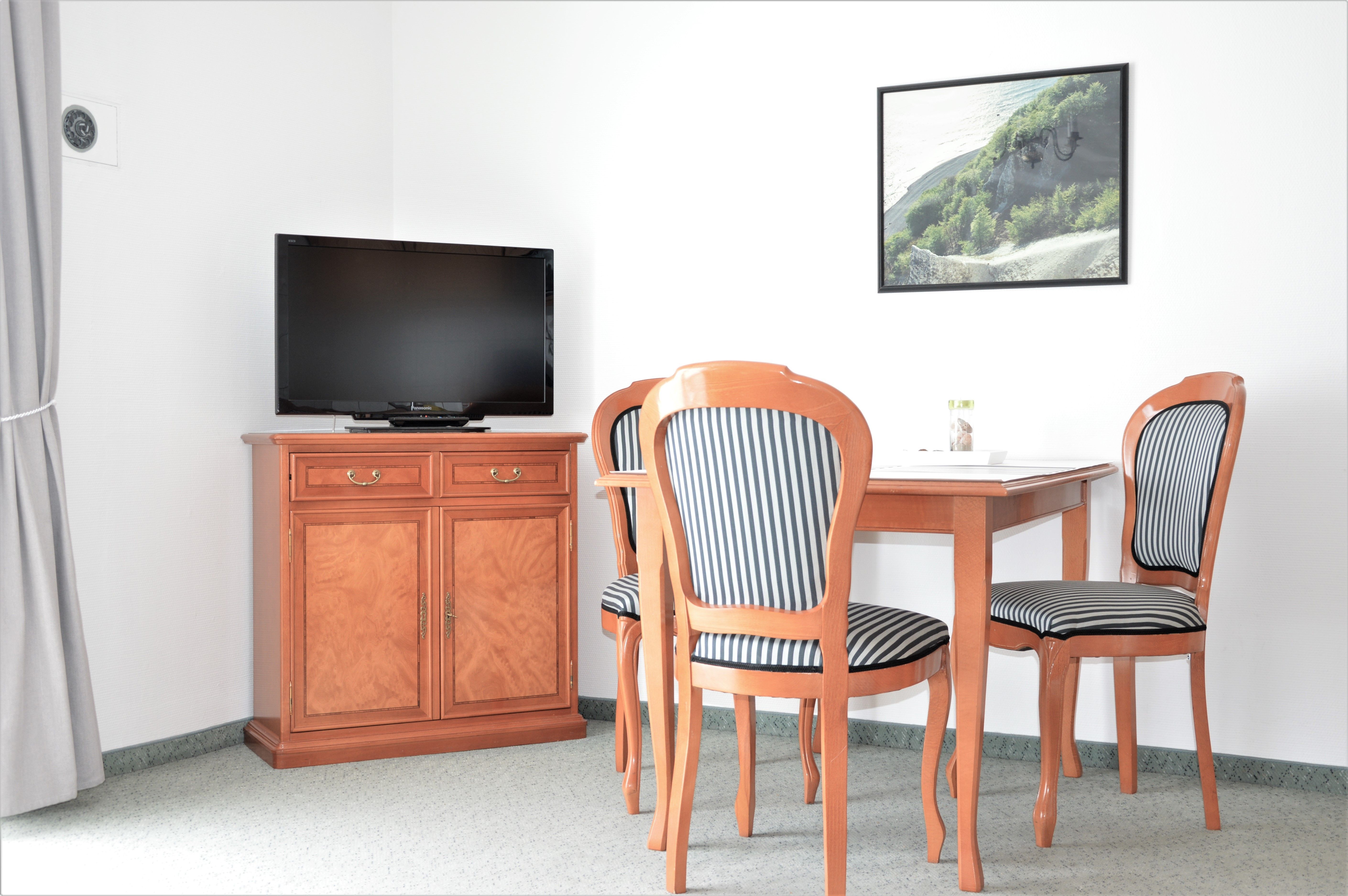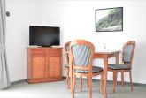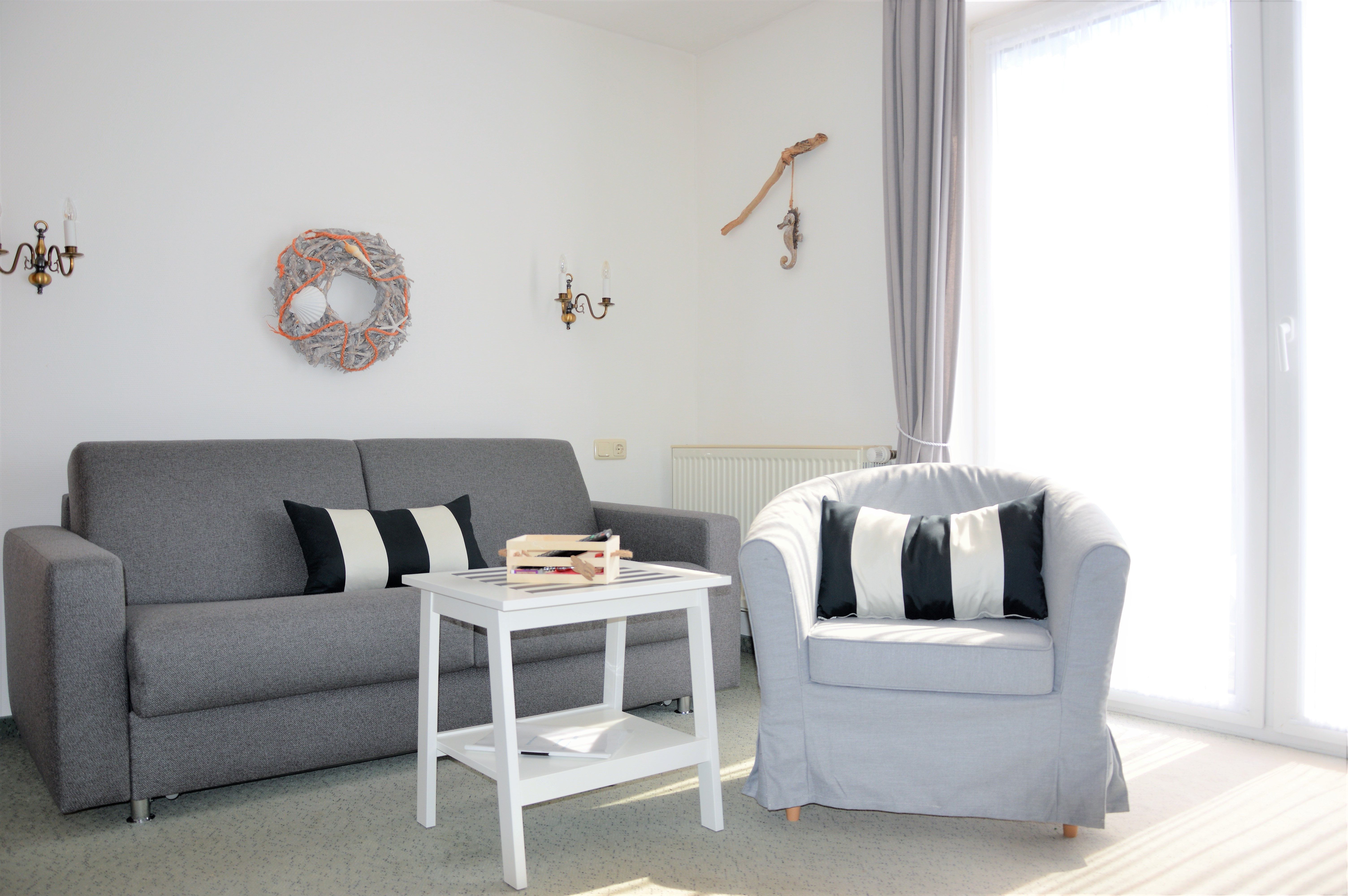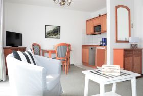 Das Apartment im 2. Obergeschoss mit 45m² befindet sich in der Apartment-Villa Steinfurth, welche direkt am Meer liegt und bietet Platz für 2 Personen. Vom Wohnraum aus erreicht man einen möblierten Balkon in Südostausrichtung, von hier aus kann man das Meer sehen. Der helle, große Wohnbereich mit Küchenzeile, Essplatz und TV ist gemütlich und klassisch möbliert. Die Küchenzeile ist ausgestattet mit 4-Platten-Cerankochfeld, Mikrowelle, Geschirrspüler, Kühlschrank, Kaffeemaschine, Wasserkocher und Toaster. Das Schlafzimmer verfügt über ein Doppellbett mit einer Liegefläche von 180 x 200 cm. Ein Duschbad mit WC und Haartrockner ist ebenfalls vorhanden.