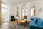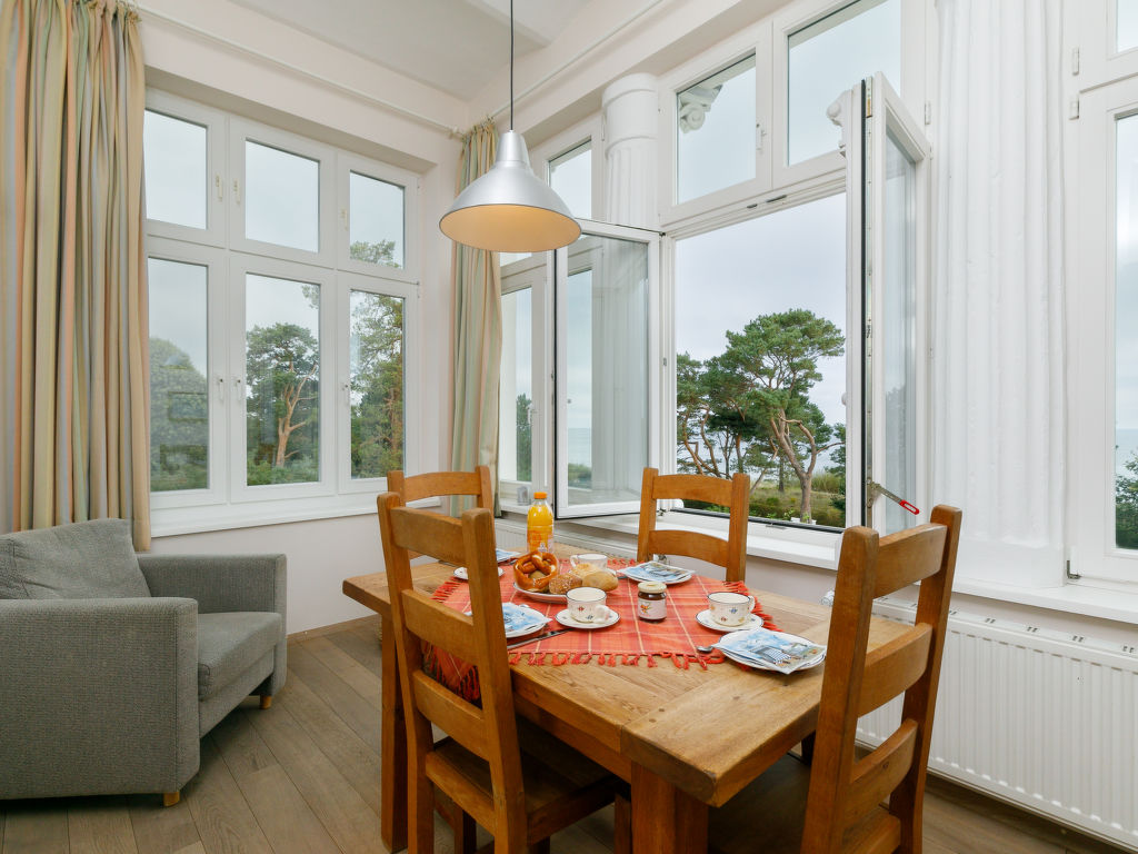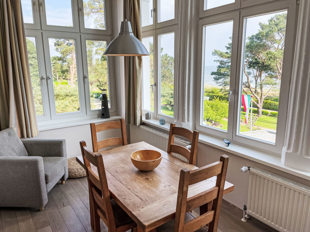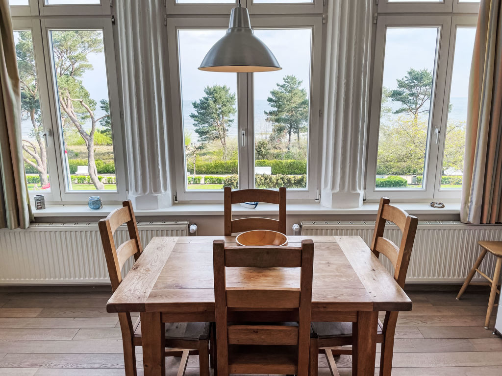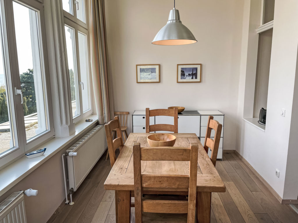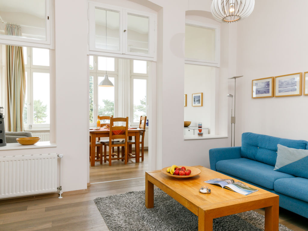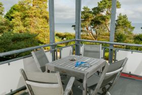 App.6 Zinnowitzer Hof, 2-Zimmer-Wohnung 60 m2 im 2. Stock. Schön und gemütlich eingerichtet: Wohn-/Esszimmer mit 1 Doppeldiwanbett und Kabel-TV (Flachbildschirm). Ausgang zum Balkon. 1 Zimmer mit 1 Doppelbett. Kochnische (4 Kochplatten, Backofen, Toaster, Wasserkocher, elektrische Kaffeemaschine). Bad/WC. Balkon. Balkonmöbel. Schöne Sicht auf das Meer. Parkplatz (1 Auto). Bitte beachten: Nichtraucher-Unterkunft. Rauchmelder.