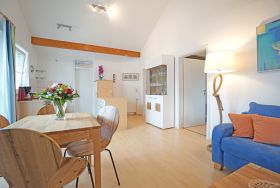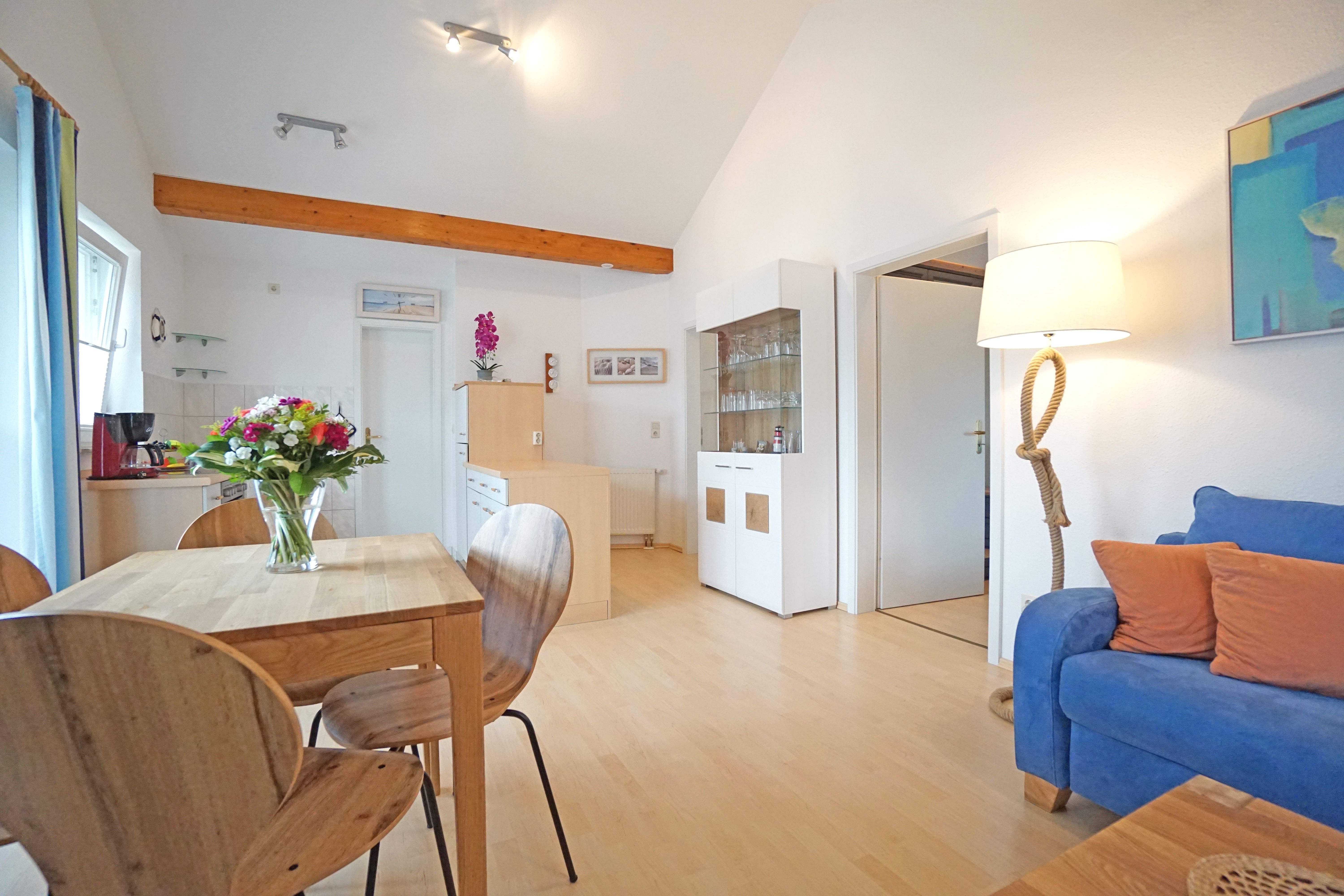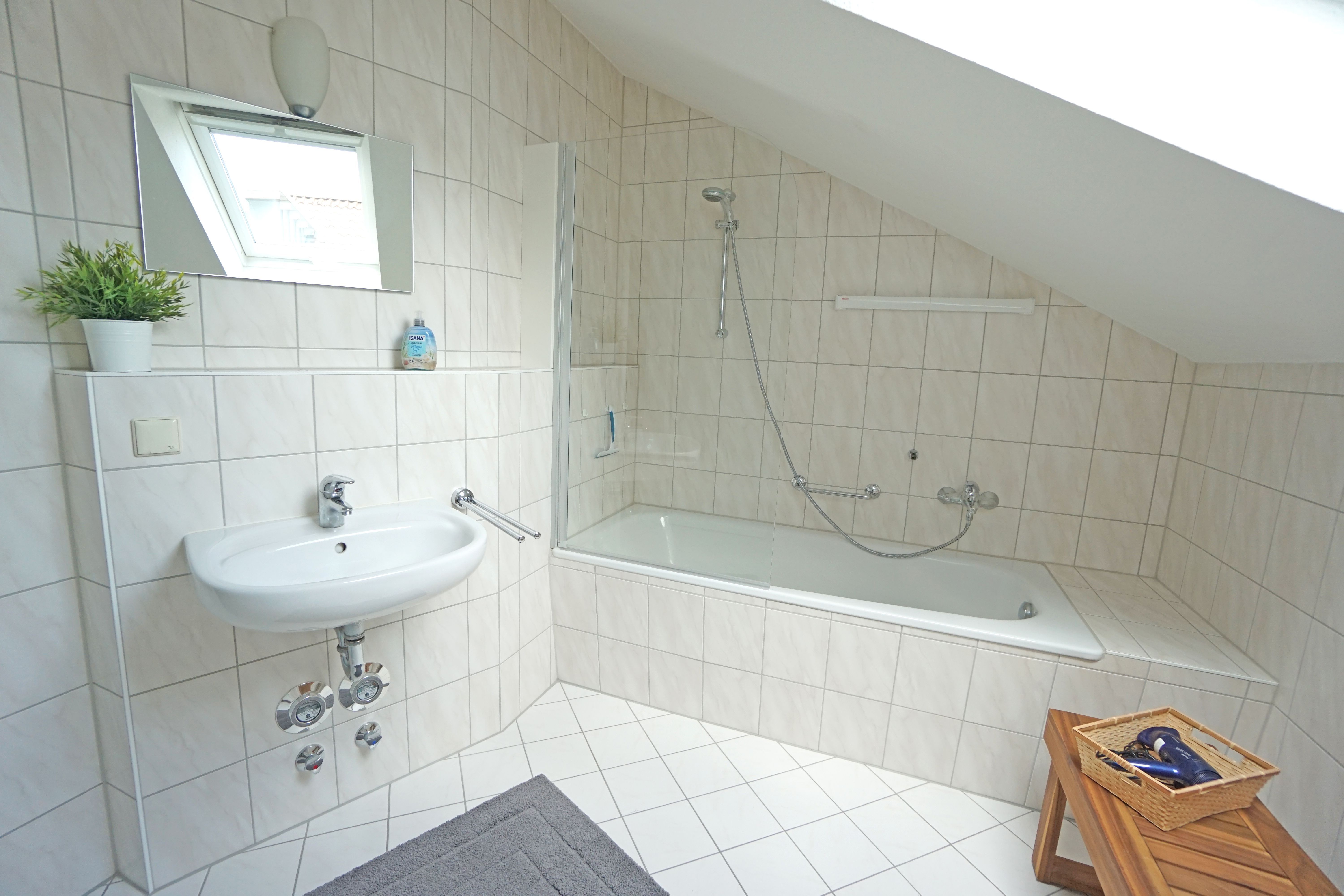 Die gemütliche Zwei-Zimmer-Ferienwohnung Nr. 11 für 2-4 Personen befindet sich im 2. Obergeschoss der Villa Madeleine. Der großzügige Wohnraum mit Küchenzeile ist mit einem Esstisch für 4 Personen sowie einer Schlafcouch und Flachbildfernseher ausgestattet. Vom Wohnraum gelangt man auf den Balkon mit nordöstlicher Ausrichtung. Die Küchenzeile ist gut ausgestattet und verfügt über einen Backofen mit Ceran-Kochfeld, einen Geschirrspüler sowie Kühlschrank, Kaffeemaschine, Toaster, etc.. Das Schlafzimmer ist mit einem Doppelbett, einem zweiten Flachbildfernseher und ausreichend Stauraum im Spiegelschrank ausgestattet. Das großzügige Badezimmer verfügt über eine Badewanne mit einer Duschabtrennung aus Glas. Ein Pkw-Stellplatz auf dem Grundstück ist der Wohnung zugeordnet. Für Fahrräder und/oder den Kinderwagen steht ein Fahrradschuppen zur Verfügung.