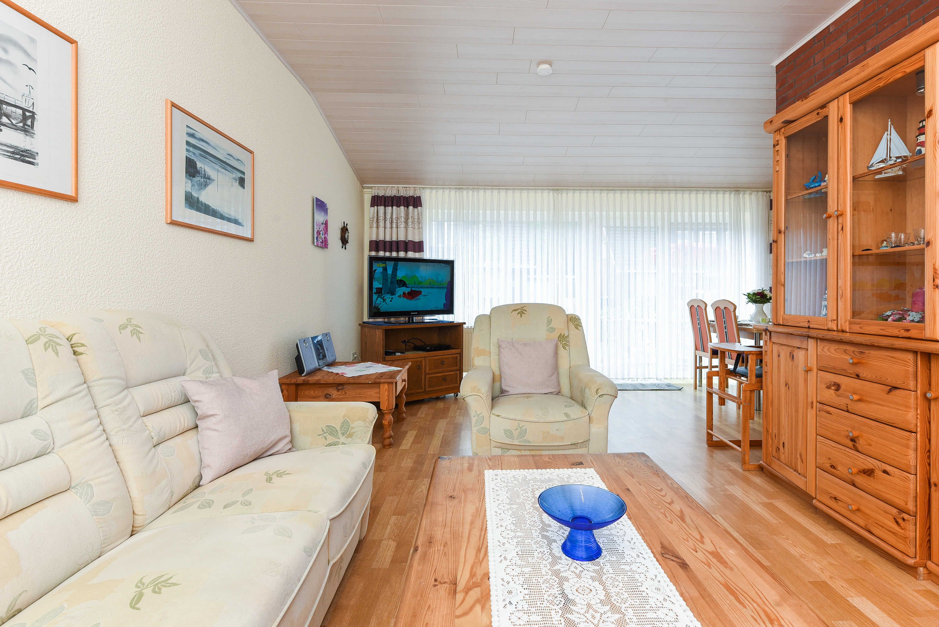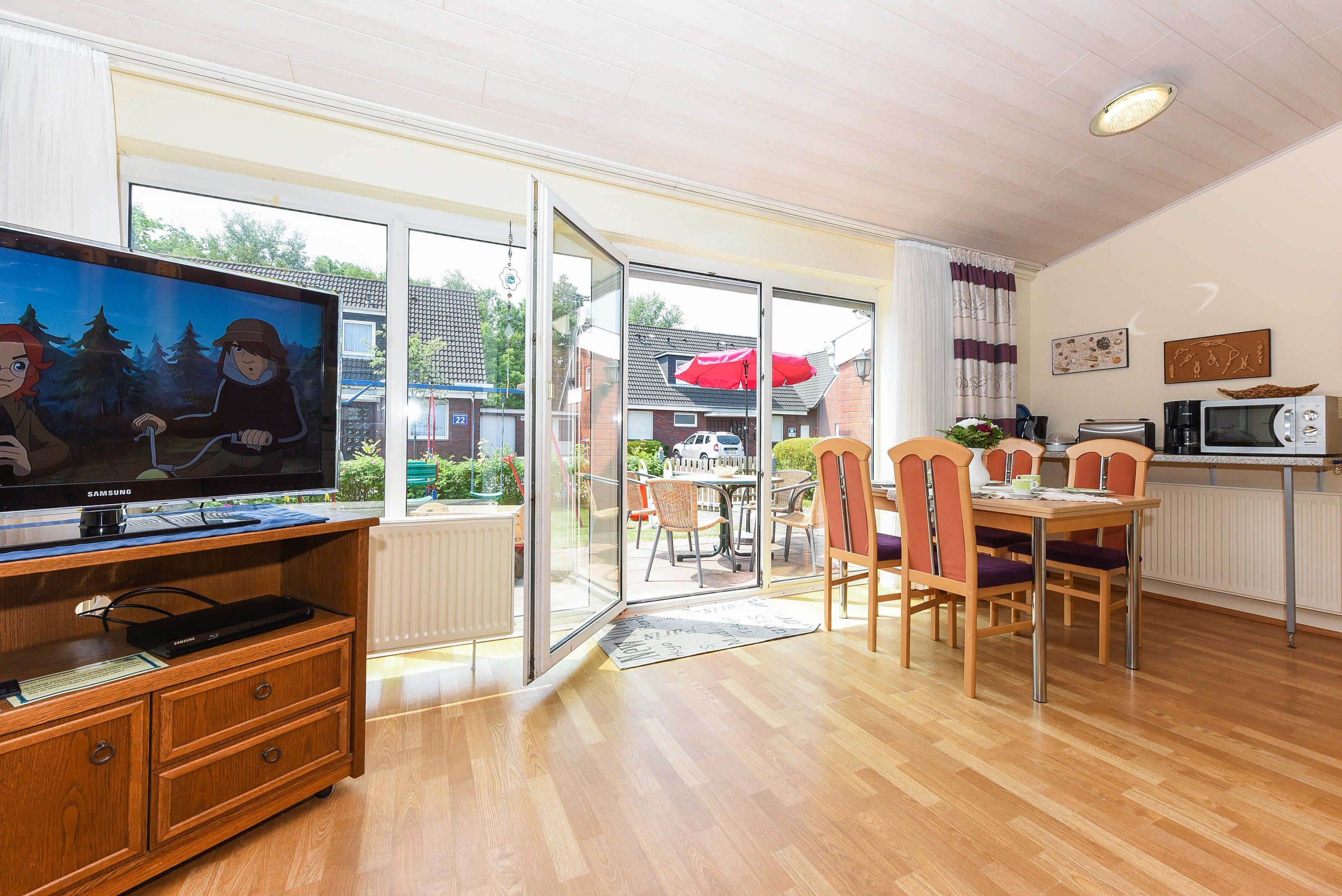 Größe ca. 55 Quadratmeter, Wohnzimmer, Küche, Schlafzimmer, Kinderzimmer, Badezimmer mit Dusche, Waschtisch und WC, Erdgeschoss, Terrasse, optimal für 2 bis 4 Personen und zusätzlich ein Kleinkind.