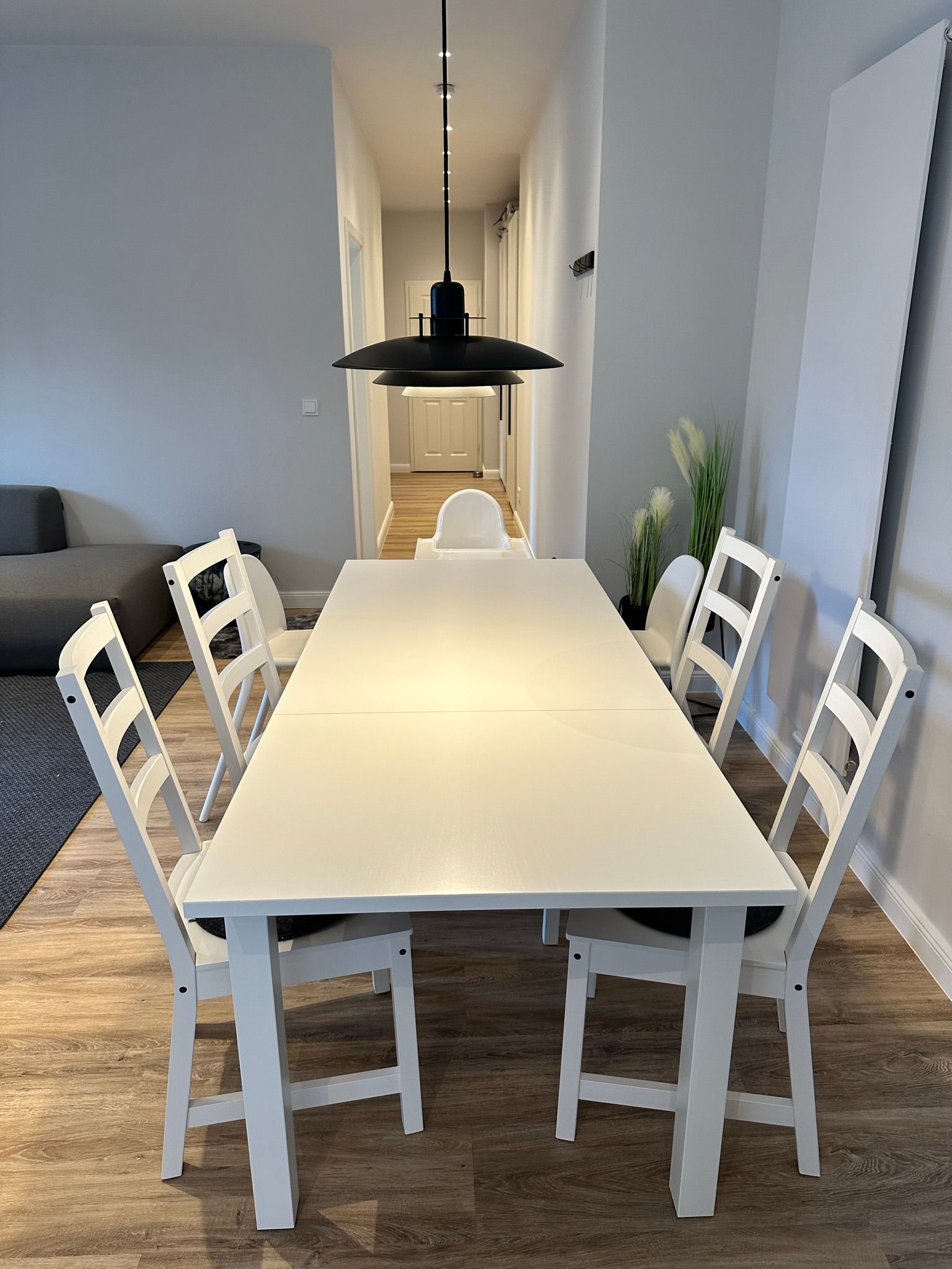 Die chic möblierte Wohnung ist in einem sehr modernen, cleanen Wohndesign gestaltet. Die zwei separaten Schlafzimmer (Doppelbett im Master-Schlafzimmer, zwei ausziehbare Betten mit den im Gäste- bzw. Kinderzimmer) bieten bis zu 6 Schlafplätze.