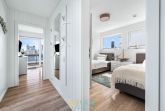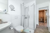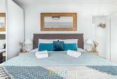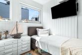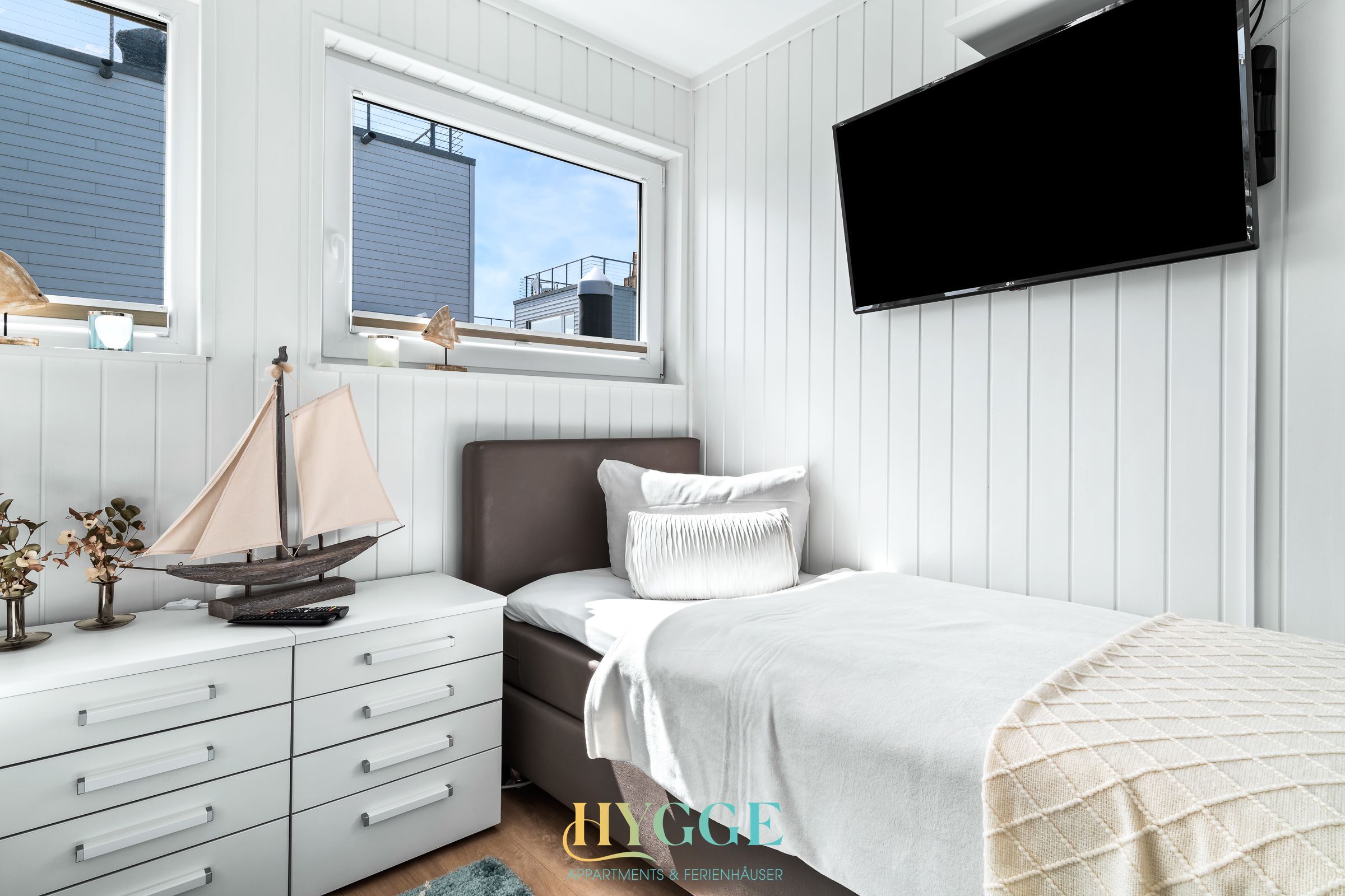 Der Ruhebereich des Hauses befindet sich im Erdgeschoss mit zwei Schlafzimmern (ausgestattet mit Boxspring Doppelbetten), Duschbadezimmer und Sauna. Das Hauptschlafzimmer punktet mit einer bodentiefen Panorama Fensterfront, durch welche sich die atemberaubende Wasserkulisse genießen lässt und einer angrenzenden umlaufenden Terrasse.