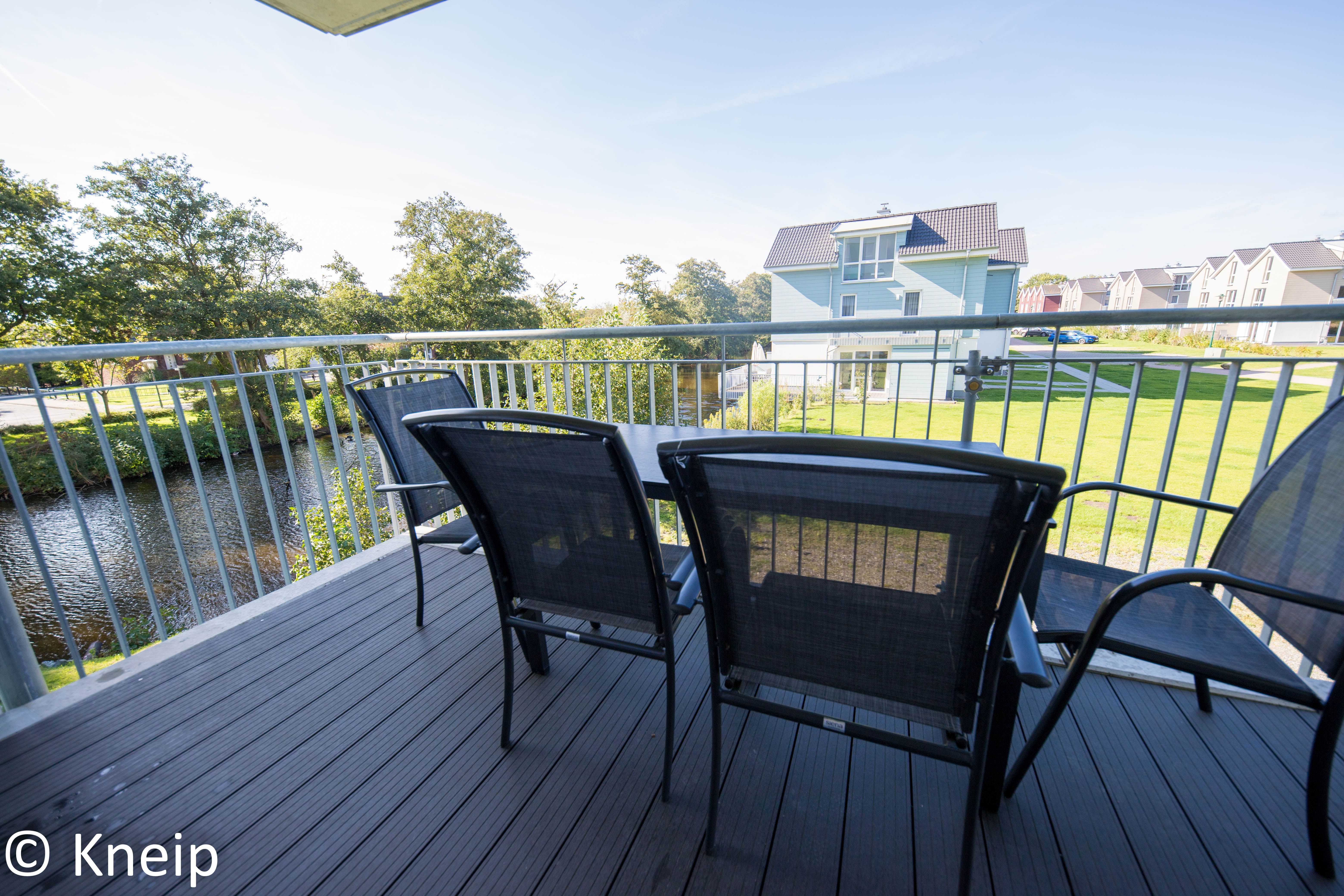 Ein großzügiger, möblierter und überdachter Balkon lädt zum Verweilen ein. Auch Ihr Hund ist hier ein gern gesehener