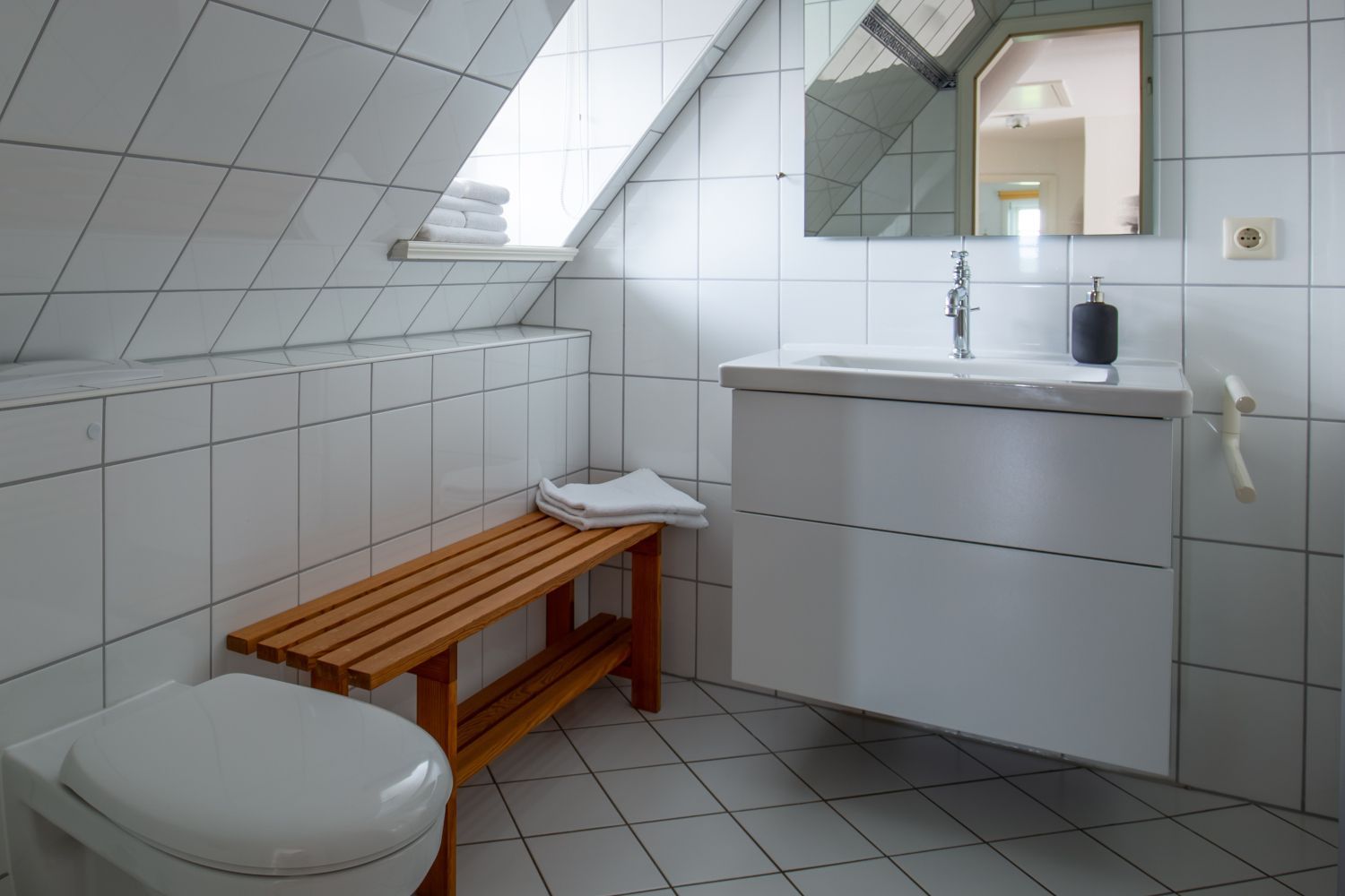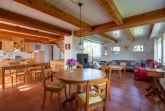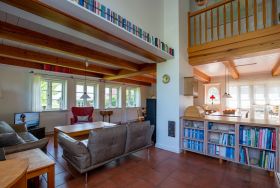 Über eine offene Holztreppe gelangt man in den Galeriebereich mit 3 Schlafzimmern, insgesamt 6 Schlafplätzen und 2 weiteren Bädern.