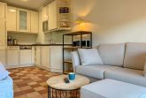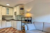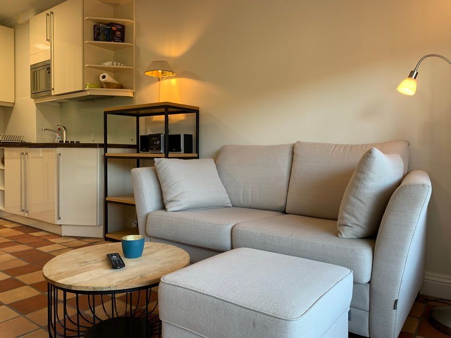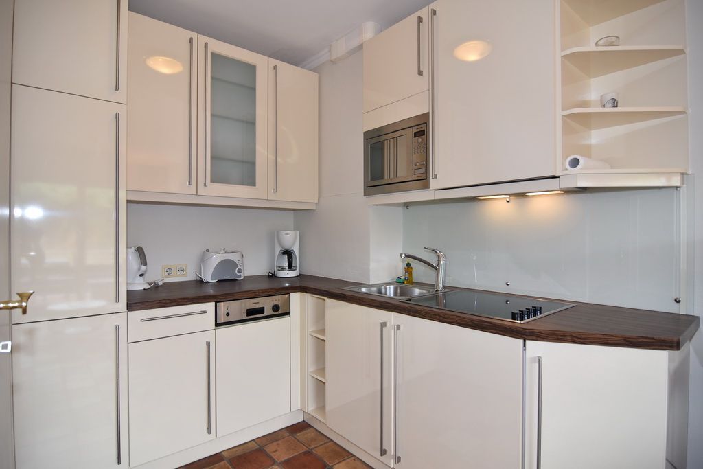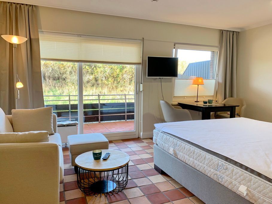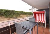 Schickes 1-Zimmer-Apartment mit Westbalkon und Strandkorb im Hochparterre des Haus Belvedere, ca. 38m², Nichtraucher. Wohn- und Schlafzimmer mit Boxspringbett (160x200), Kleiderschrank (1m), 2-Sitzer-Sofa und Hocker, Essplatz für 2 Personen, TV, Radio, offene Küche mit Geschirrspüler, Mikrowelle und 4-Platten-Ceranherd, Duschbad/WC. Die Wohnung ist komplett gefliest. Garagenstellplatz Nr. 2. Tierhaltung ist nicht gestattet. Bettwäsche und Handtücher sind zur Anreise aufgezogen!